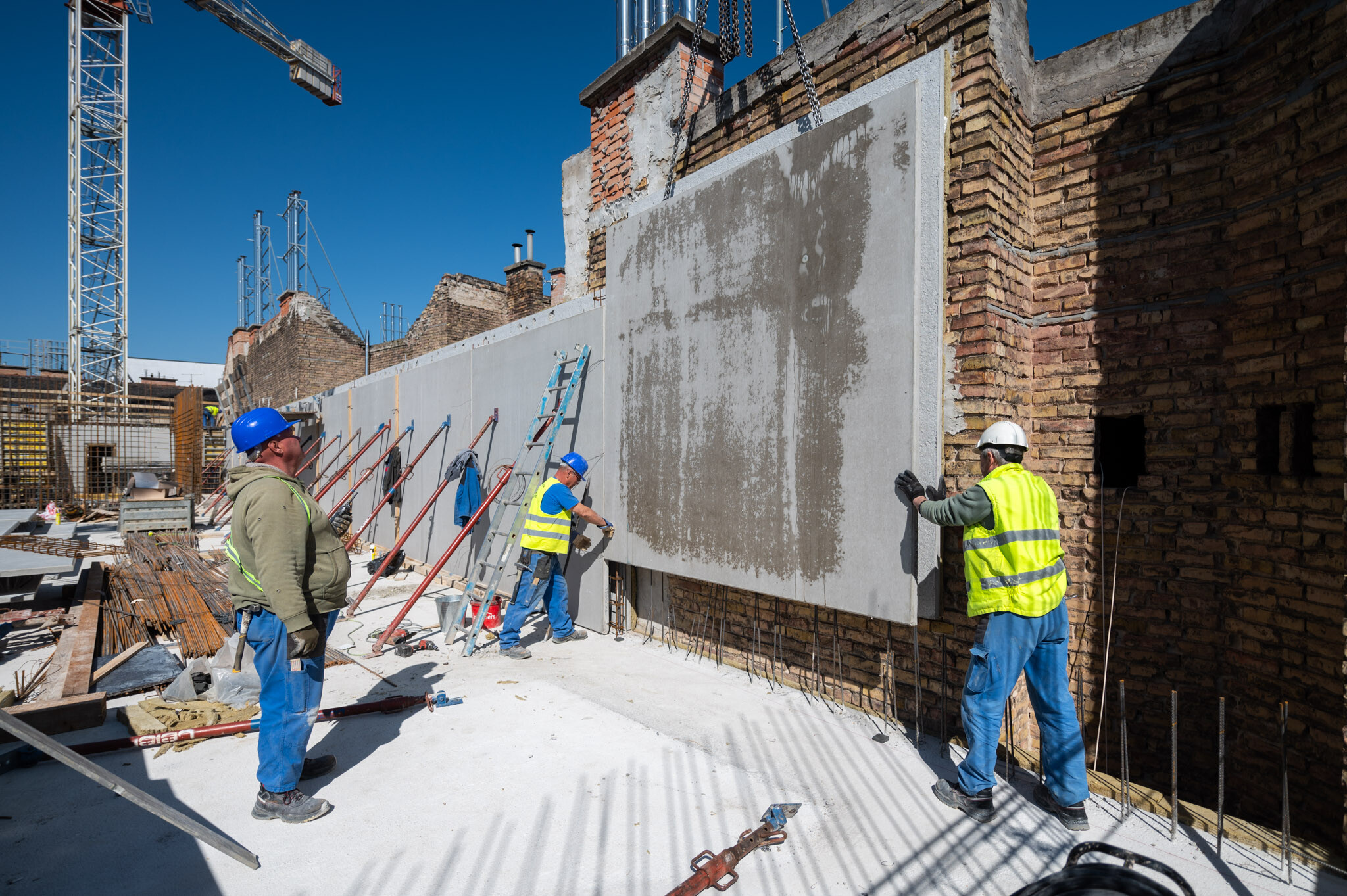 A szerkezetépítés során tehát a legmodernebb technológia alkalmazásával adnak új életet a nagymúltú, de évtizedek óta elhanyagolt, kiemelt helyen lévő területnek.