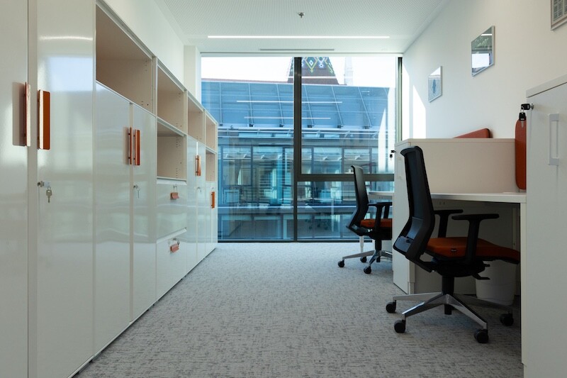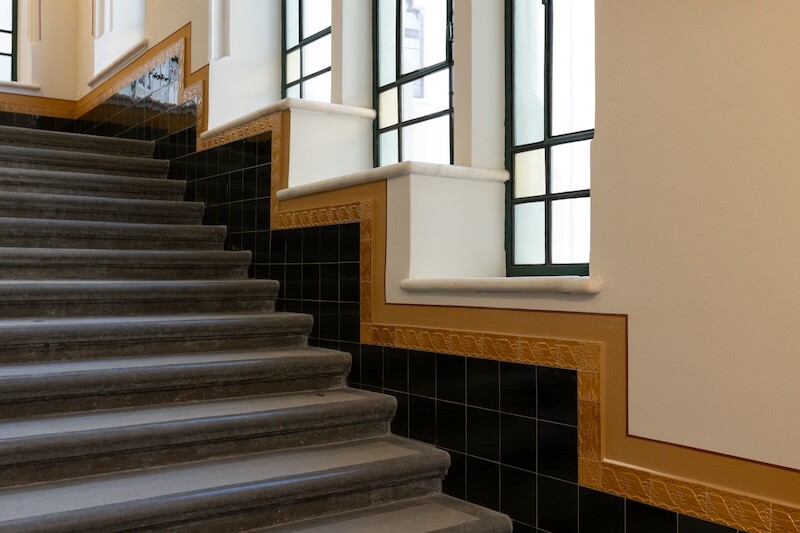 Az épület teljes hidegburkolását a Dominó Kft. és a Stukkó Kft. megosztva végezték, a folyosók, a vizesblokkok, a lebegő lépcsők, a lépcsőházak, illetve a közösségi terek burkolatát varázsolták újjá, együttesen mintegy 15 000 m2 felületen.