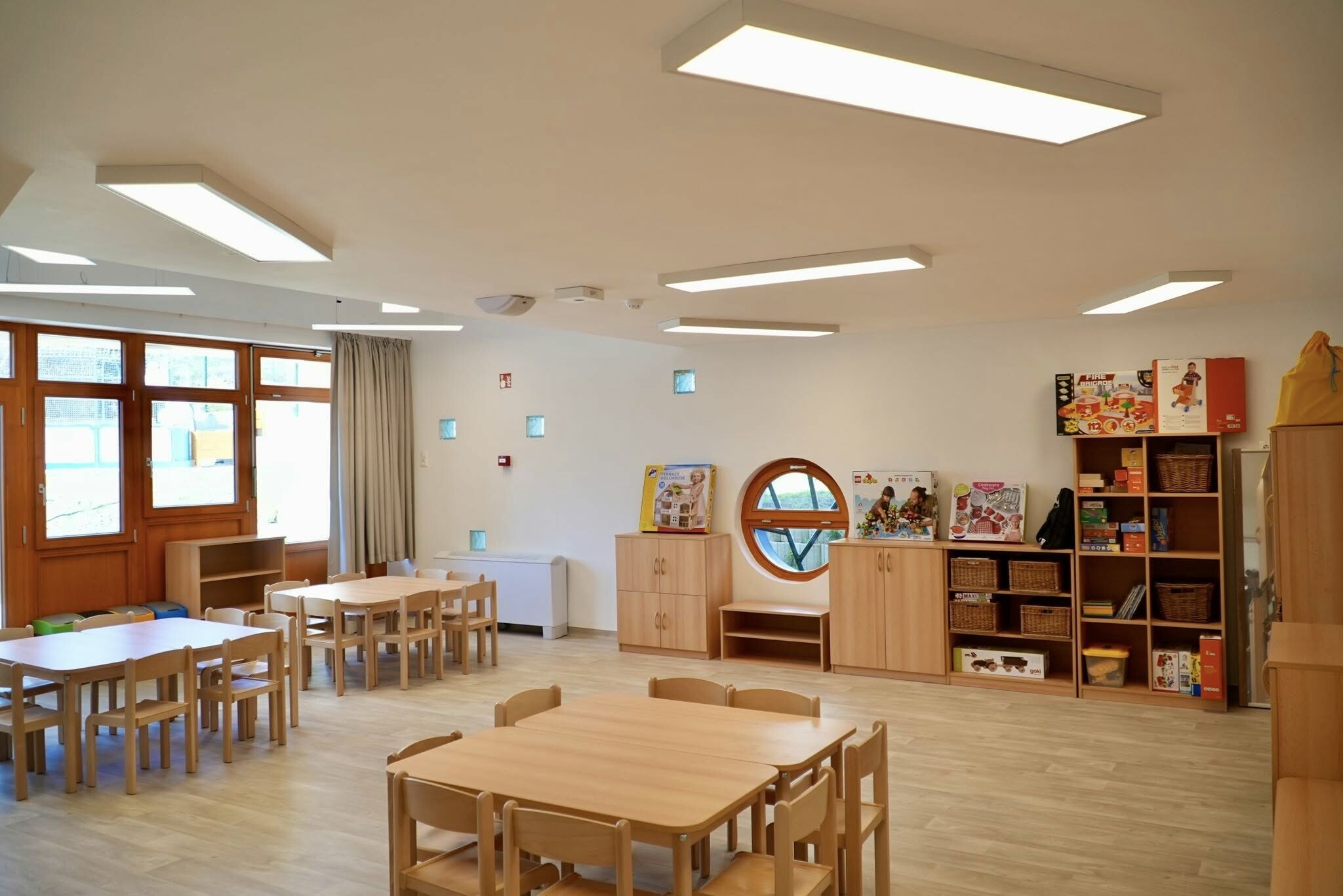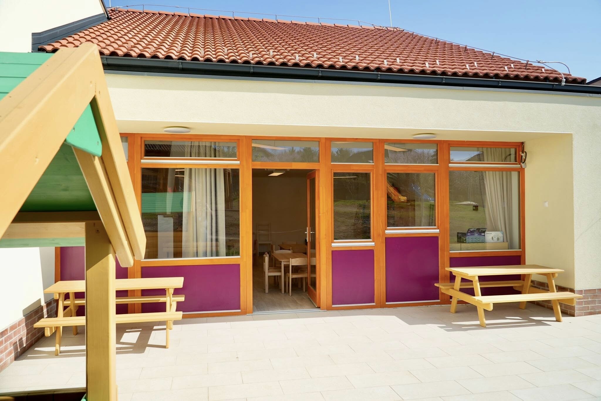Ugyanígy a gyermekek és a gondozók kényelmét szolgálja az udvaron kialakított vizesblokk, amelynek köszönhetően a gyermekeket nem kell az épület megkerülésével a benti mosdókba kísérni.