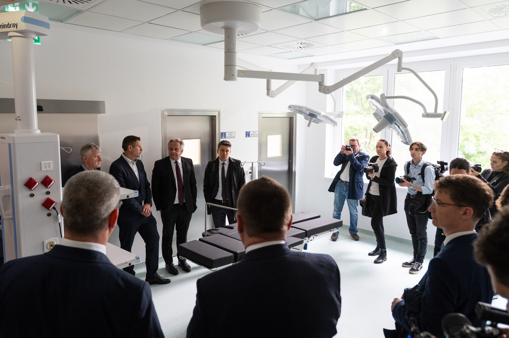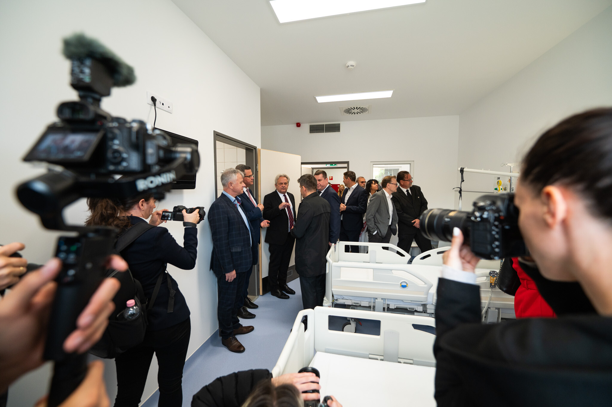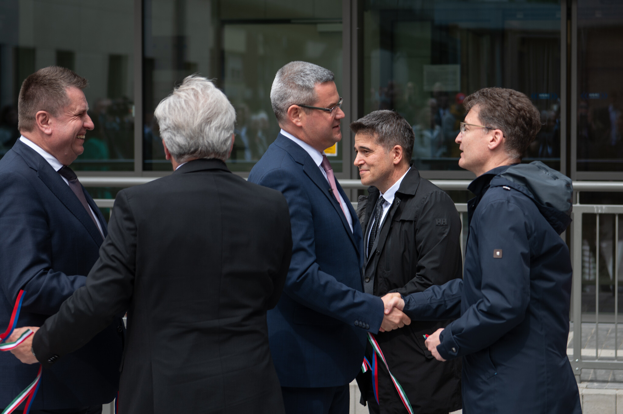 Télen már beszámolhattunk arról, hogy elkészült a legkorszerűbb kórtermeket felvonultató új épület: a külső munkálatok 2024. december 4-én megkapták a használatbavételi engedélyt az építési hatóságoktól; 2024. december 9-én pedig Megrendelői, Kórházi és Kivitelezői oldalról is megtörtént a projekt hivatalos műszaki-átadás átvételének lezárása. Jelen ünnepélyes átadás után az elkészült épületben megindulhat a betegellátás.