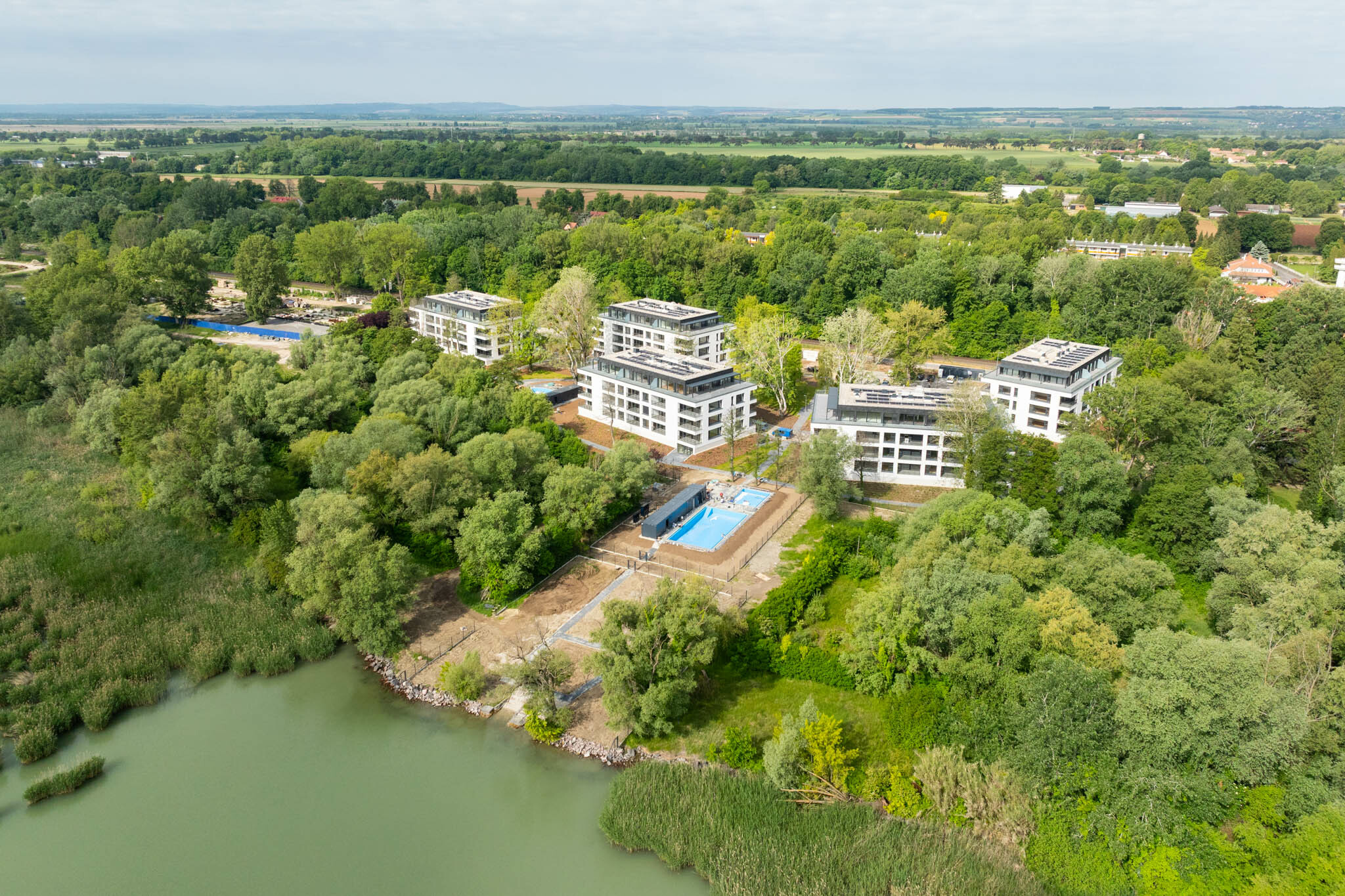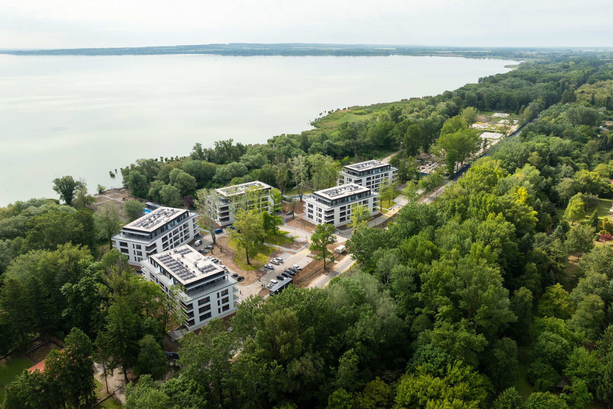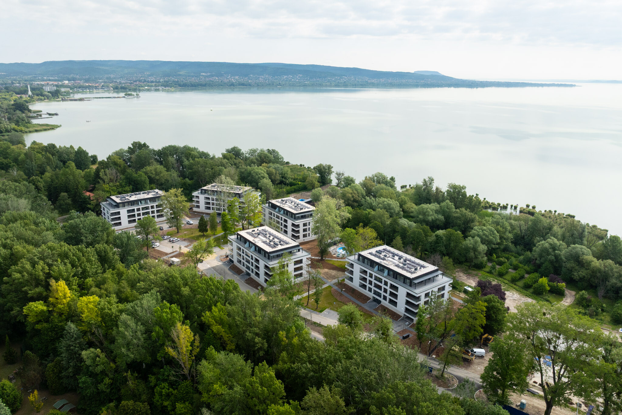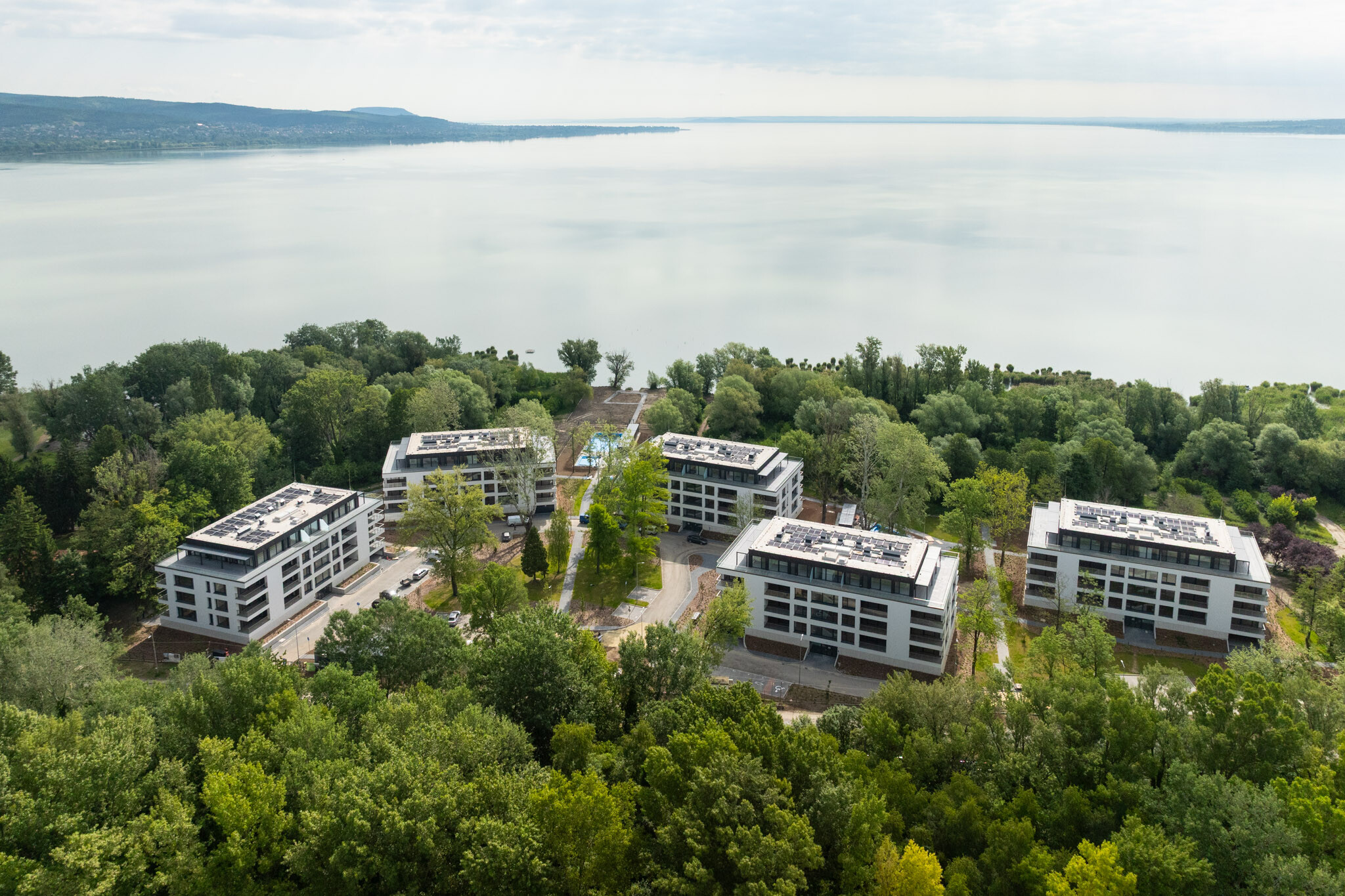 Keszthelyen, közvetlenül a Balaton-parton épül a tiszta formavilágú, öt házból álló lakóegyüttes, amelynek 120 különböző méretű, prémium minőségű lakása kiemelt szolgáltatásokat nyújt majd a tulajdonosoknak. A Standful Property Kft. beruházásában, a Magyar Építő Zrt. kivitelezésében születő társasházak a lehető legkorszerűbb műszaki megoldásokat vonultatják fel; így érték el a beruházók, hogy AA+ energetikai besorolású ingatlanokat kínálhatnak itt a vásárlóknak. Földhőszondás, napelemekkel felszerelt épületekben kaphattak helyet a 30 és 150 m2 közötti prémium lakások, amelyekhez a tervező Vannay Architecture Kft. hatalmas, akár 156 m2-es teraszokat álmodott.