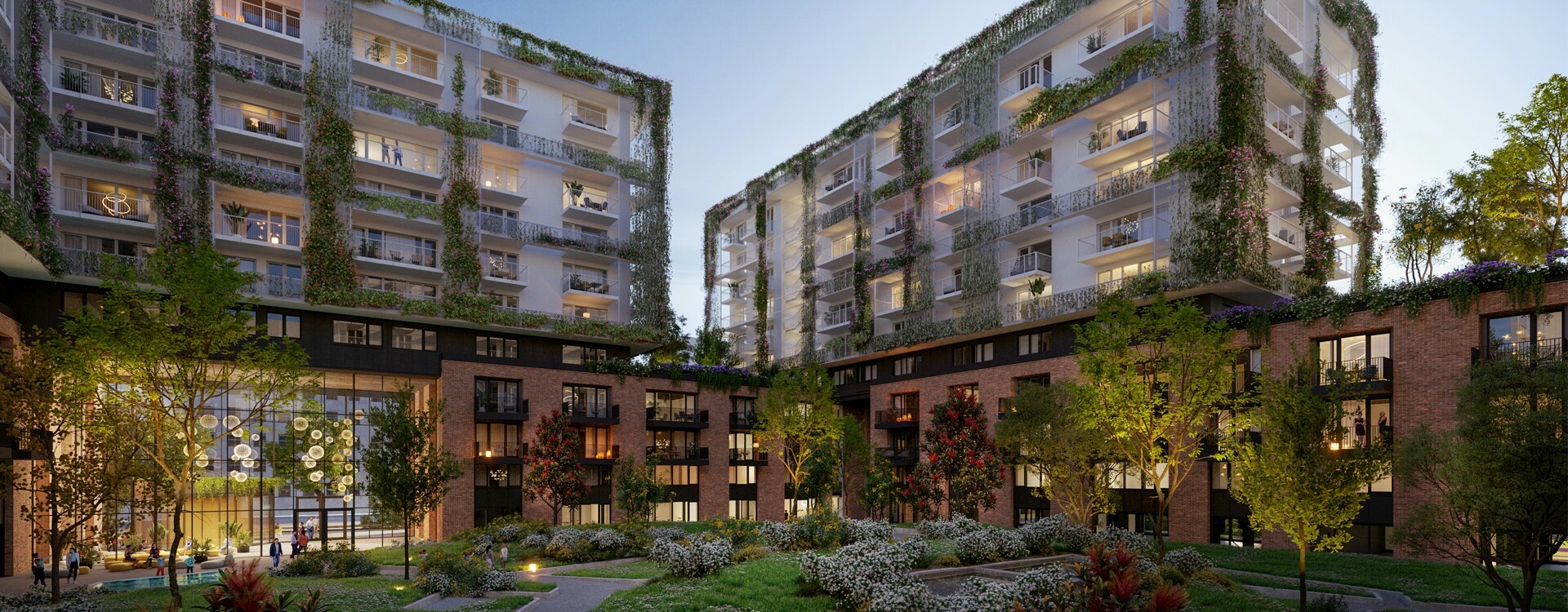 A lakóépületek belső udvarán egy közel 2 500 négyzetméteres parkot alakítottak ki, amely valójában technikai értelemben egy zöldtető, hiszen alatta a mélygarázs található. A garázsban valamennyi parkolóhelyhez saját elektromos töltőpont tartozik. A parkolóházak és mélygarázsok gyalogos- és járműforgalommal terhelt betonfelületeit, valamint a kiszolgáló helyiségeket a hosszútávú- és gazdaságos üzemeltetés érdekében megfelelő felületi védelemmel látták el. Ennek fő célja, hogy megakadályozza az esetlegesen rákerülő üzemanyag, olaj, víz és az utóbbiban időnként előforduló olvasztósónak a vasbetonszerkezetbe jutását, ami korróziós folyamatokat indíthat el.