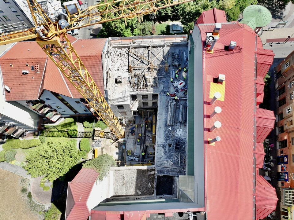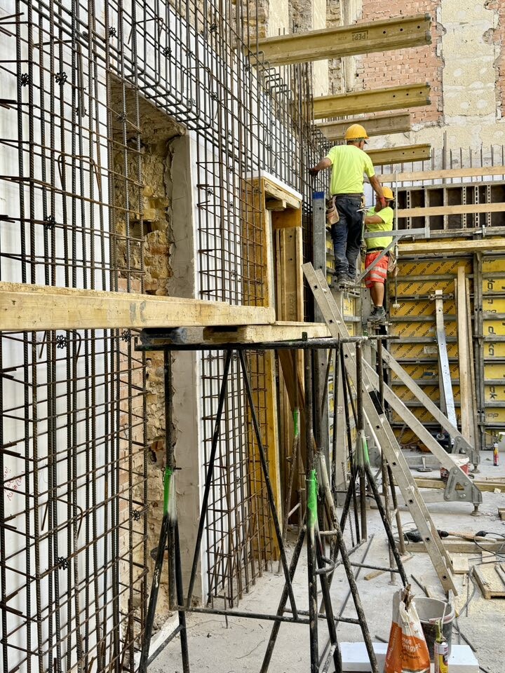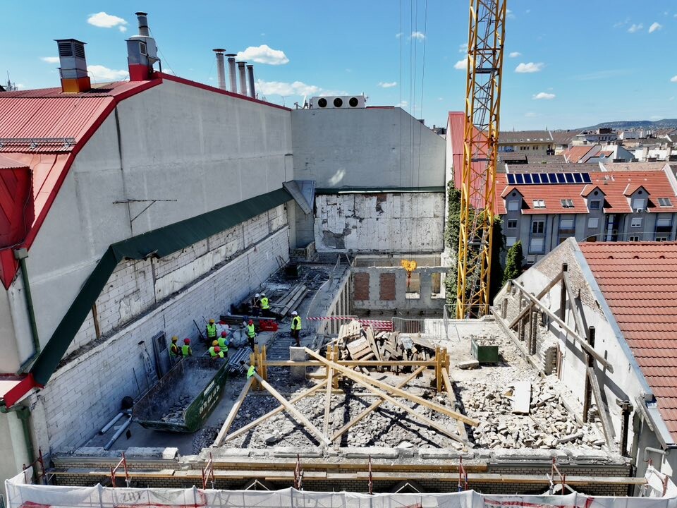889 négyzetméter hasznos alapterületen születhetnek meg a korszerű oktatástechnikával felszerelt intézményi helyiségek a helyi védettségű, historizáló, balusztrádos díszpárkánnyal osztott, négytraktusos homlokzat mögött. A mintegy 1,4 milliárd forint értékű átépítésnél a kivitelező Épkar közösségi oldalán közzétett fényképek tanúsága szerint már túl vannak a bontáson, jelenleg a szerkezeti megerősítések zajlanak. Képeikről látszik, hogy