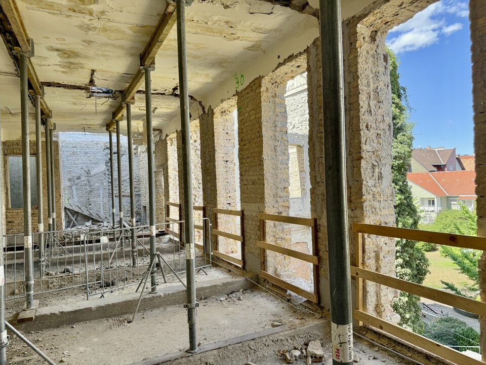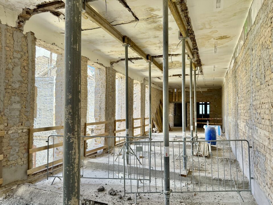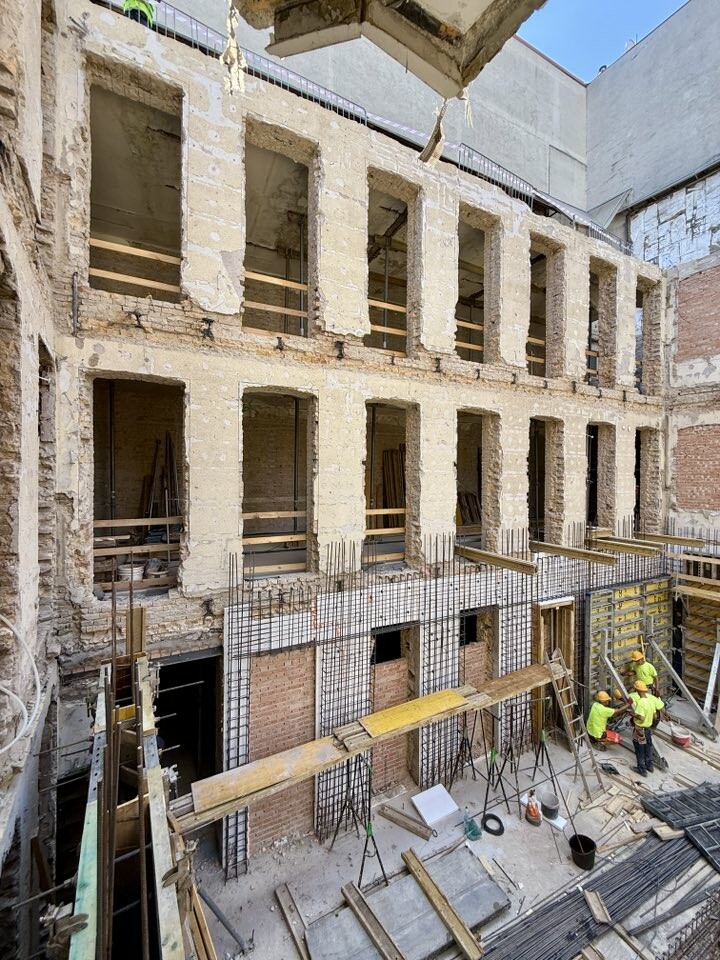 eltávolították a teljes tetőszerkezetet, megtartva a díszes lépcsőt tégláig bontották a tartófalakat, a közfalakat pedig szinte mindenhol kivették, hogy új helyiségosztással hozhassák létre az oktatótereket. Andráskeresztes acél merevítéssel és kiegészítő acélszelvényekkel erősítették meg a födémet, ahol arra szükség volt, az új épületelemekhez pedig jelenleg is készül a vasbeton vázszerkezet.