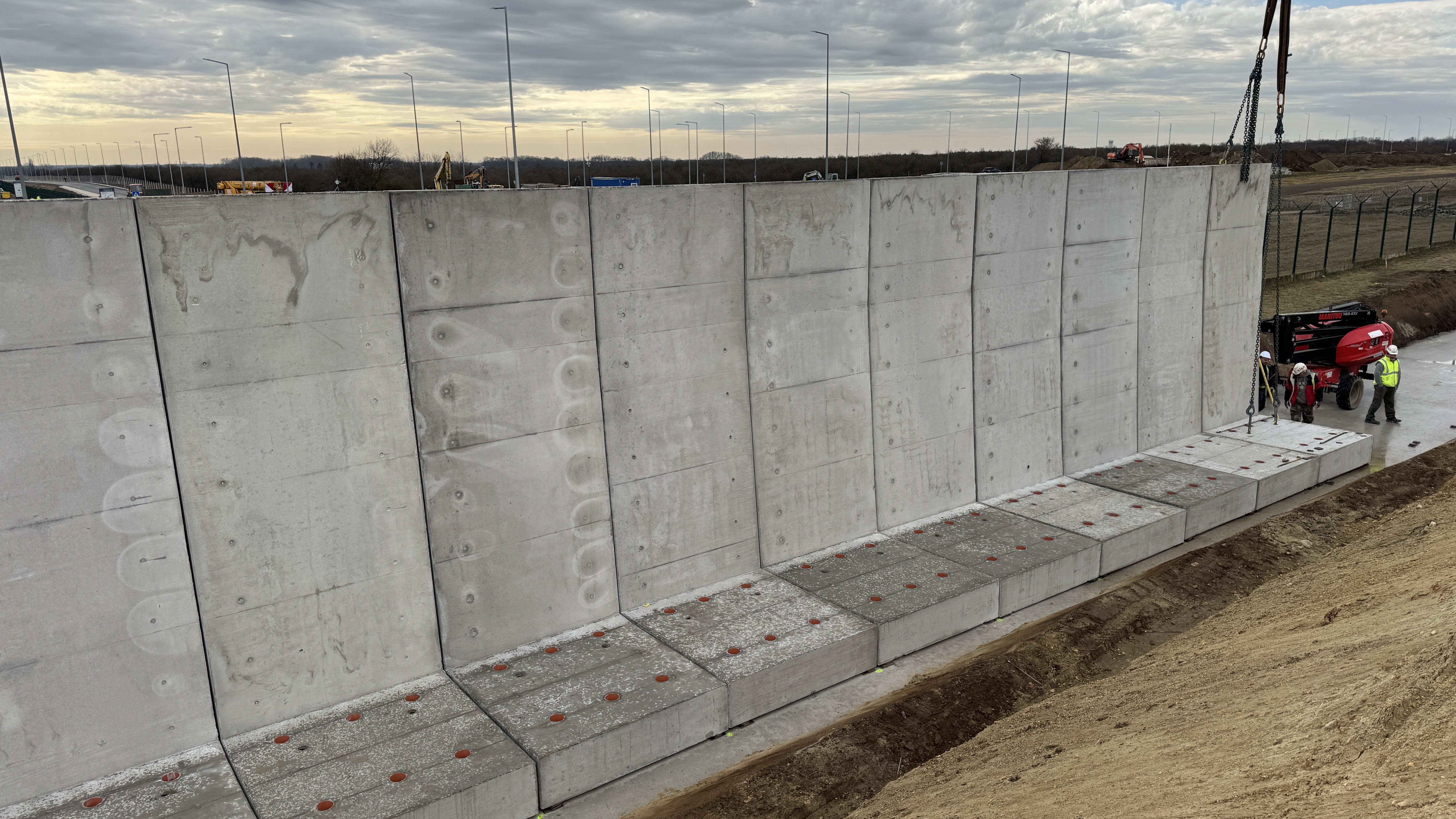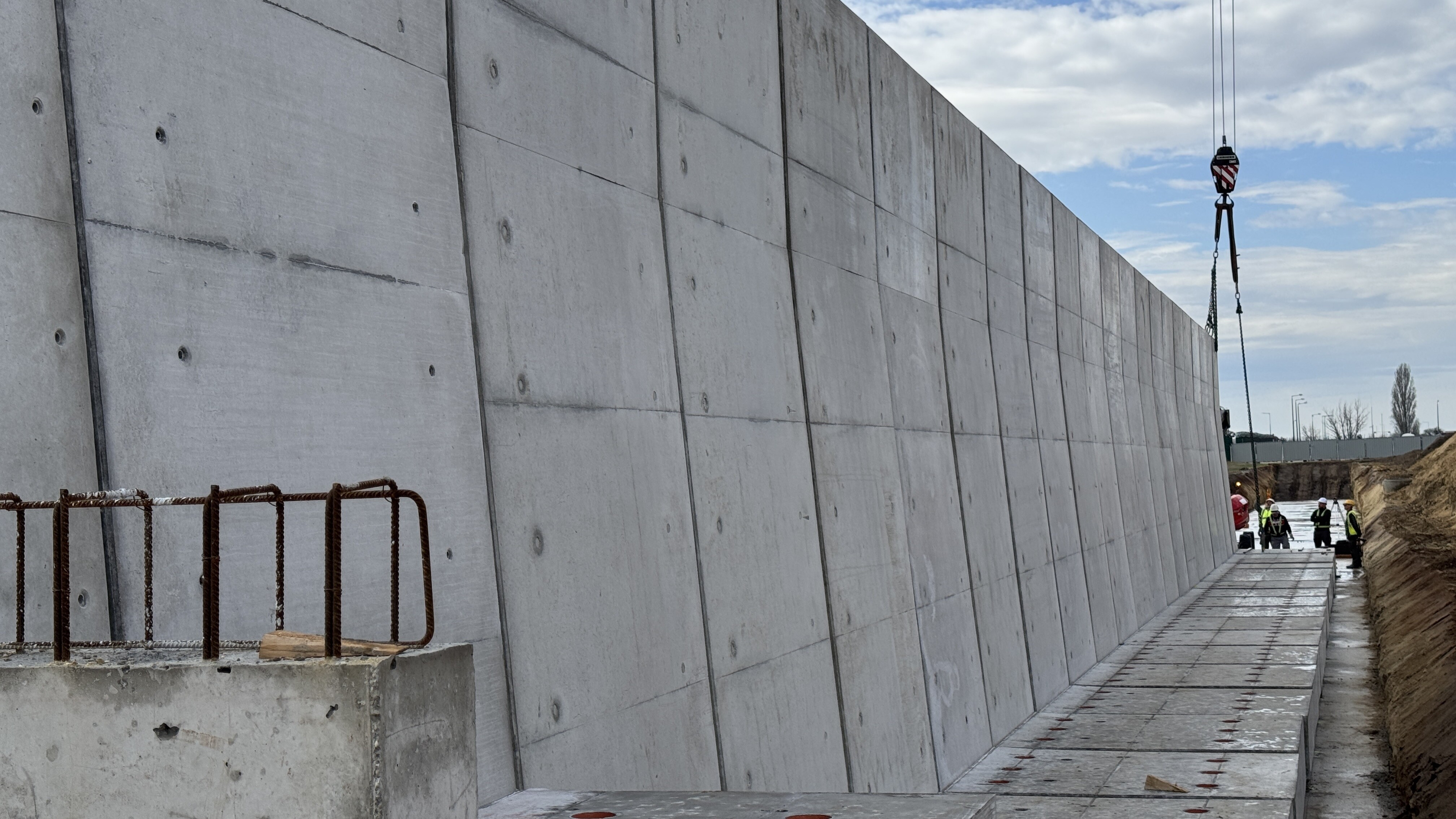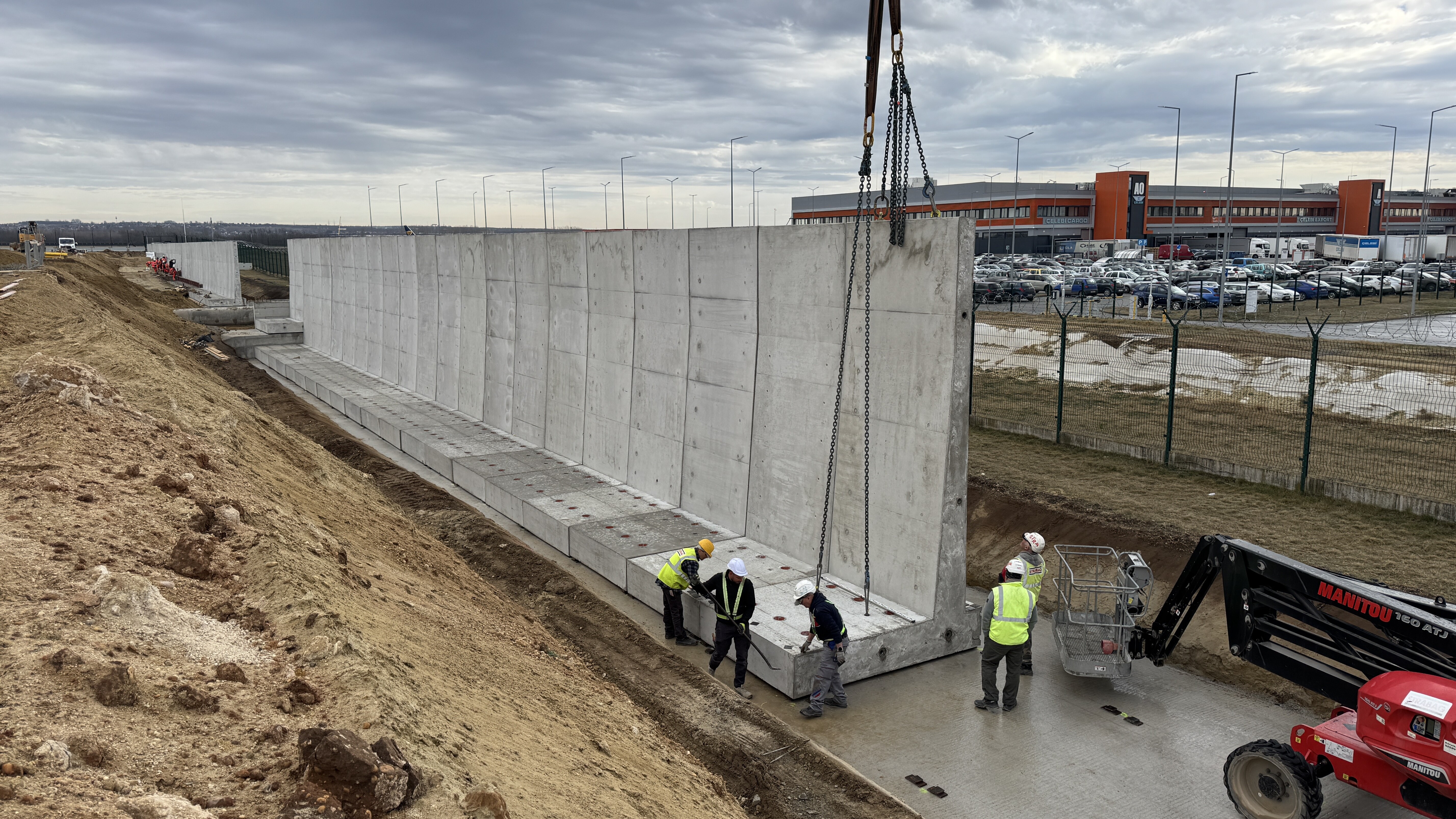 A vasbeton támfalak a STRABAG gyáli előregyártó üzemében készültek és azokat a helyszínen daruval emelik a helyükre. Ezáltal tervezhetőbbé teszik a munkálatokat, annak anyagigényét és minimalizálják a környezeti terhelést is.