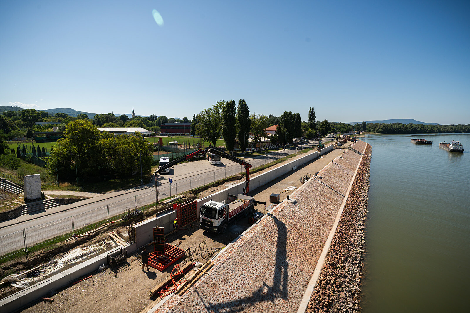 A terveknek megfelelően halad, és immáron látványos szakaszához érkezett az Országos Vízügyi Főigazgatóság (OVF) és az esztergomi önkormányzat közös megbízásából megvalósuló esztergomi új gátrendszer első ütemének megvalósítása. A Prímás-szigeten zajló munkálatokról korábban lapunkban is beszámoltunk, a projekt aktuális előrehaladásáról és műszaki megoldásairól pedig a PERI szakemberei tájékoztatták lapunkat.