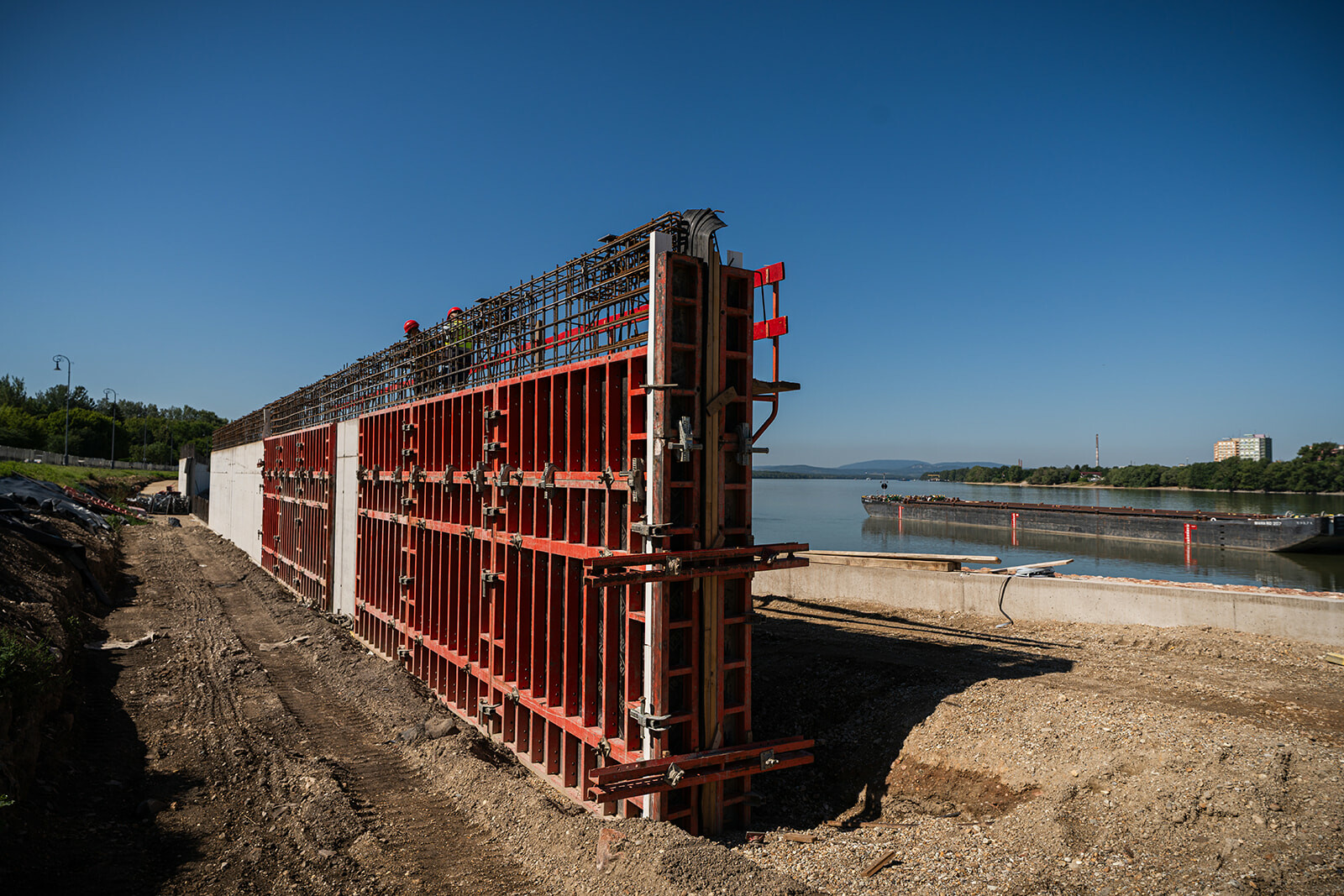 A vasbeton fal tetejére milliméterpontos precizitással acéltalpas szerkezetet helyeznek el, amelyre 1,2-1,9 méter magasságú IBS mobil árvízvédelmi fal lesz csatlakoztatható szükség esetén.