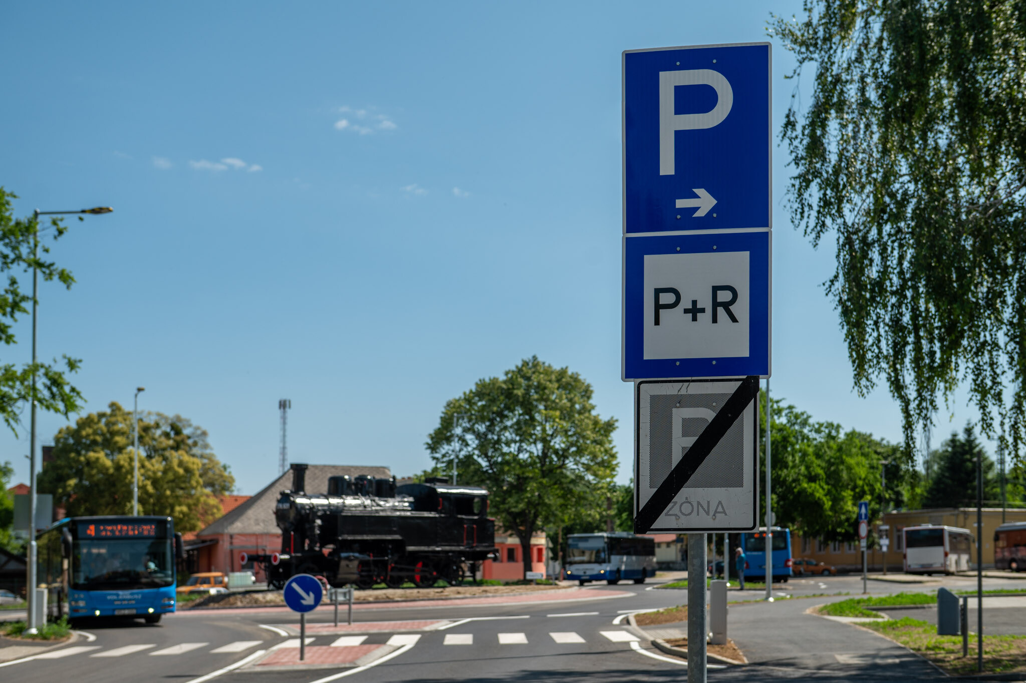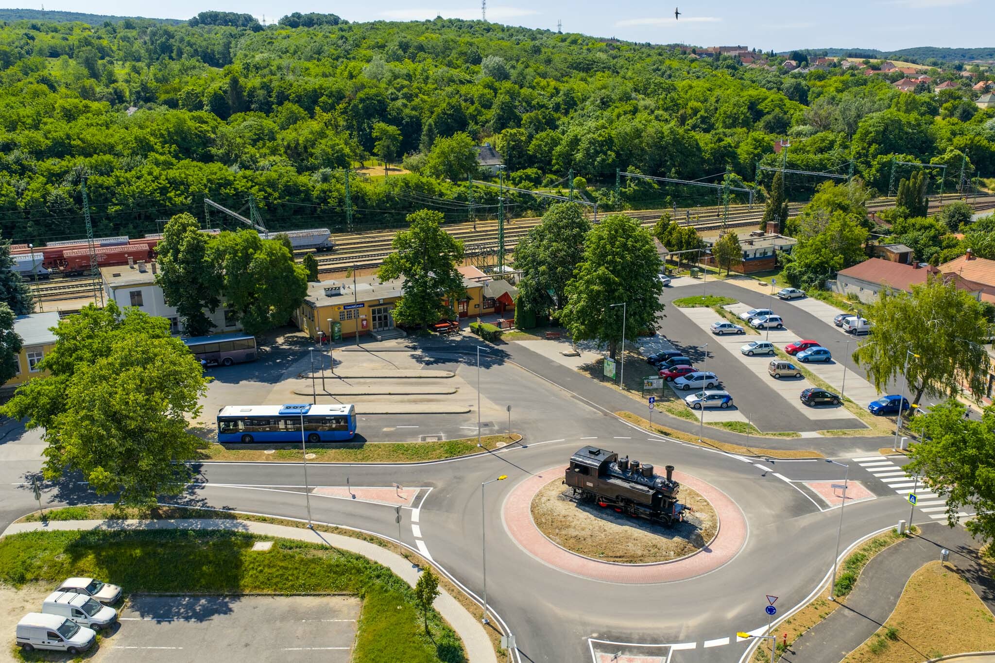 A csomópont közepébe áthelyezték elsősorban a gyerekek nagy örömére a 376.631-es gőzmozdonyt is.