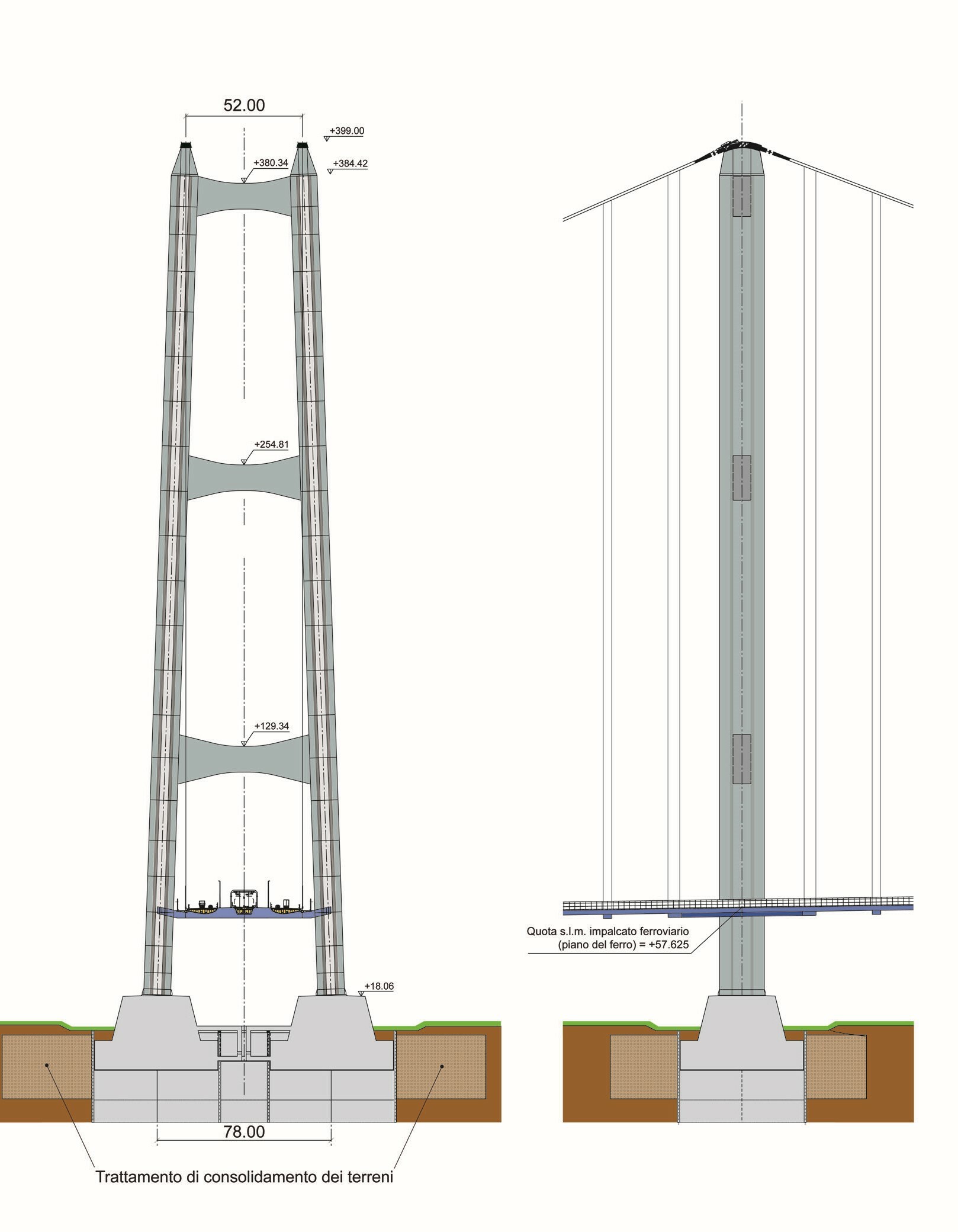 A hajók áthaladását is biztosító hetvenkét méter magas szerkezet két hídfőjénél egy-egy, közel négyszáz méteres tartótornyot emelnek. Utóbbiak 55 ezer tonna súlyúak. A híd kör alakú vasbeton lábazaton áll majd. Amely 600 méter szélességű hajózhatóságot is biztosít.