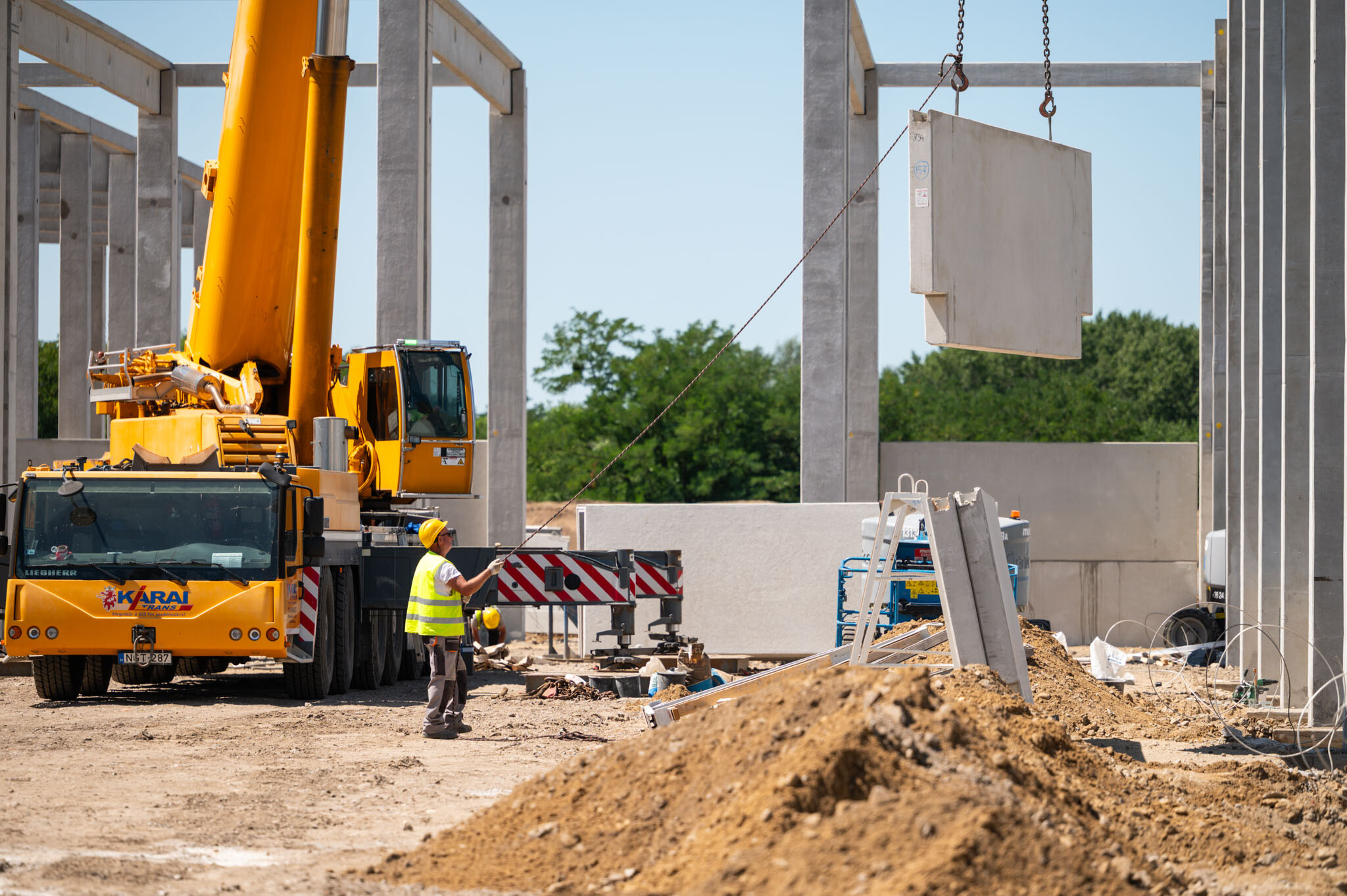 A barnamezős beruházás megvalósítása 2024 őszén bontási munkákkal kezdődött el. Az idén márciustól a STRABAG már a gyártócsarnok szerkezetépítésén dolgozik, amellyel a tervek szerint szeptember közepére elkészülnek.