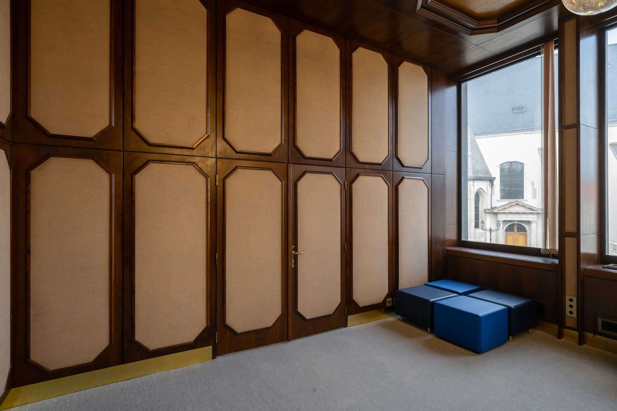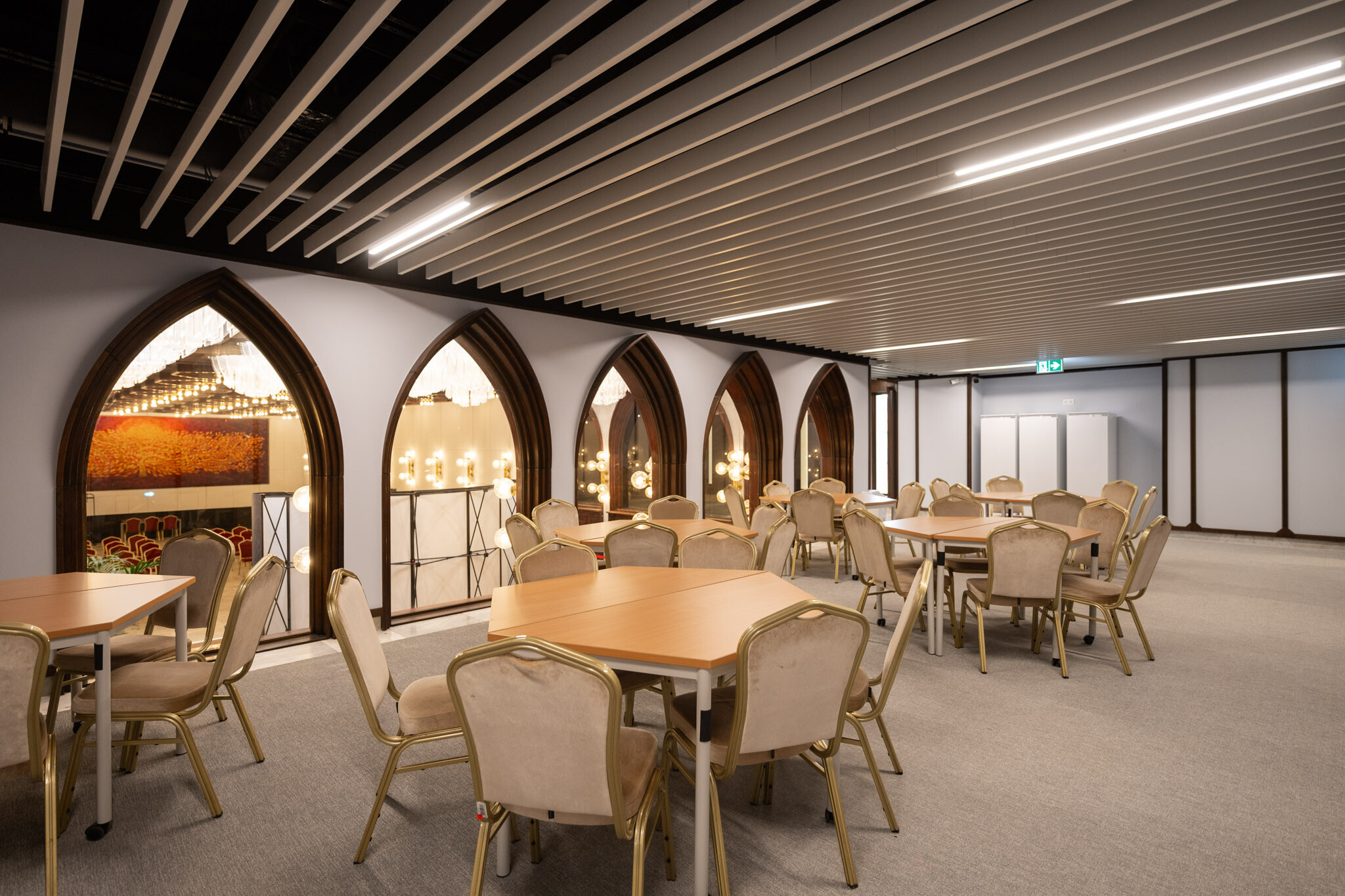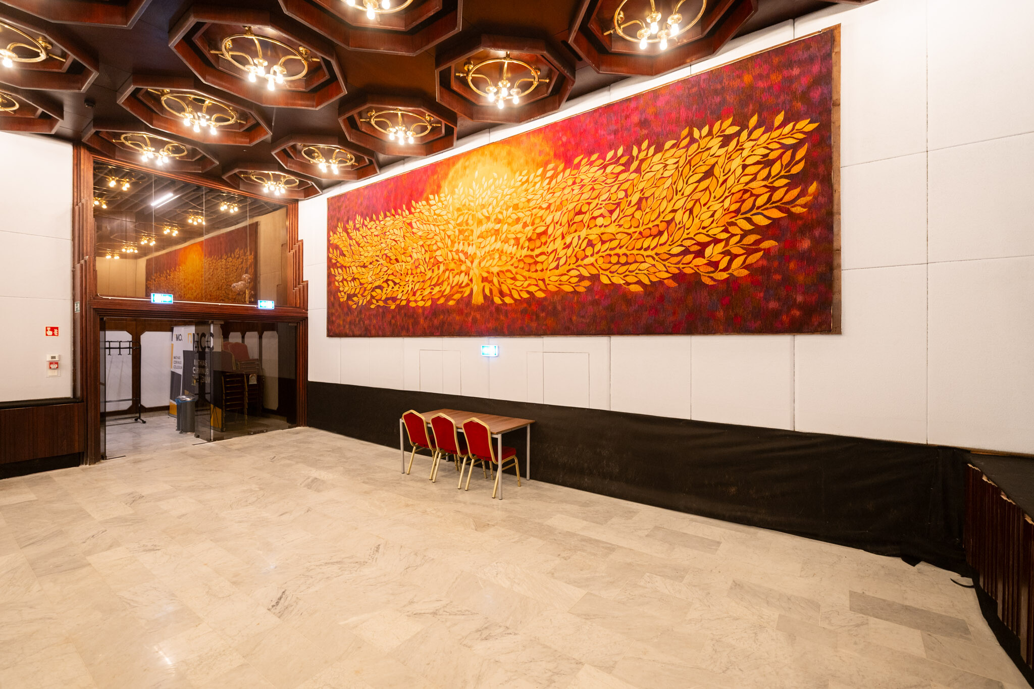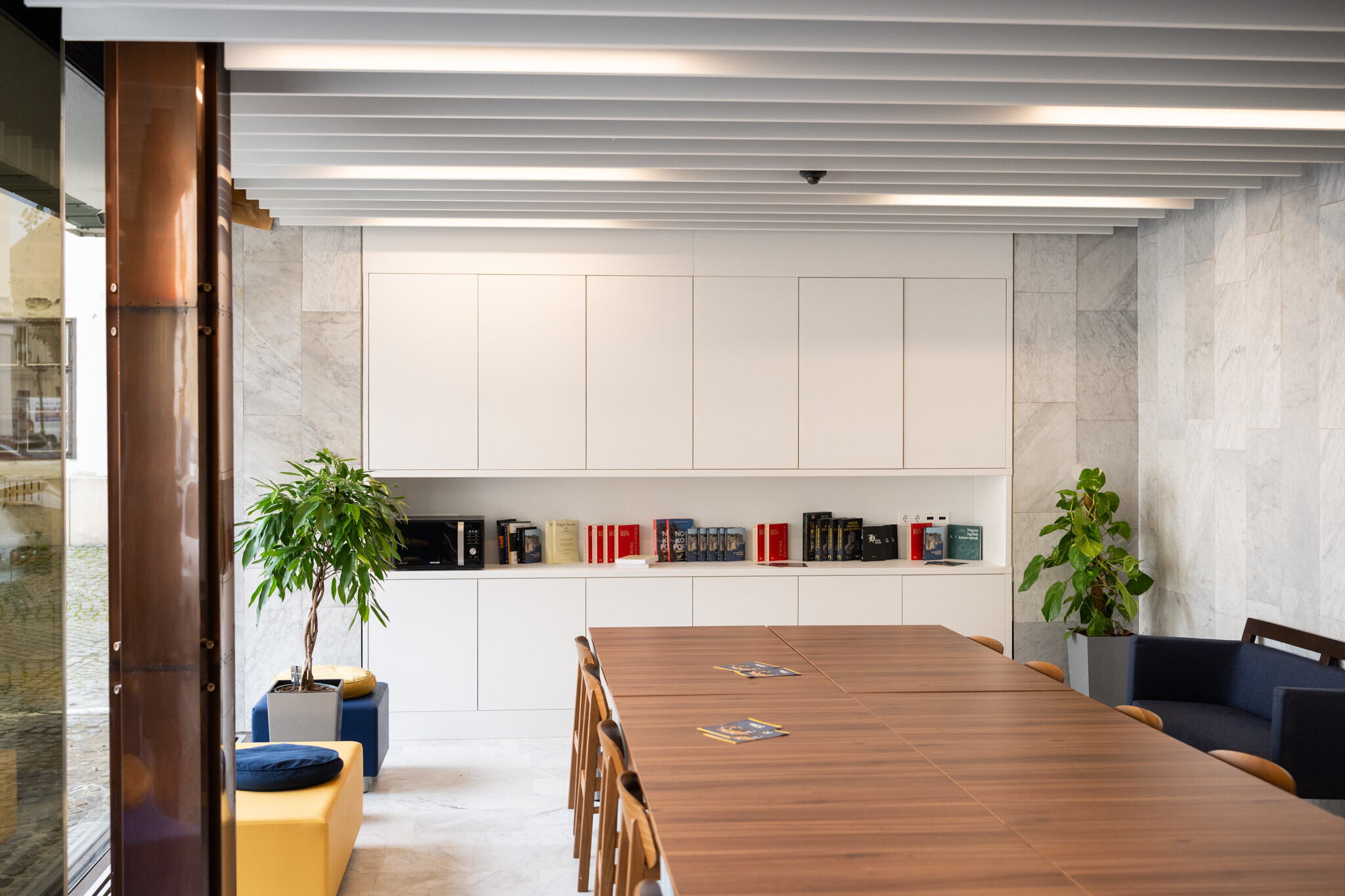 A belsőépítészeti értékek helyreállítása során pótolták a márványburkolatokat, restaurálták a fali képzőművészeti alkotásokat, és korszerű árnyékolástechnikai megoldásokat építettek be. A cél minden esetben az volt, hogy a korszakos értékeket megőrizzék, ugyanakkor a 21. századi használati igényeket kielégítő technológia és komfort is helyet kapjon az épületben.