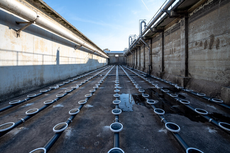 A leürített és kitakarított medencék alján összesen 10352 négyzetméteren bontották el, majd telepítették újra a csőrendszert. Az új rendszer révén 9 colos gumimembránokon át jut a levegő a medencékbe, a szekciónként telepített mintegy 3450 darab fej segítségével.