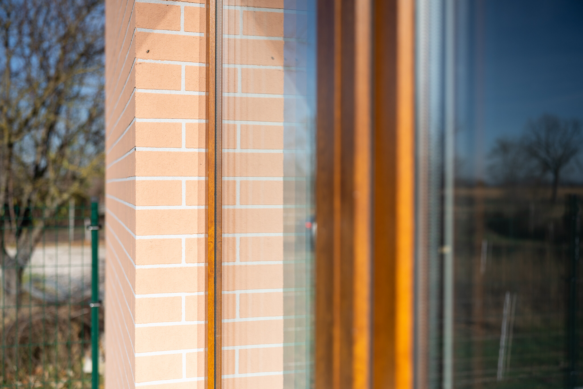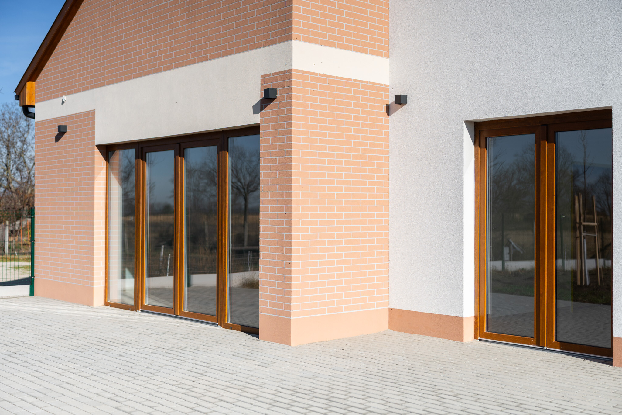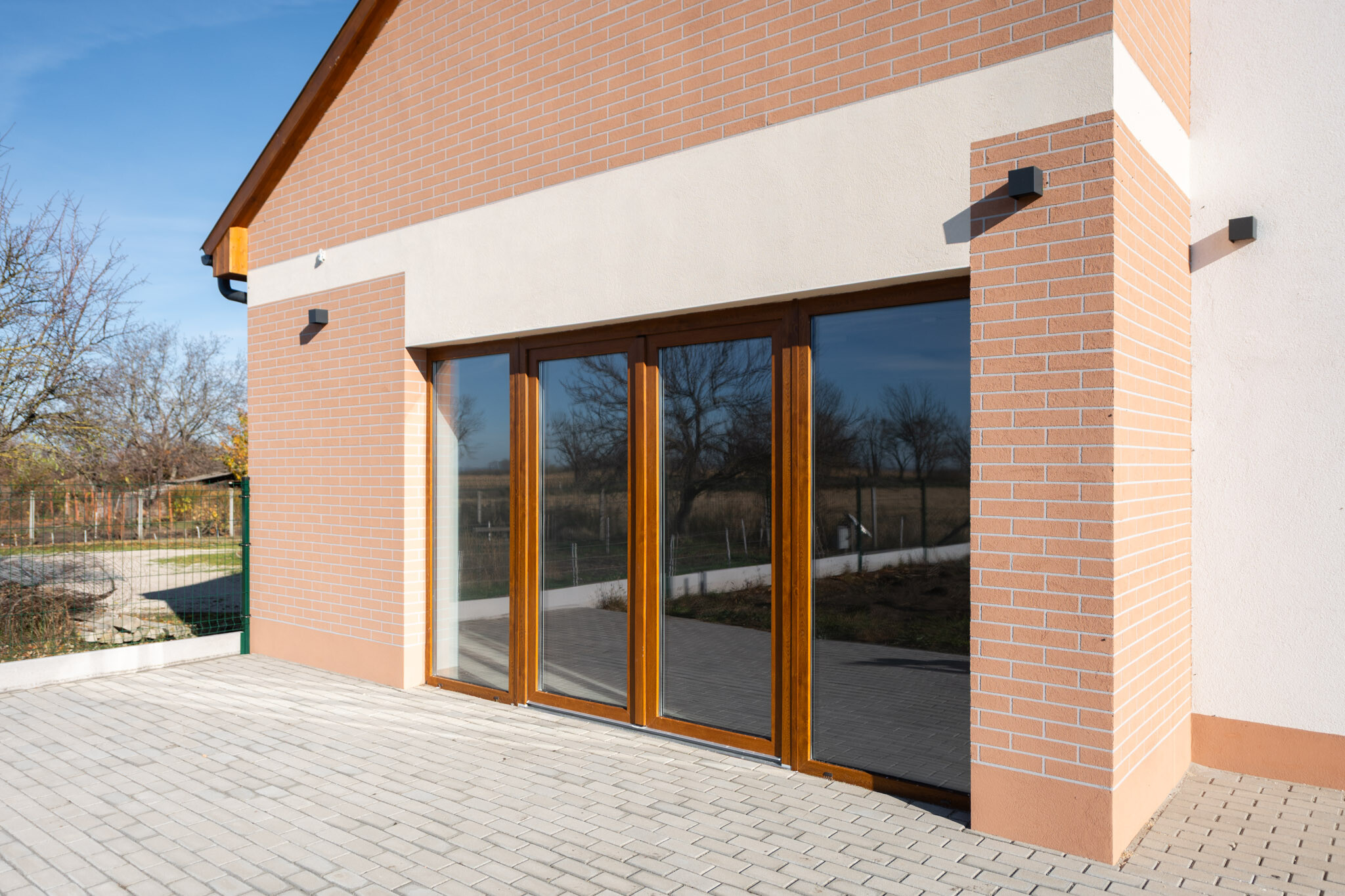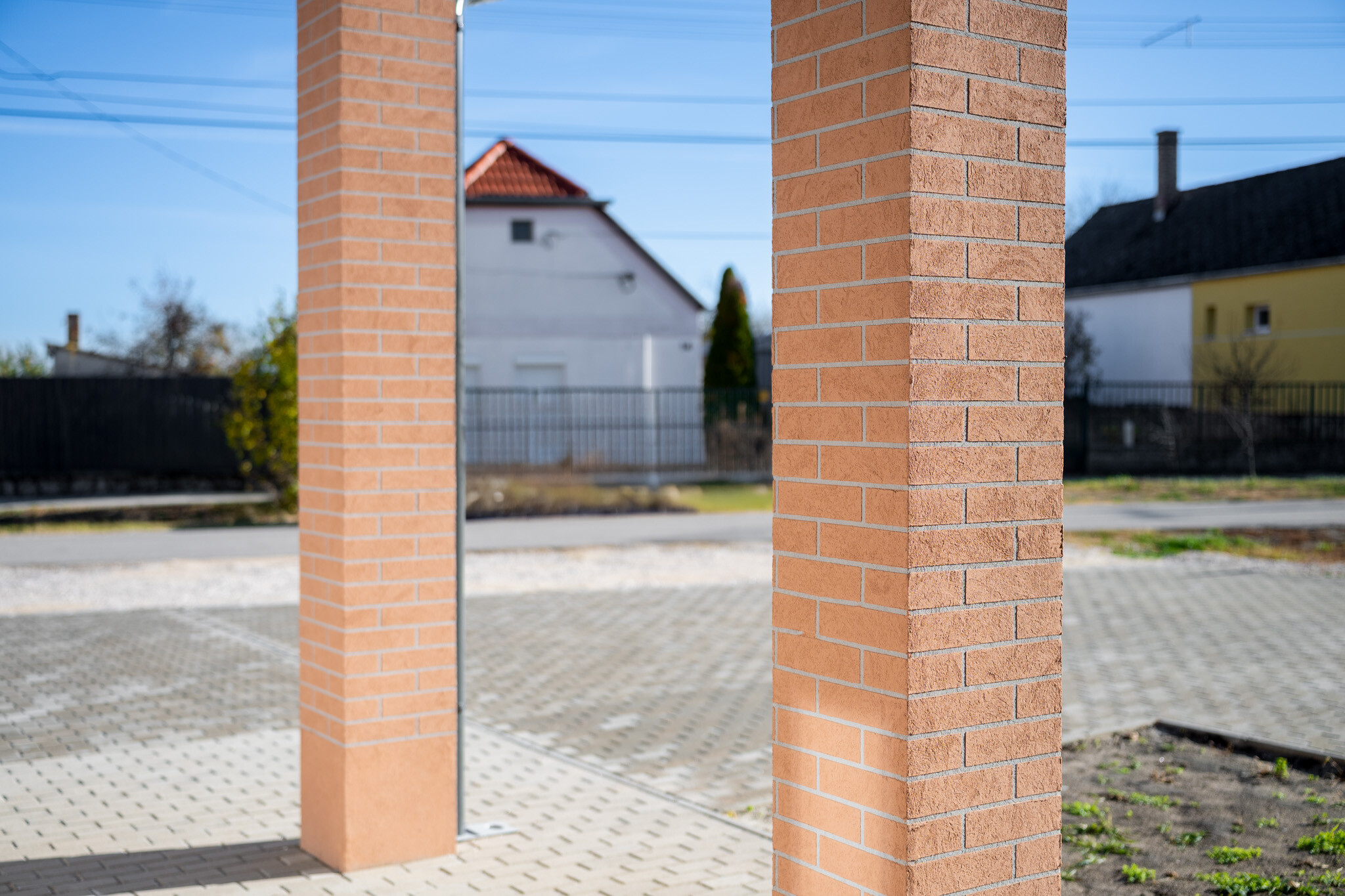 A beruházás során az egyik legfontosabb esztétikai igény a téglamintás homlokzati megjelenés volt. A cél egy olyan dekoratív, mégis könnyű és biztonságos megoldás kiválasztása volt, amely nem terheli a hőszigetelő rendszert, és nem jár a valódi téglaburkolatoknál jellemző kivitelezési nehézségekkel.