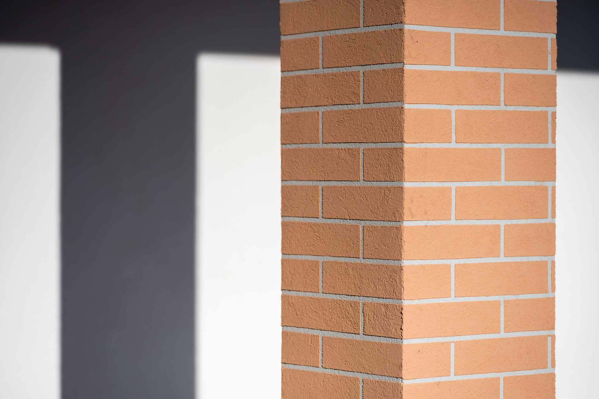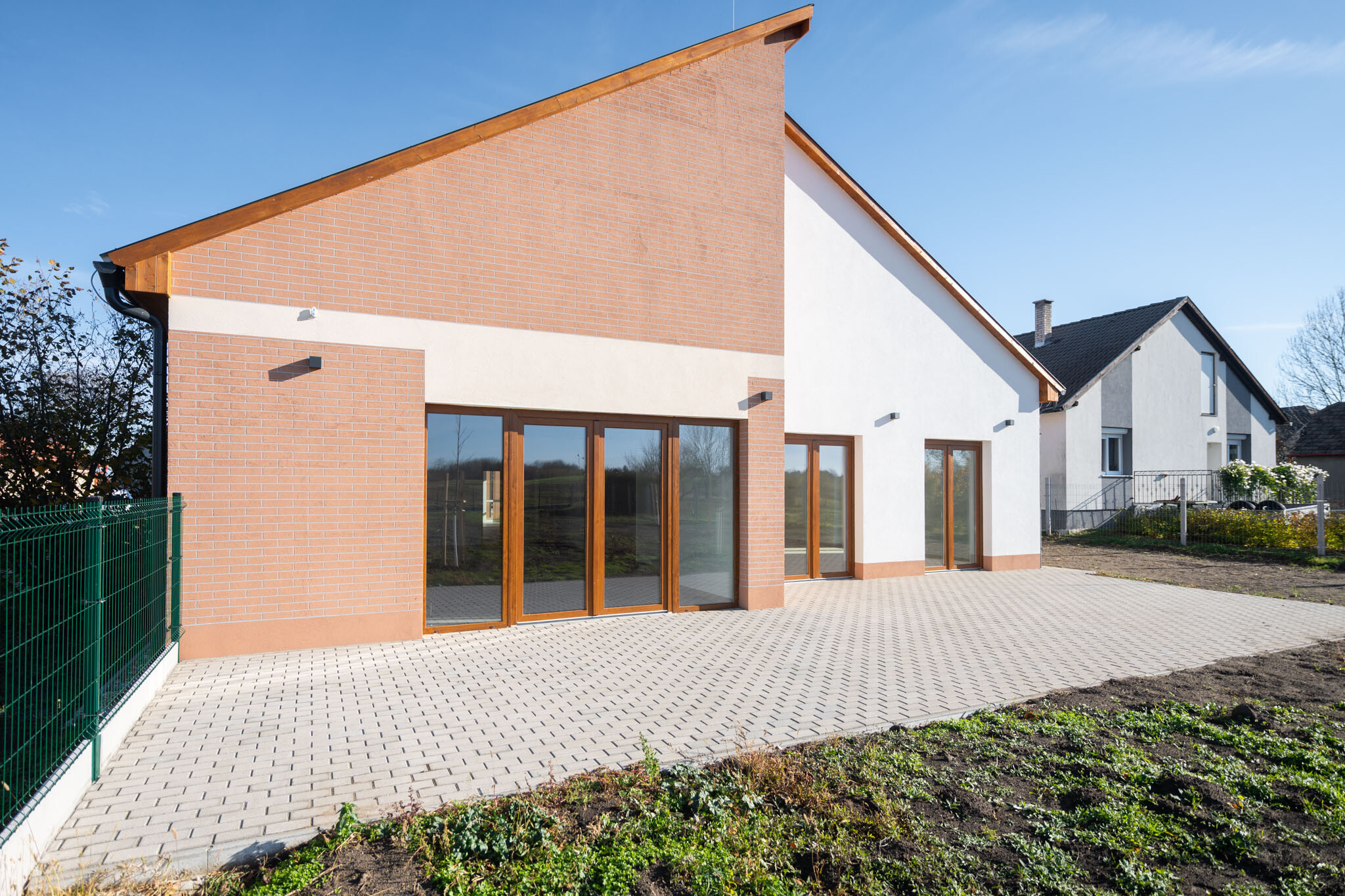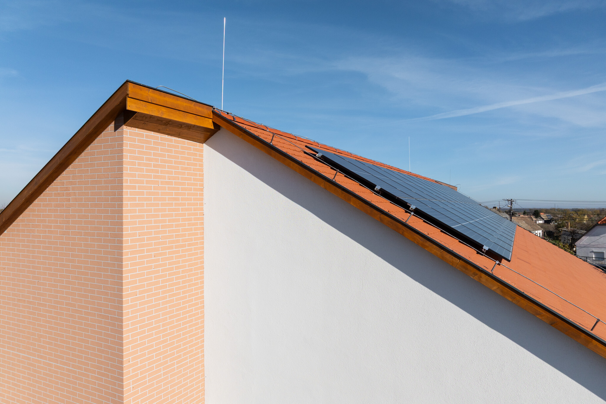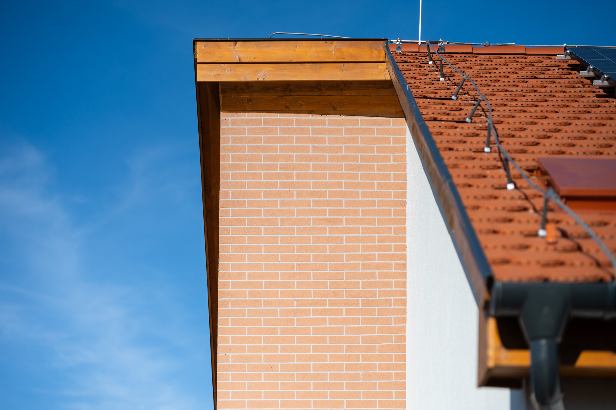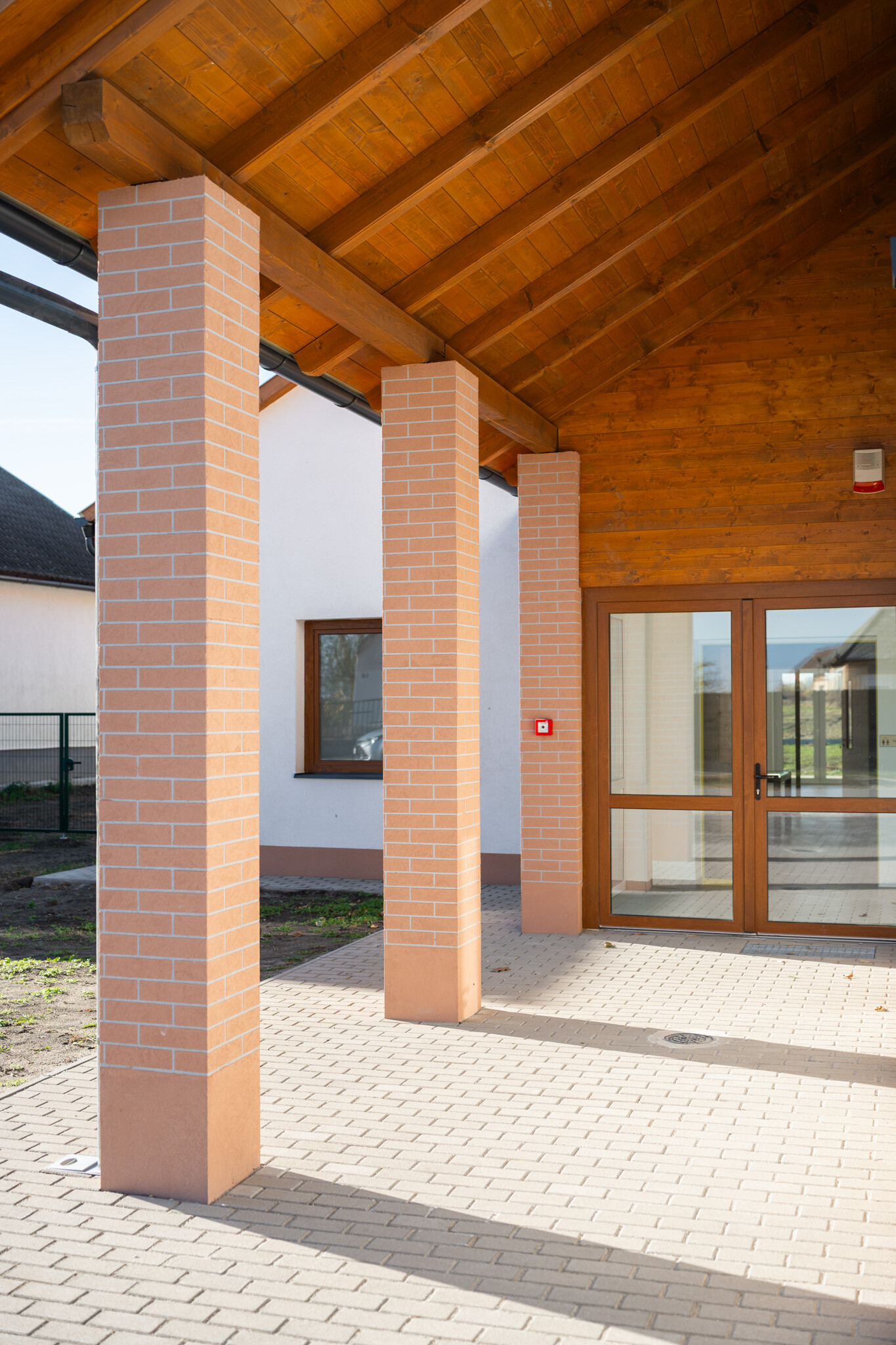 A beruházás során az egyik legfontosabb esztétikai igény a téglamintás homlokzati megjelenés volt. A cél egy olyan dekoratív, mégis könnyű és biztonságos megoldás kiválasztása volt, amely nem terheli a hőszigetelő rendszert, és nem jár a valódi téglaburkolatoknál jellemző kivitelezési nehézségekkel.