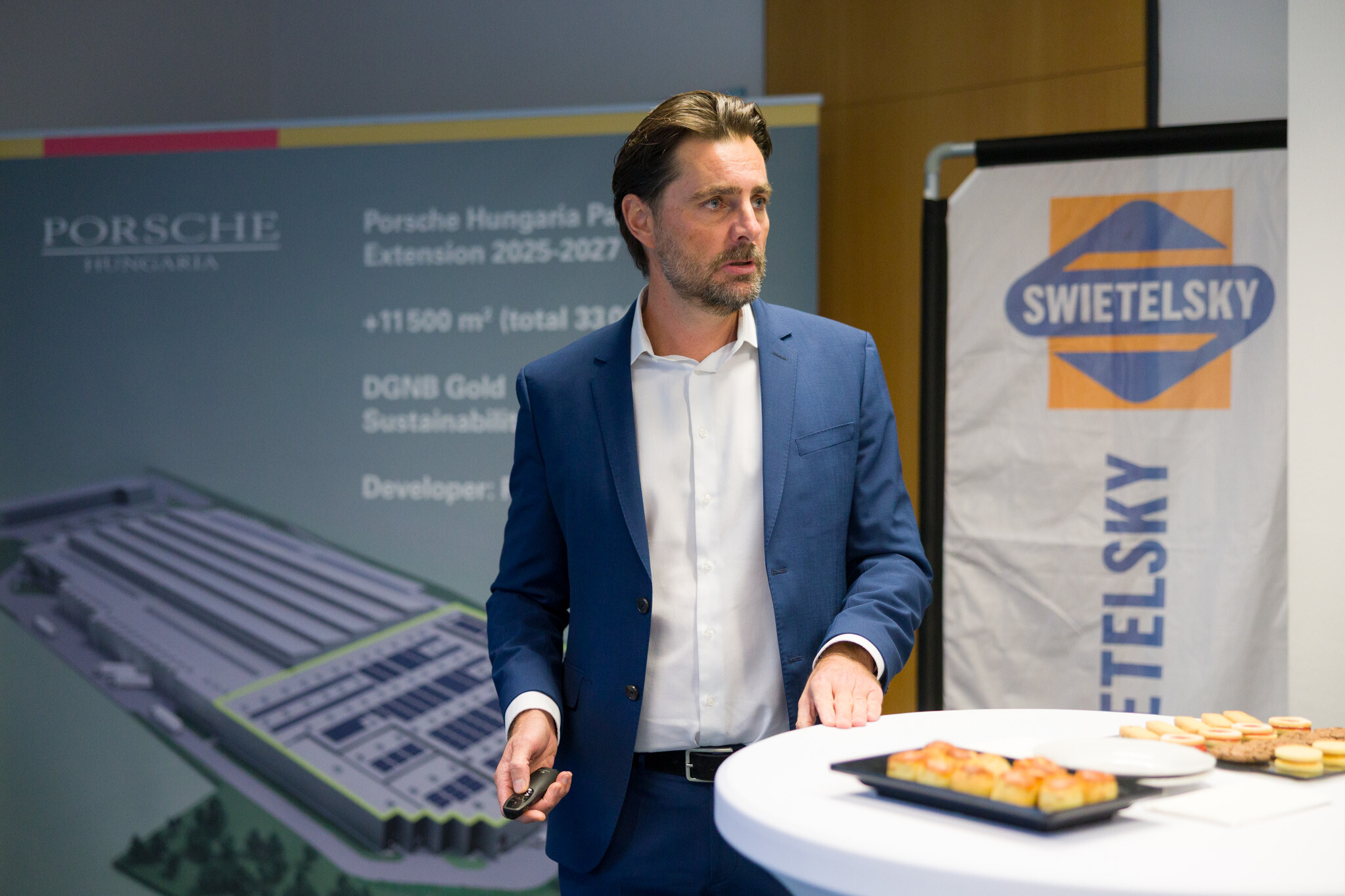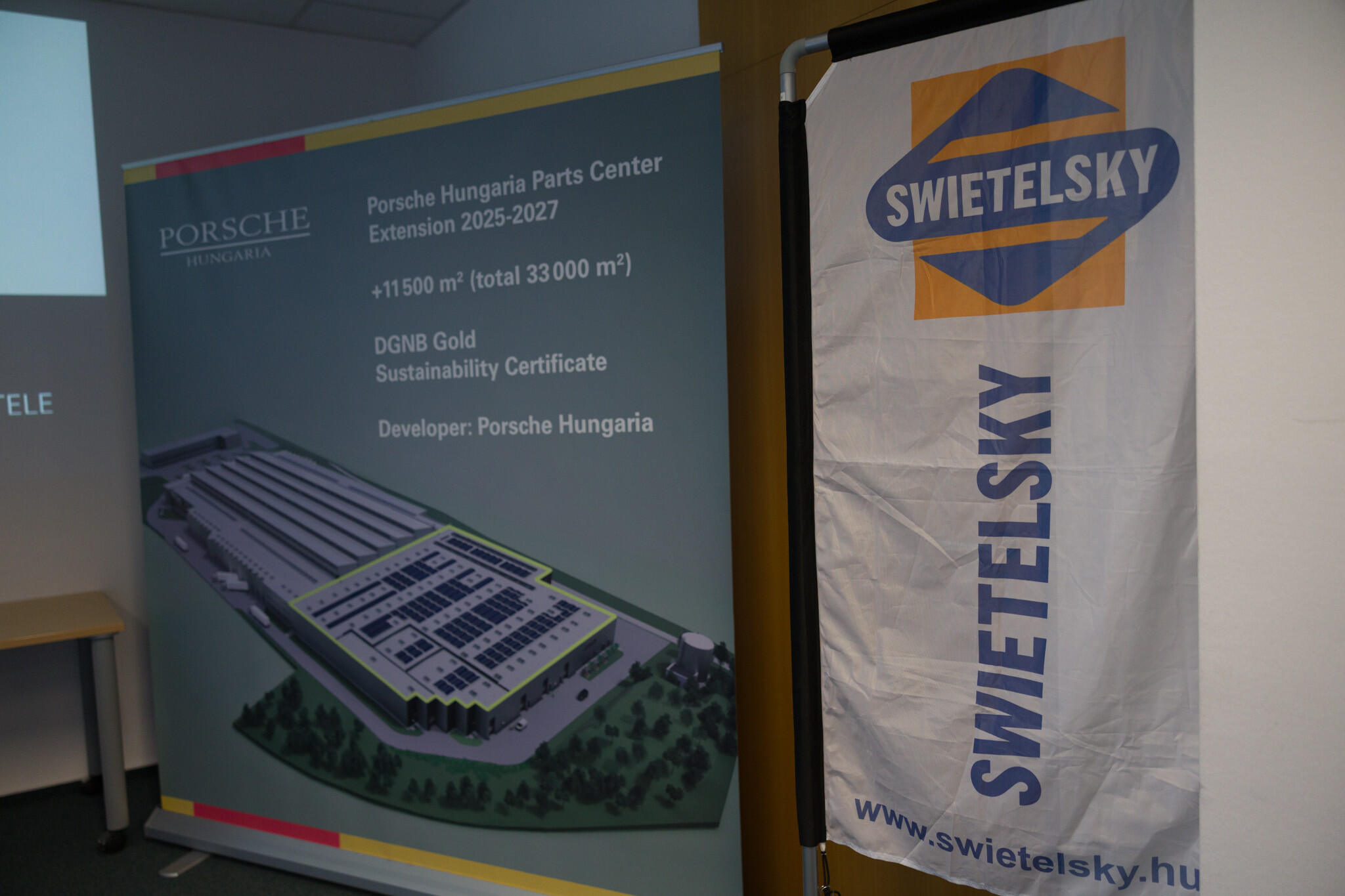 A Porsche Hungaria Kereskedelmi Kft. budaörsi logisztikai központja új csarnokkal gyarapodik a SWIETELSKY Magyarország Kft. kivitelezésében.