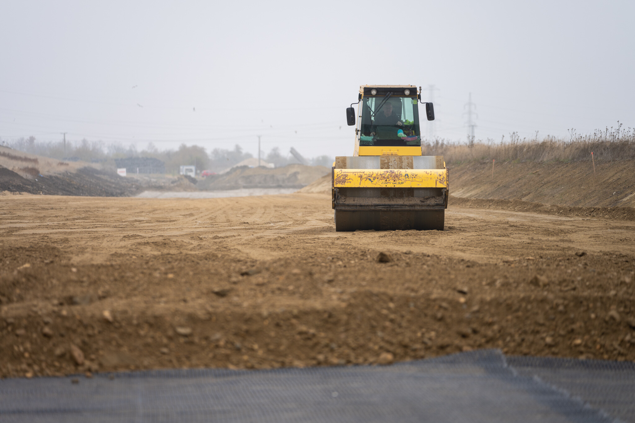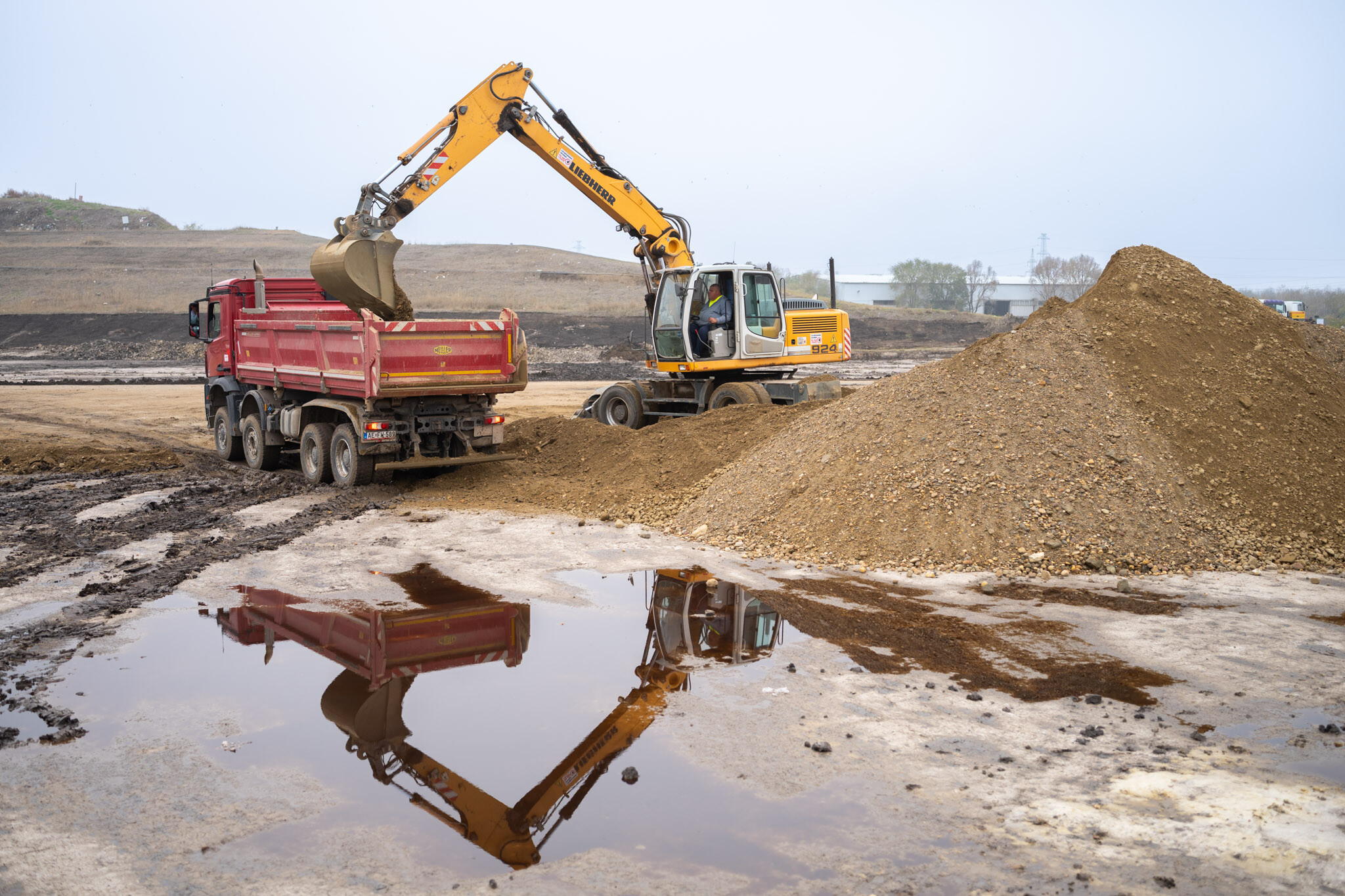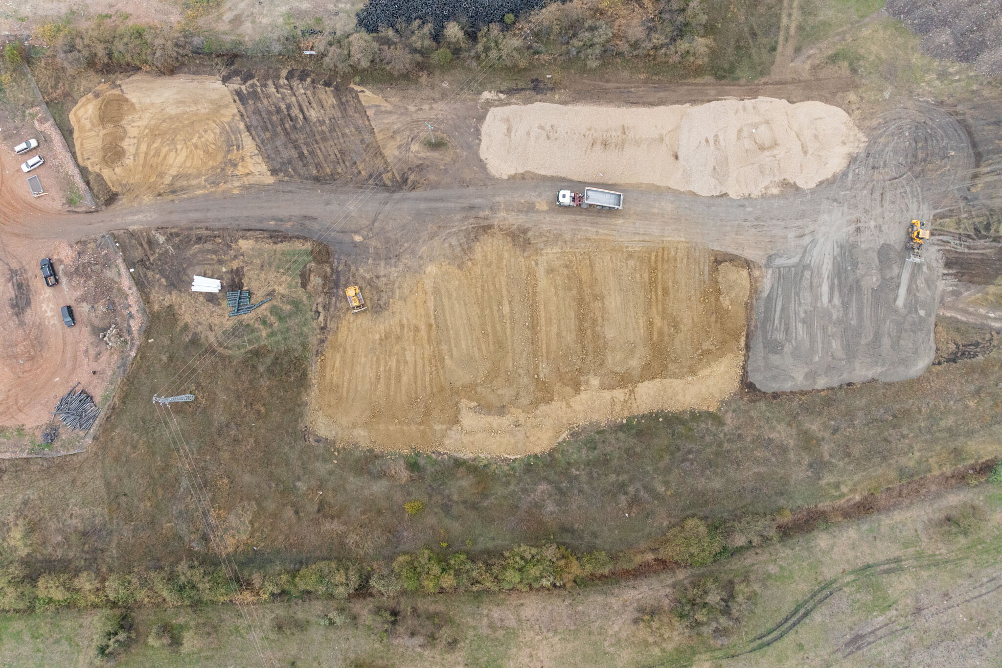 A munkálatok a terület előkészítésével indultak, ennek során mintegy 50 ezer négyzetméteres területről eltávolították a közel 20 ezer köbméternyi humuszréteget, amelyet a helyszínen deponálnak, majd a földmű elkészülte után fedőrétegként hasznosítanak.