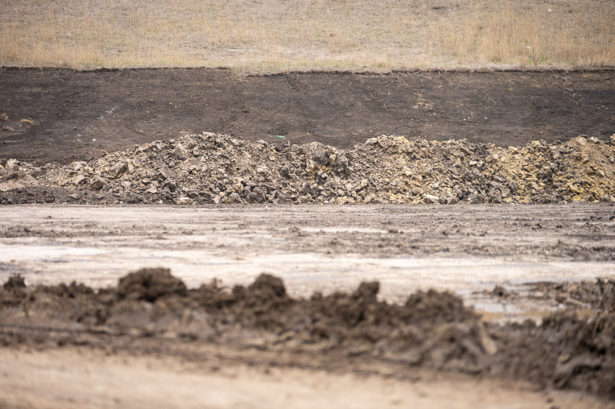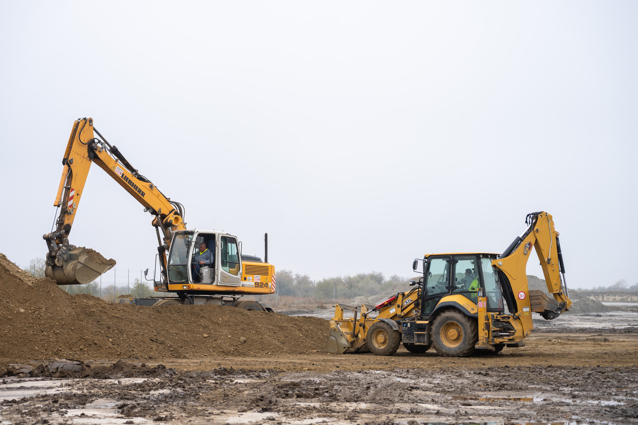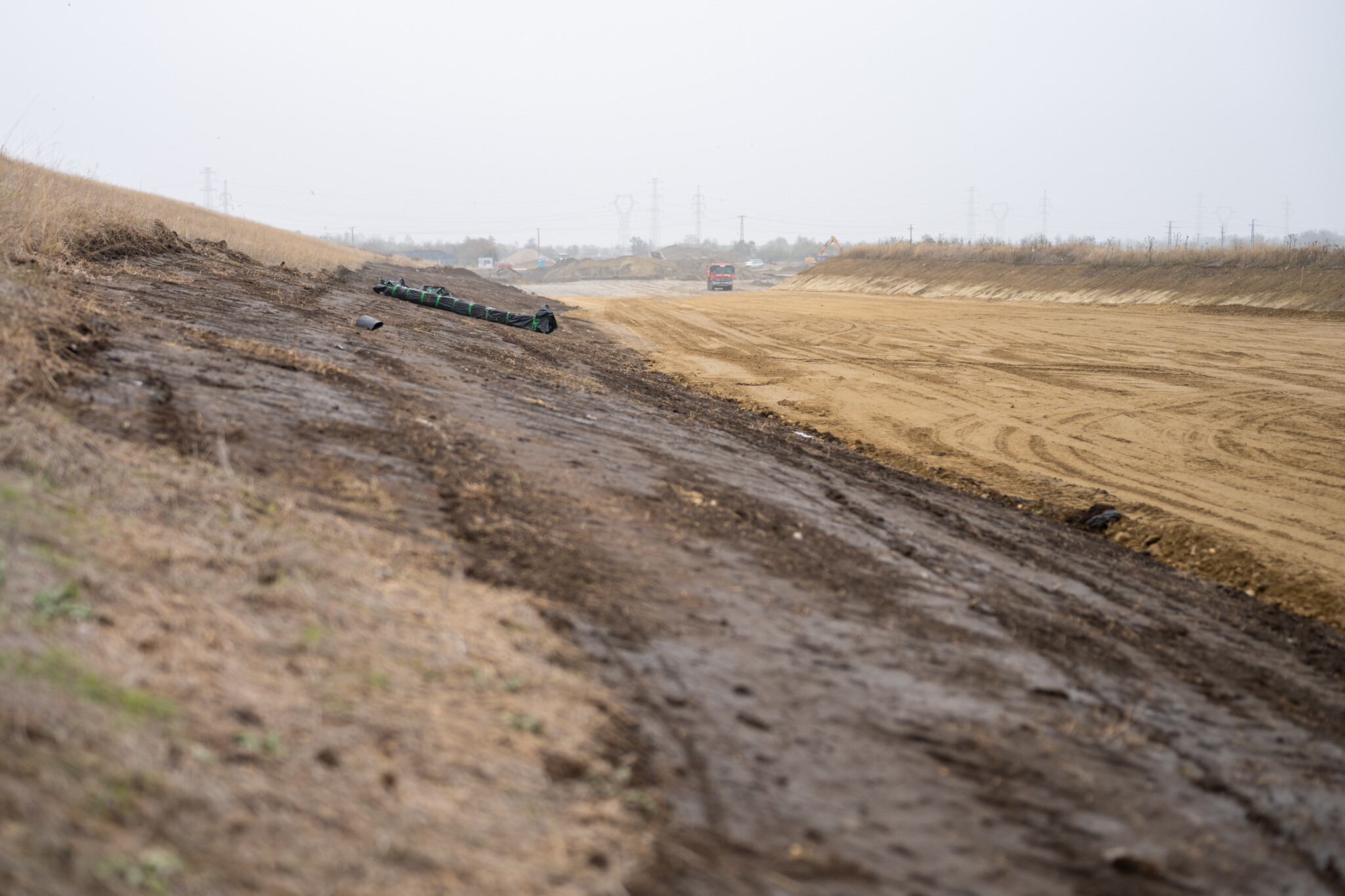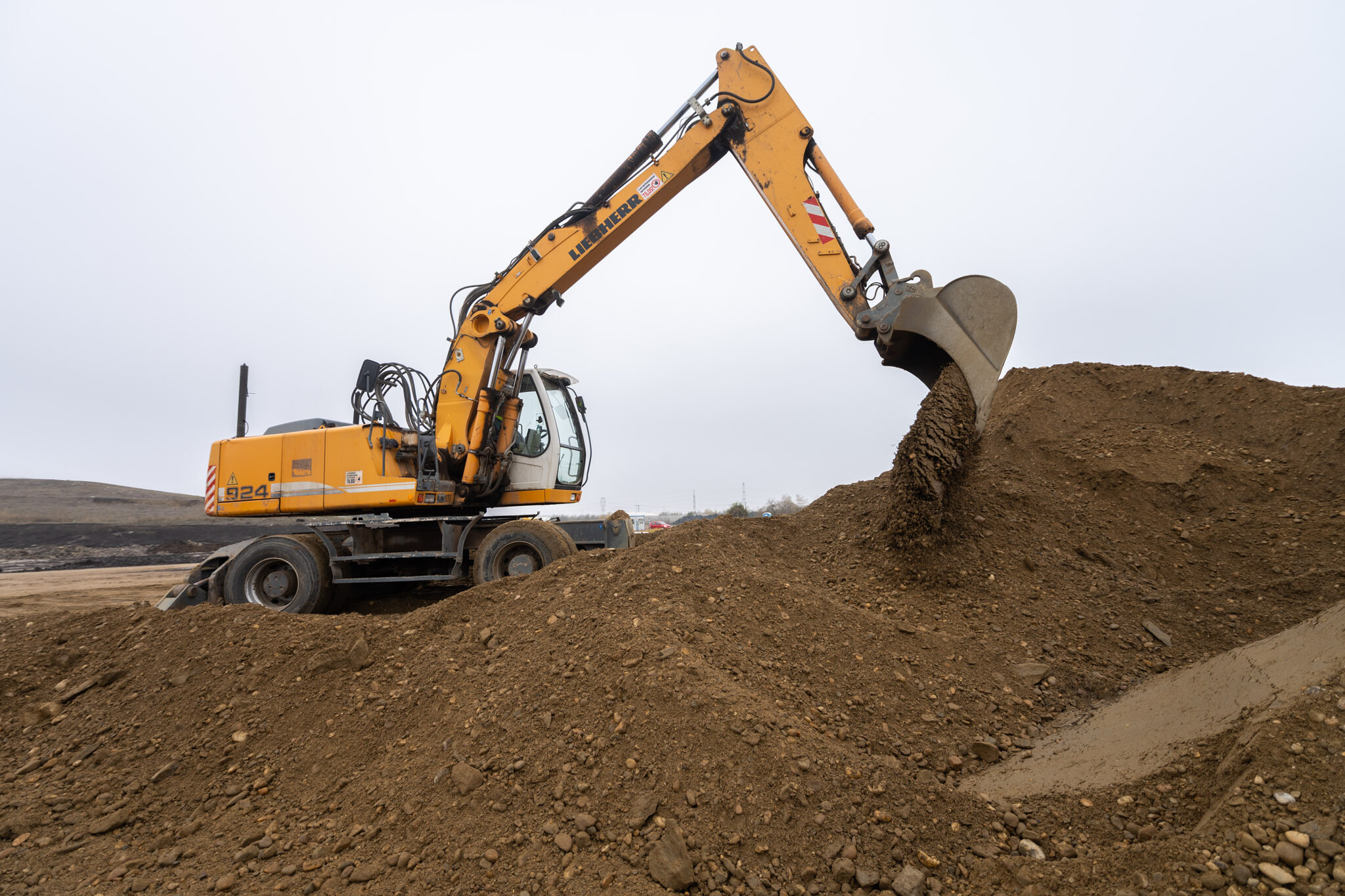 A munkálatok a terület előkészítésével indultak, ennek során mintegy 50 ezer négyzetméteres területről eltávolították a közel 20 ezer köbméternyi humuszréteget, amelyet a helyszínen deponálnak, majd a földmű elkészülte után fedőrétegként hasznosítanak.