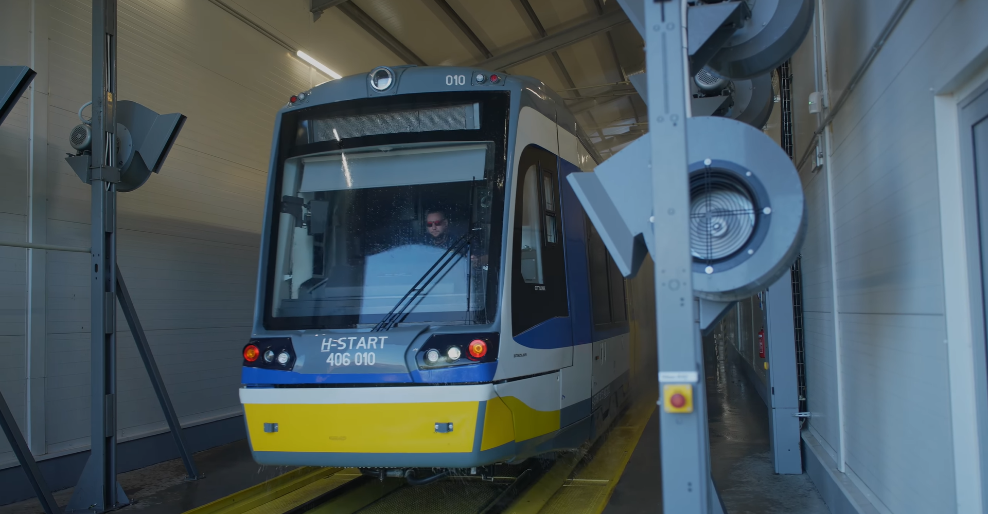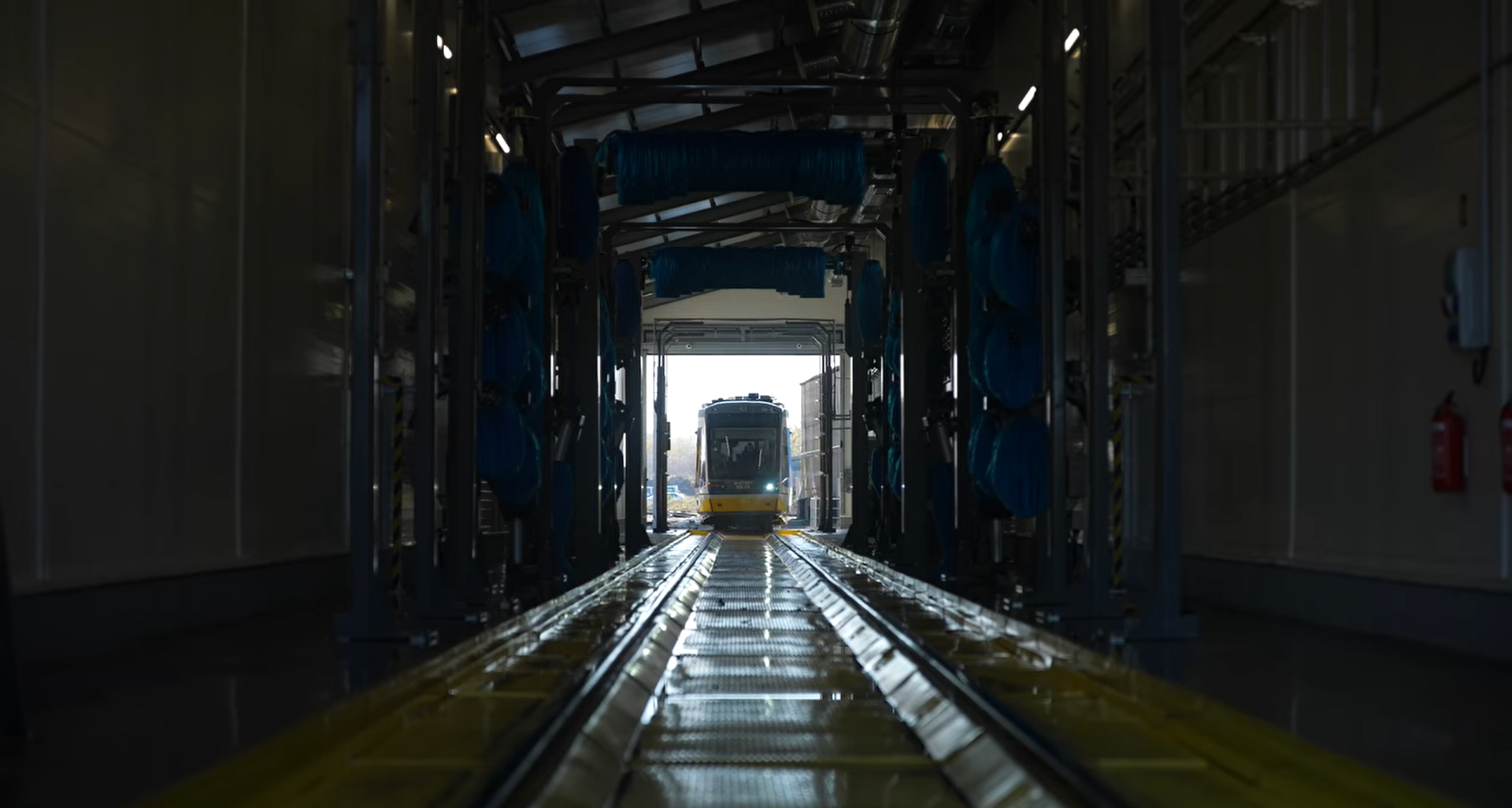 Mindössze 2-3 percet vesz igénybe a Tram-Train és az Intercityk külső tisztítása a nagy teljesítményű mosóban.