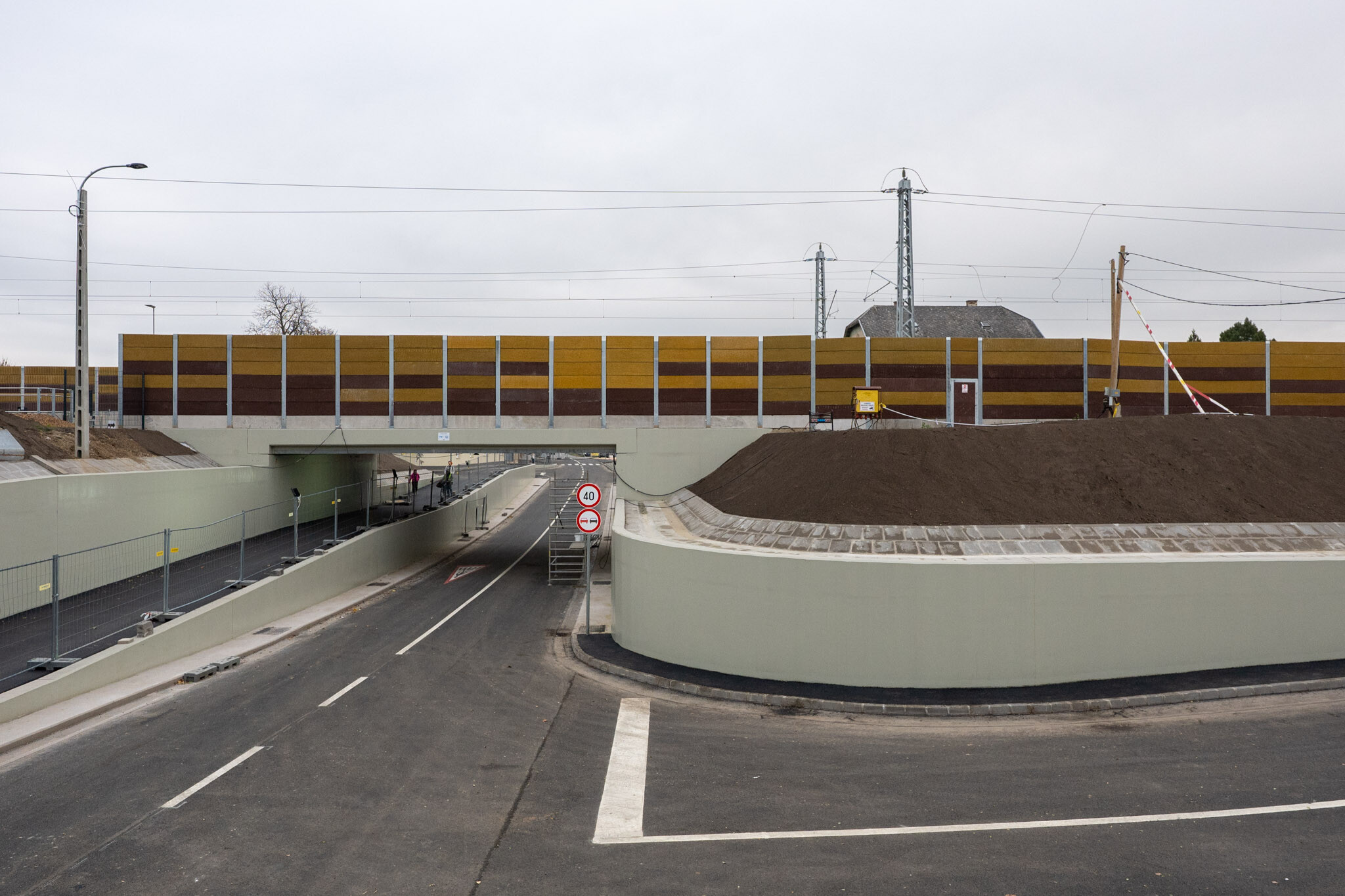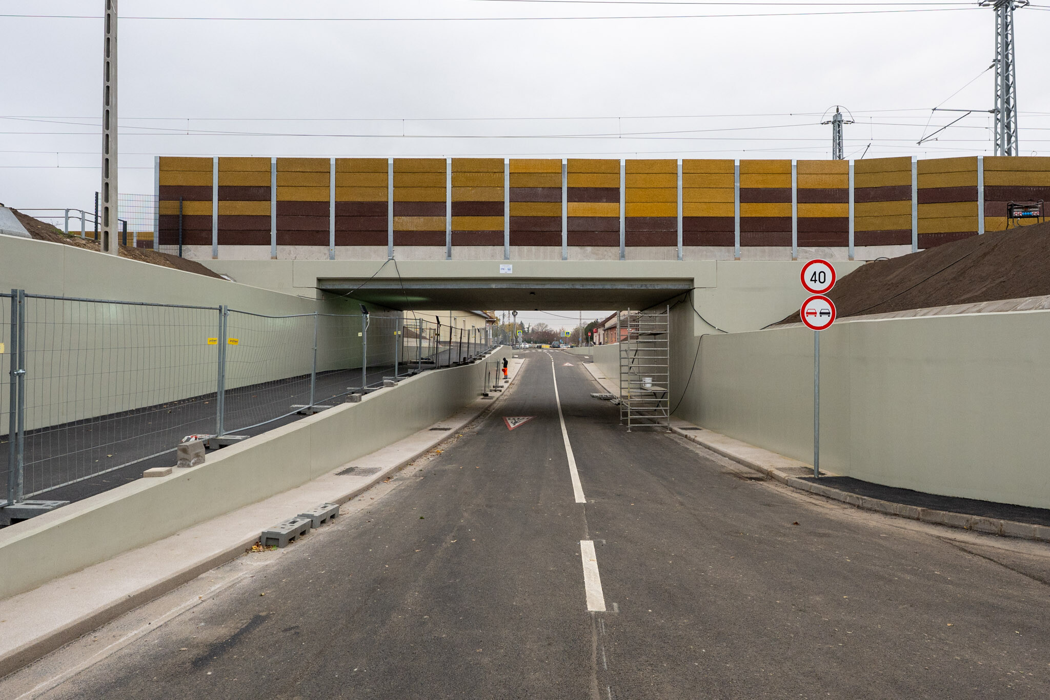 A Colas építésvezetője kitért arra is, hogy az új aluljáró geometriája a környező utcahálózat adottságaihoz igazodik. Az új aluljáró széltében és hosszában megnőtt: a Gyárköz és Vasút utcák közötti szakaszon U-alakú, monolit vasbeton keret készült, amely a felszerkezettel együtt zárt, dilatációs egységet képez. Az átépítéssel biztonságosabbá, korszerűbbé válik a közlekedés az aluljáróban.