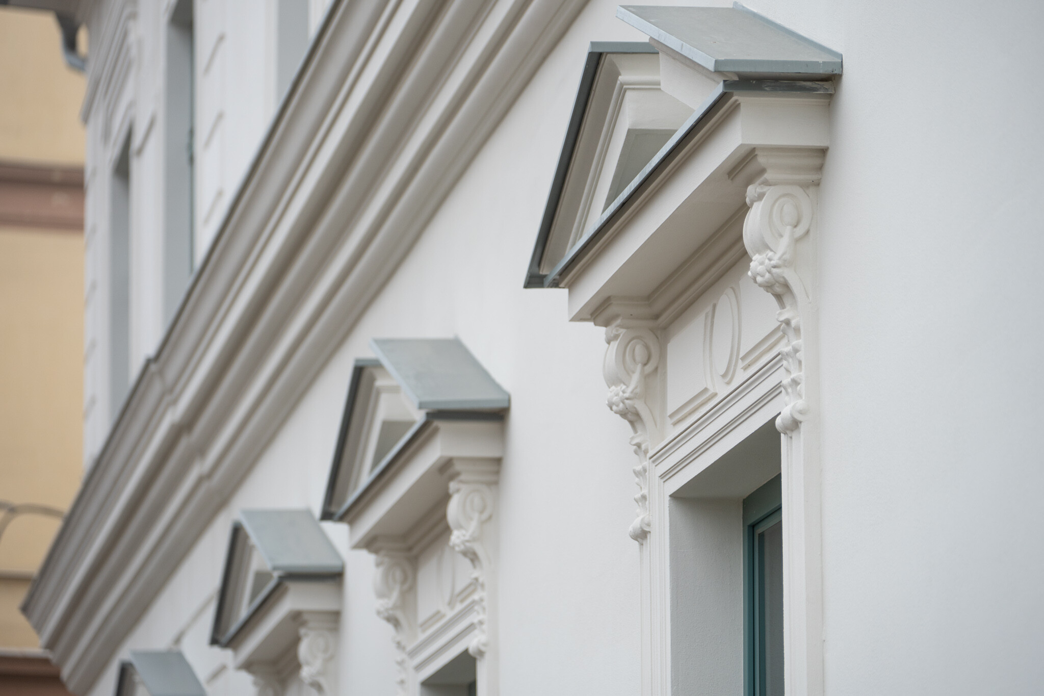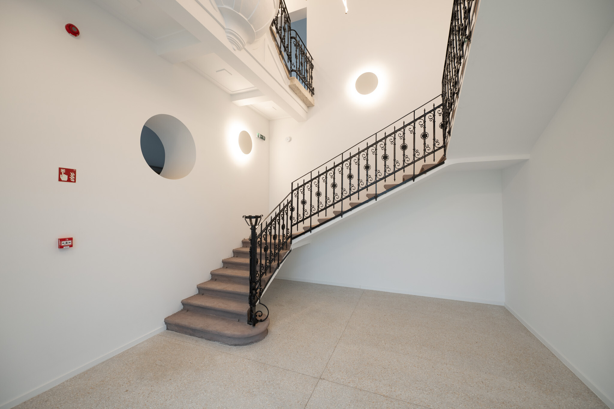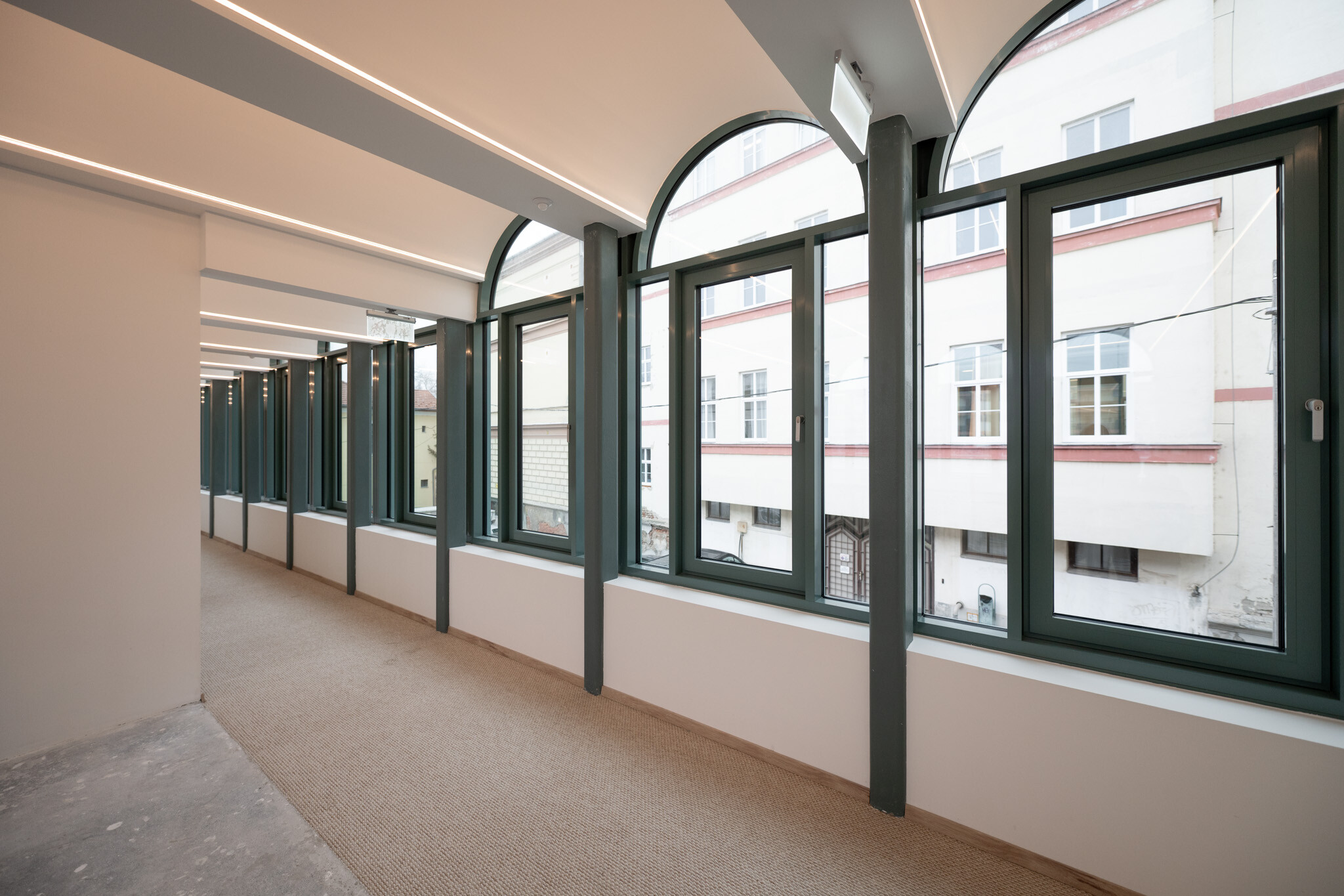 A Modulimpex különösen büszke a homlokzat eredeti állapotának magas minőségű rekonstrukciójára és a hibrid szerkezetű új épületszárny impozáns megjelenésére.