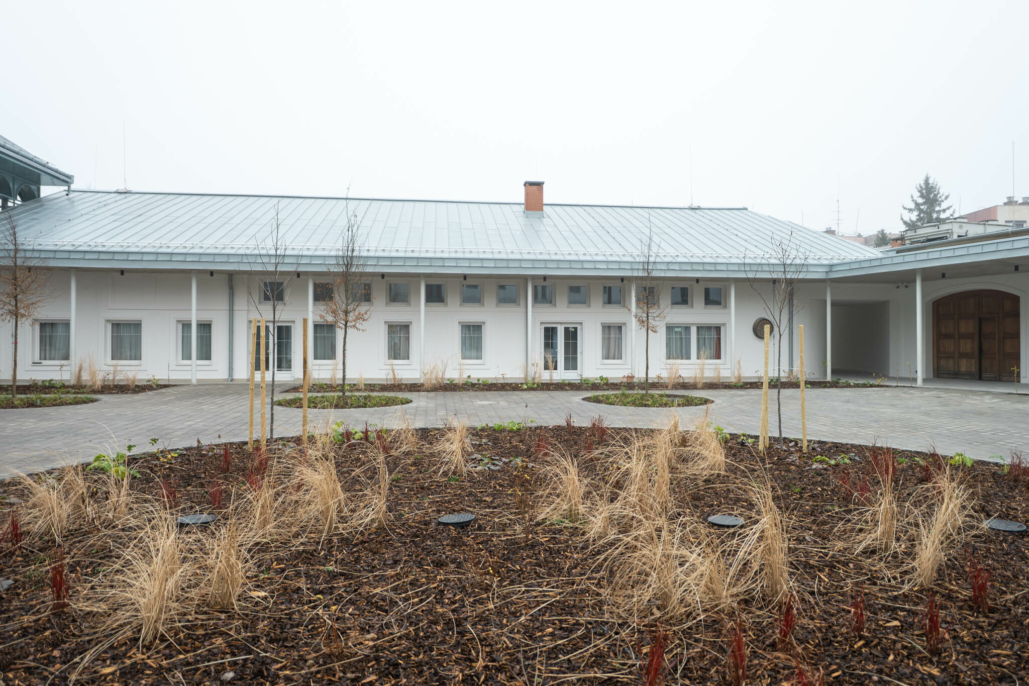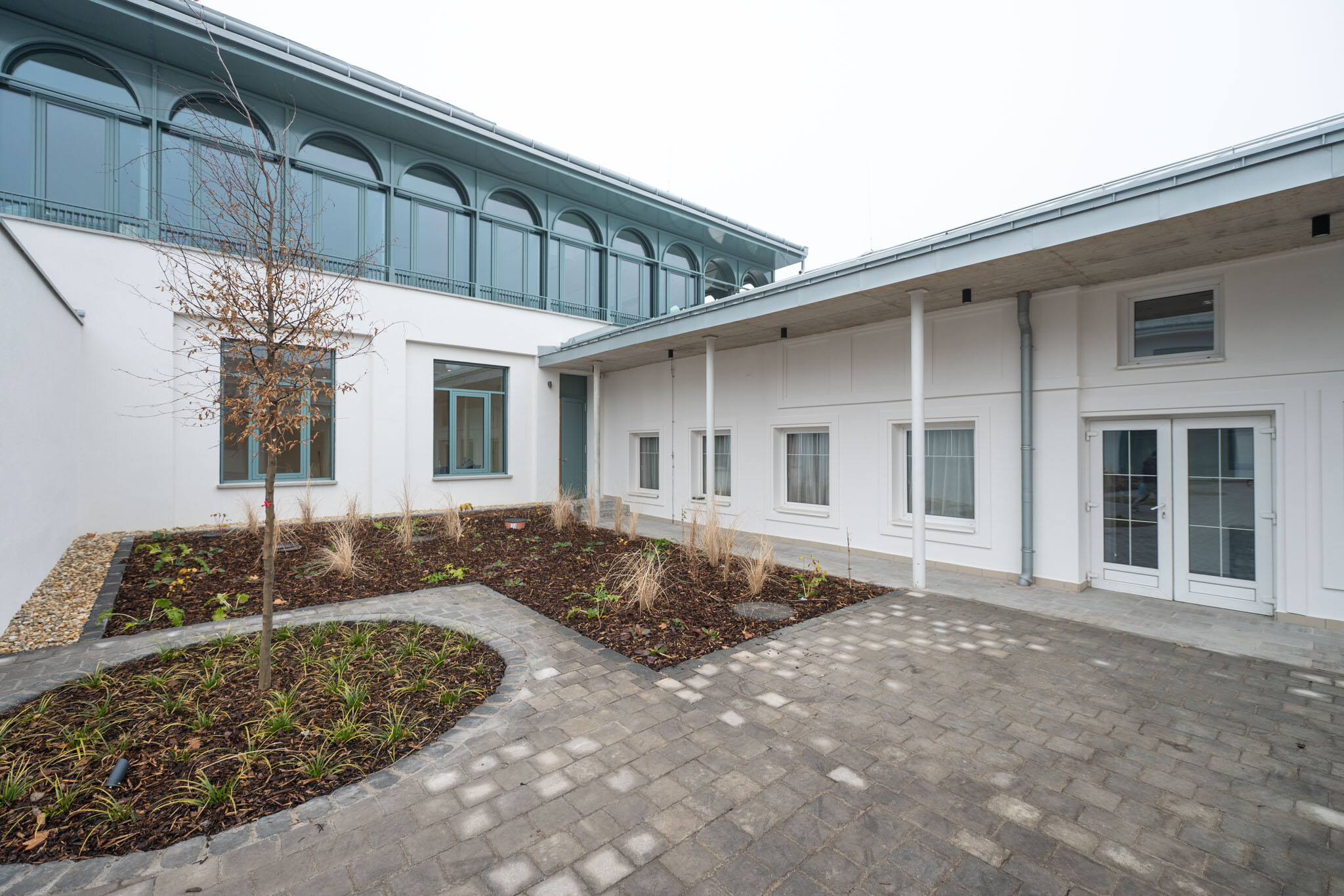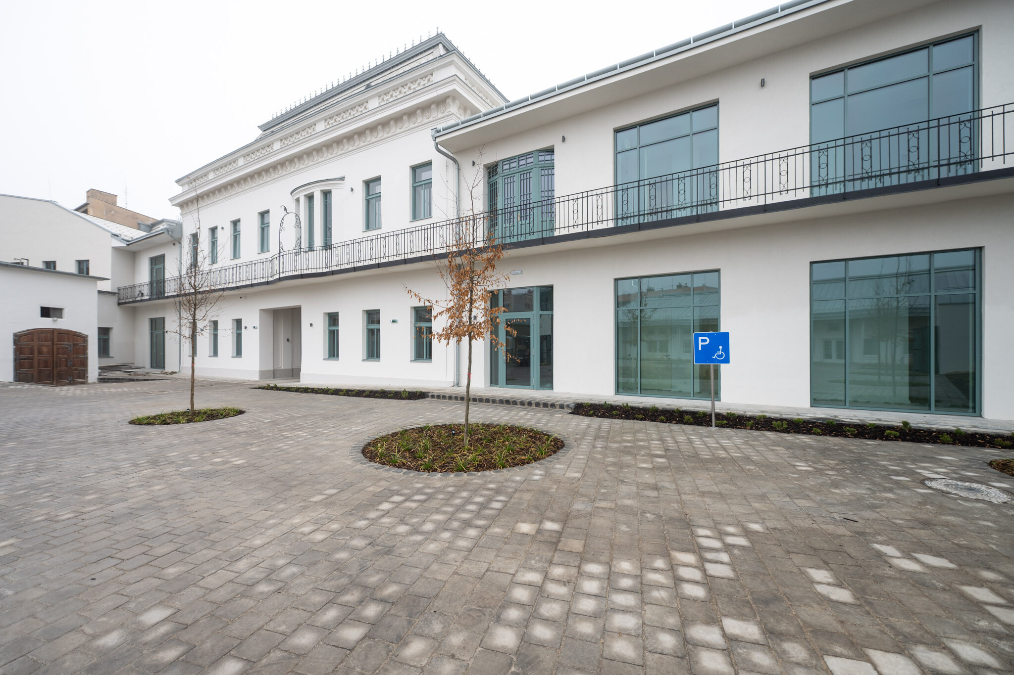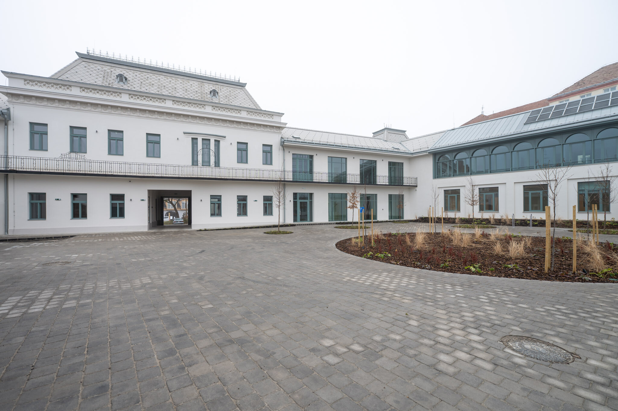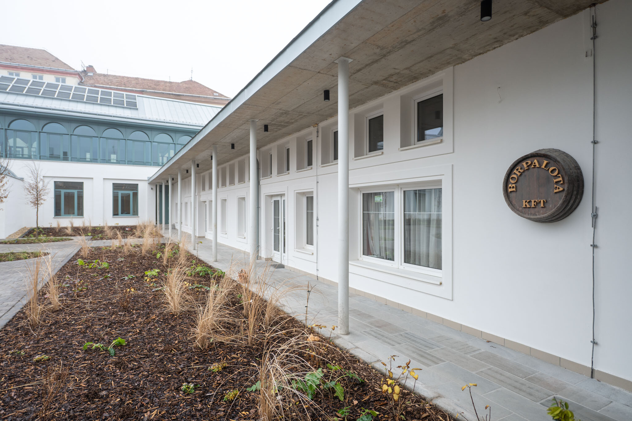 A műemléki homlokzat helyreállítása, az új függönyfalas épületszárny kialakítása és a pincerendszer korszerűsítése mellett megújult a teljes külső közműhálózat, a belső udvar pedig a tájépítészeti tervek szerint kapott új arculatot.