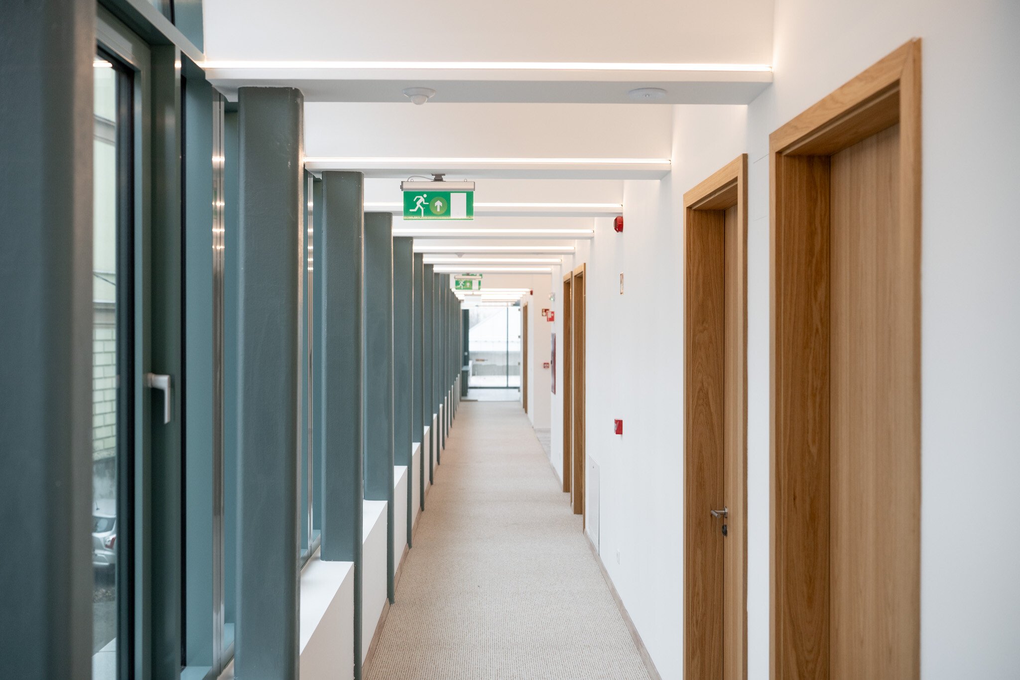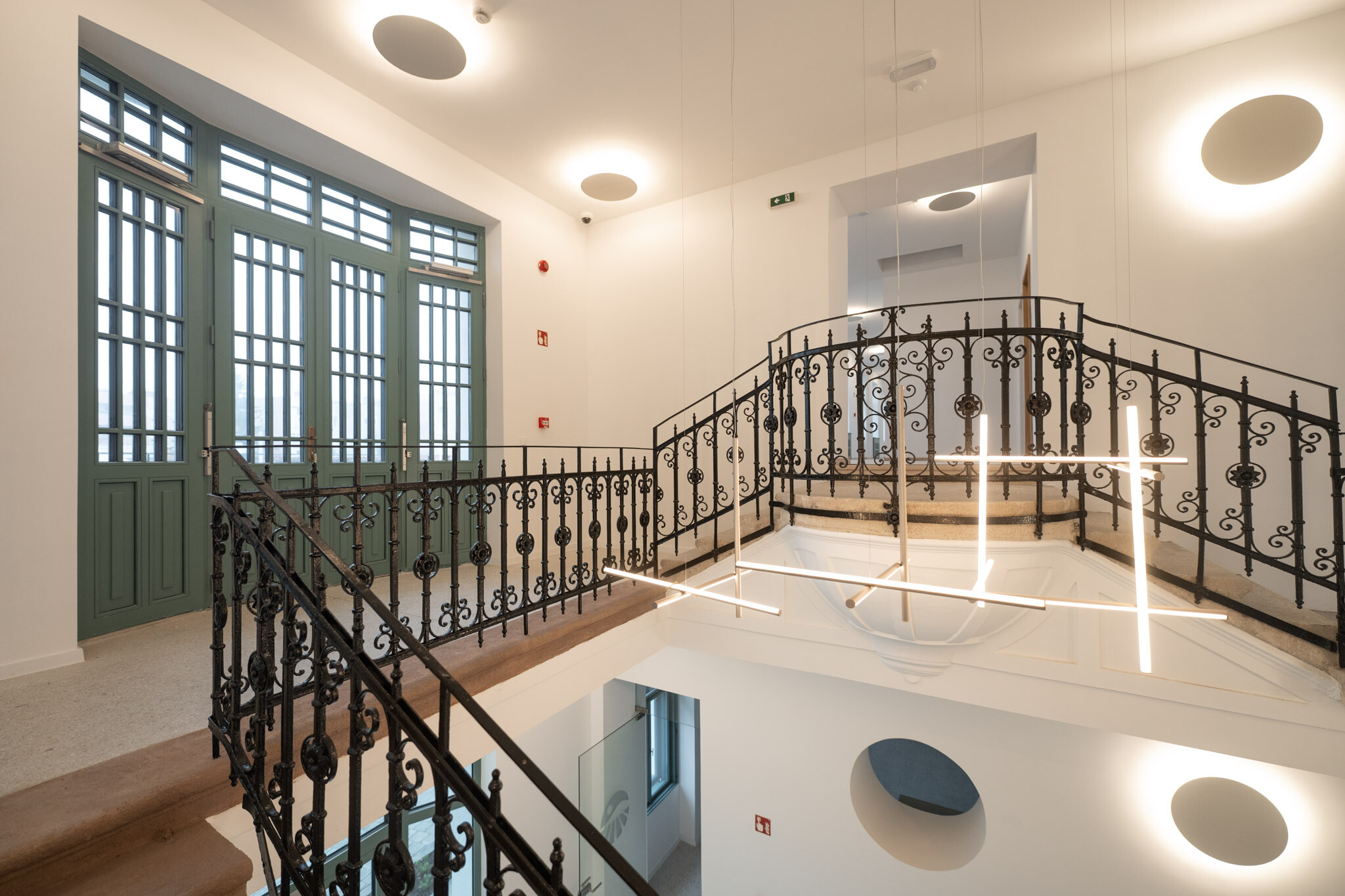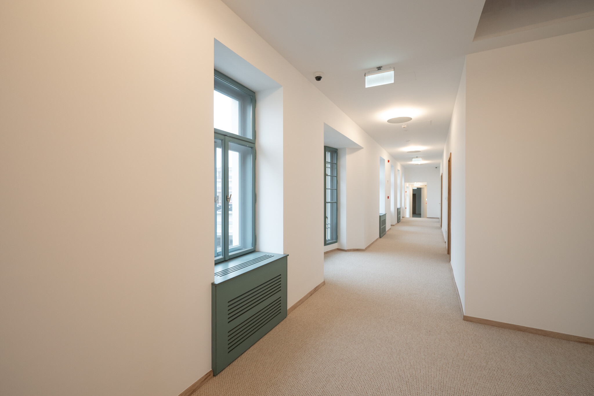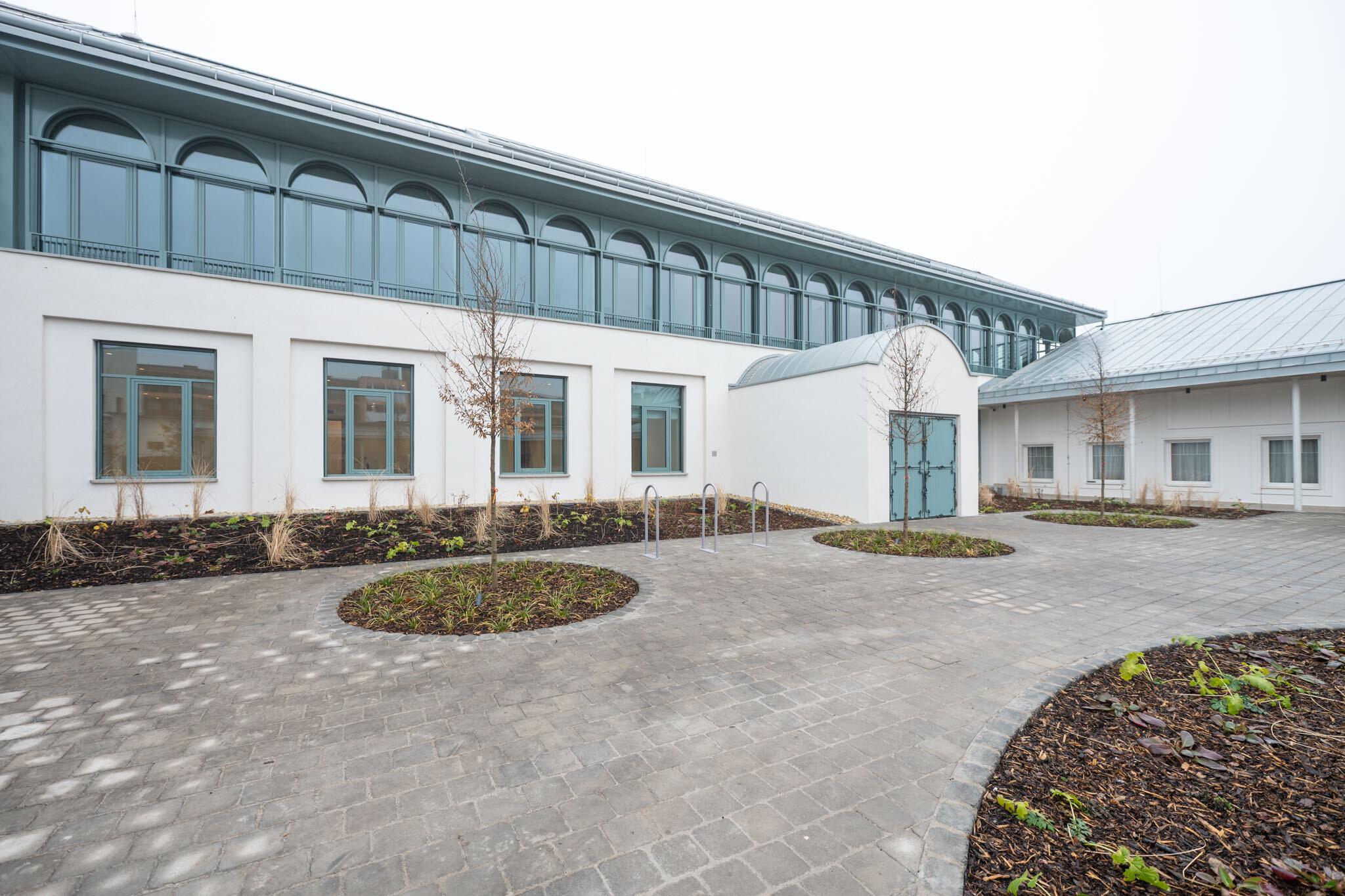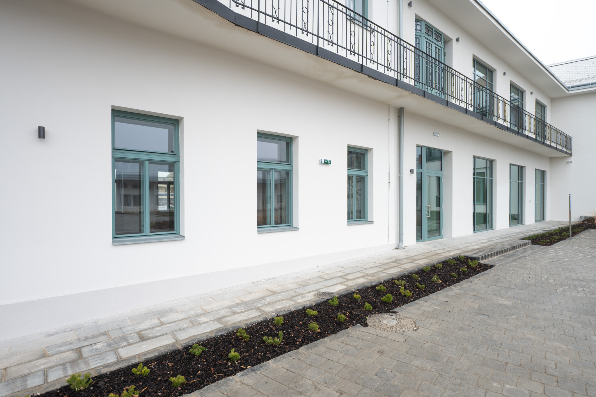 A műemléki homlokzat helyreállítása, az új függönyfalas épületszárny kialakítása és a pincerendszer korszerűsítése mellett megújult a teljes külső közműhálózat, a belső udvar pedig a tájépítészeti tervek szerint kapott új arculatot.