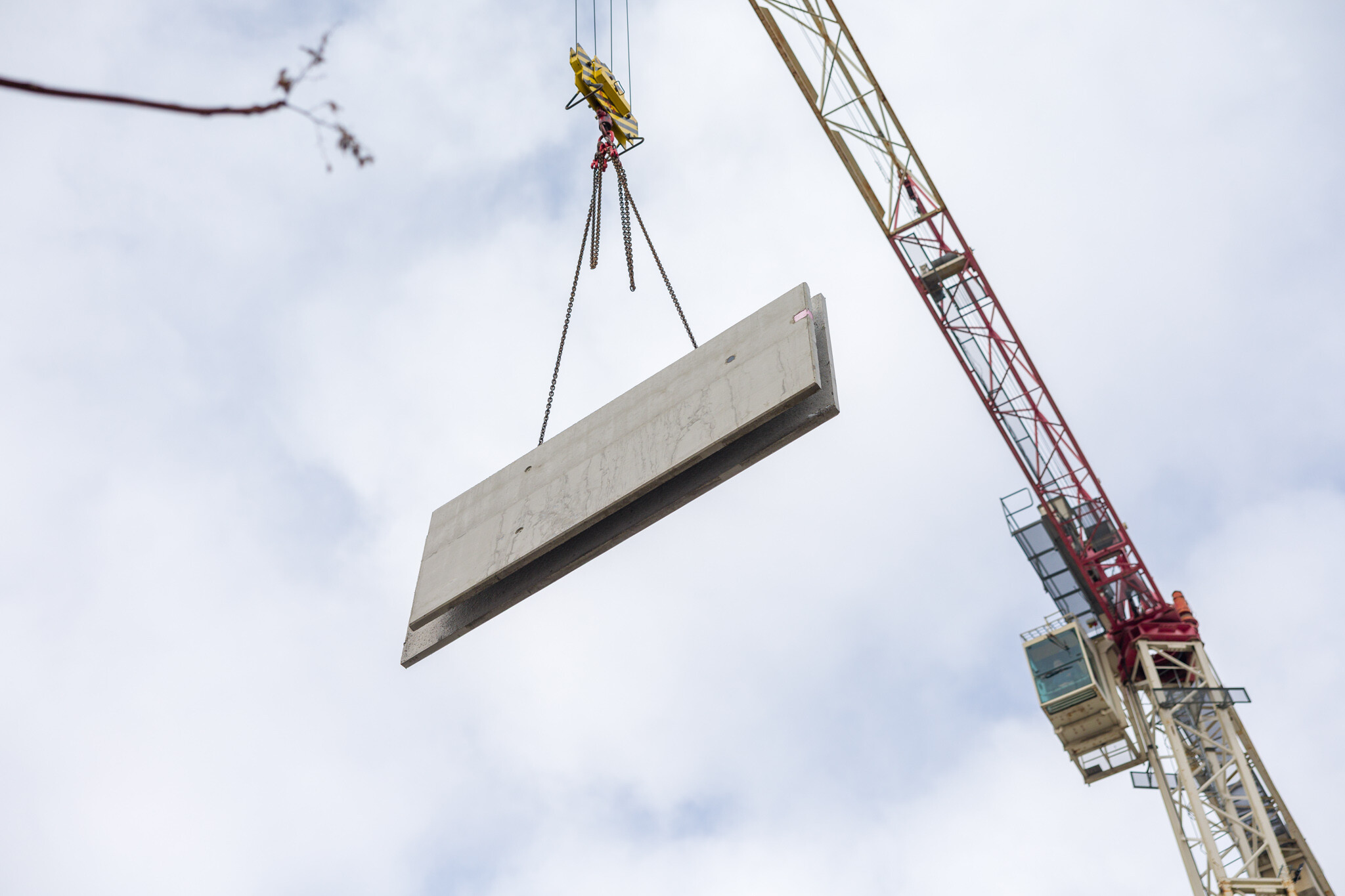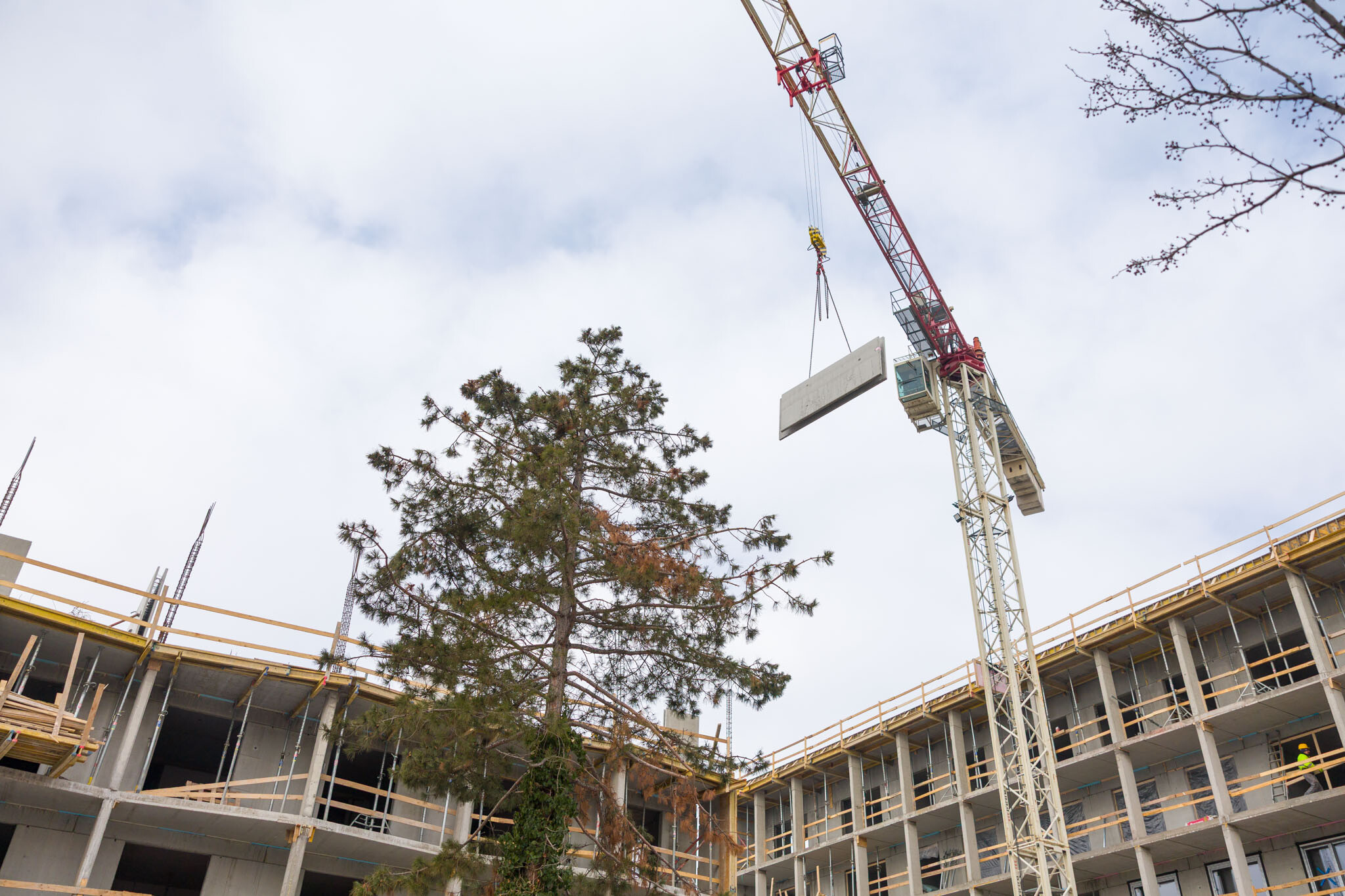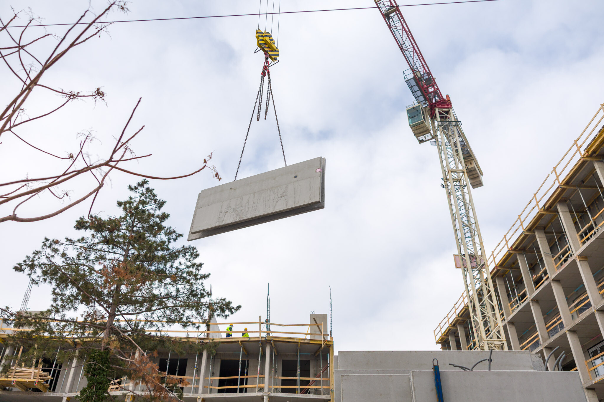 A projekt egyik legnagyobb kihívása a logisztika volt. Az építkezésen egyszerre három toronydarut kellett kiszolgálni, miközben párhuzamosan zajlott a fal- és födémelemek szállítása.