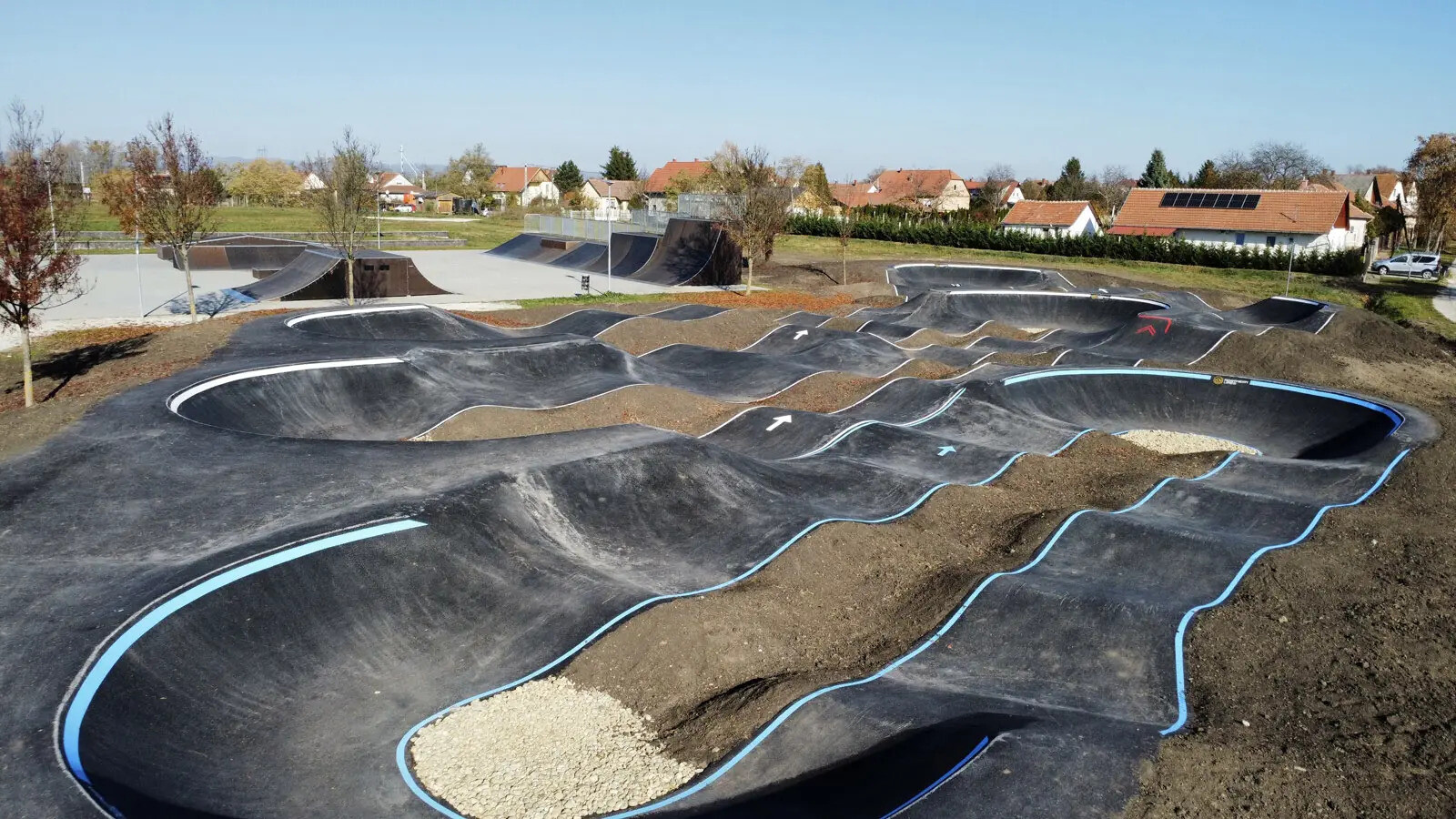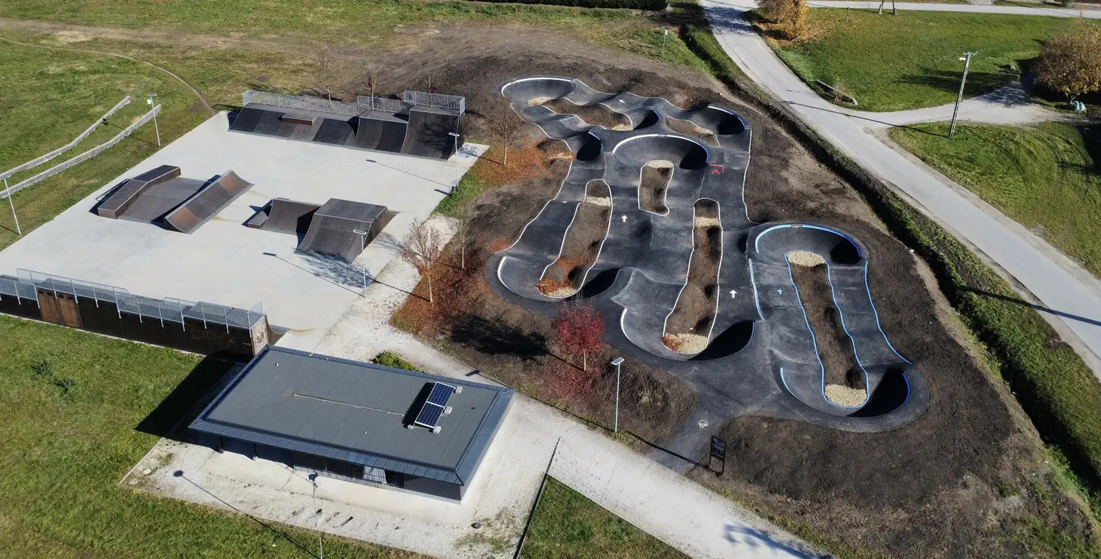 Az új pumpapálya a mellette található skatepark kiegészítéseként jött létre, vele együtt egy modern sport- és szabadidőparkot alkot.