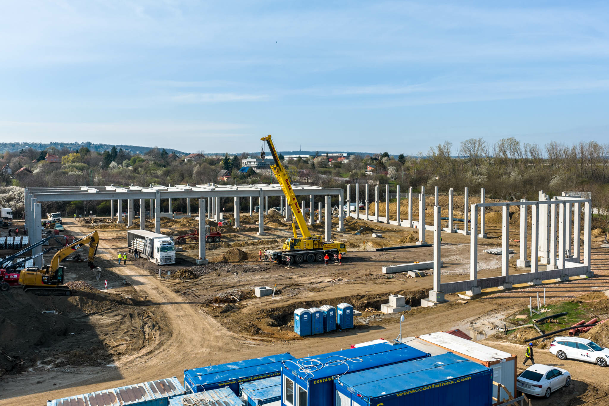 Az új csarnok kivitelezése az alapozási munkákkal indult, amelyek mára már jelentős részben lezárultak. „Elkészült az alapozás, a talajszondák kialakítása, és párhuzamosan zajlottak a földmunkák, valamint a csatornaépítés is” – mondta Horváth Ferenc. Hozzátette, jelenleg már az előregyártott szerkezeti elemek beemelése is folyamatban van, így az épület kezd „kinőni a földből”.