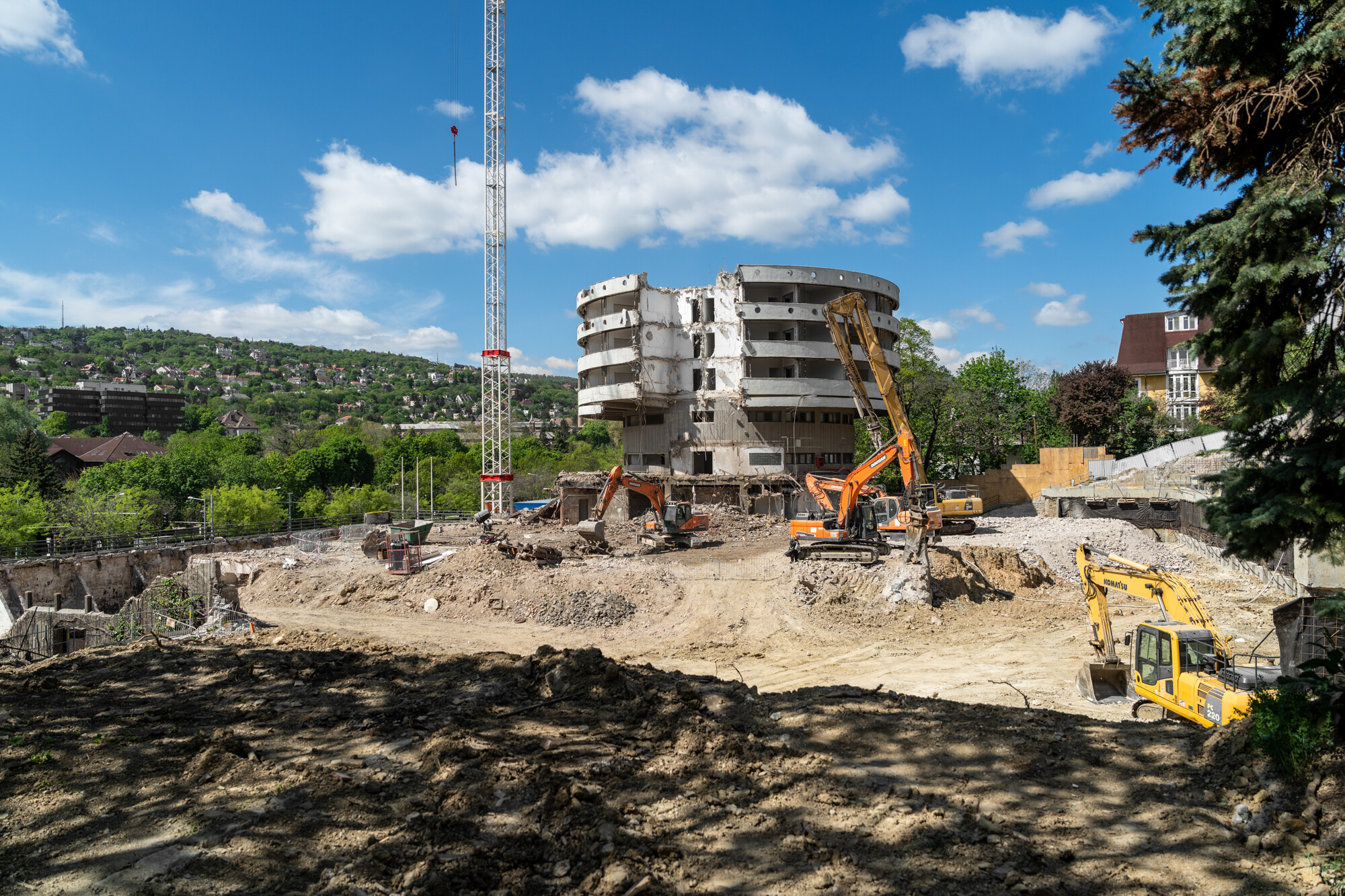 A beruházás a módosított építési engedélynek megfelelően halad a teljes szerkezetcsere felé, miután a statikai vizsgálatok igazolták, hogy az eredeti váz megtartása nem lenne biztonságos.