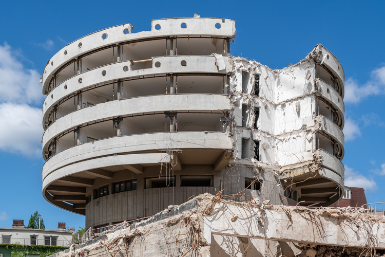 Ugyanakkor ez a magasság lehetővé teszi, hogy a földről működő nagyméretű bontógépek is elérjék az épületet, így a kivitelezés nagygépi bontással folytatódik, ami sokkal hatékonyabb és jelentősen felgyorsítja a munkát