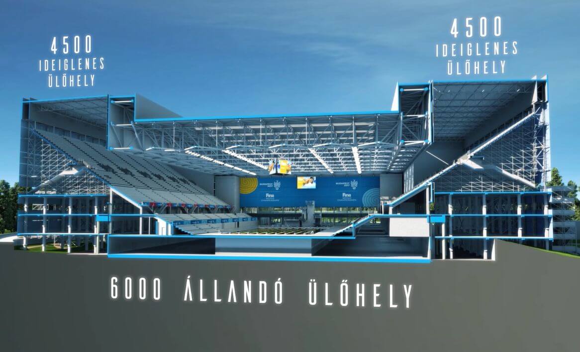 Szintén nagy kihívás volt az épületen túlnyúló ideiglenes lelátó tartószerkezete az északi oldalon a két túlfolyó csatorna miatt. „Ezeket is a csatornavédelem figyelembe vételével kellett megépítenünk: nem ott támasztottunk alá, ahol a statika igényelte volna, hanem ahol volt hely a két csatorna között lealapozni ezt az épületszakaszt.”