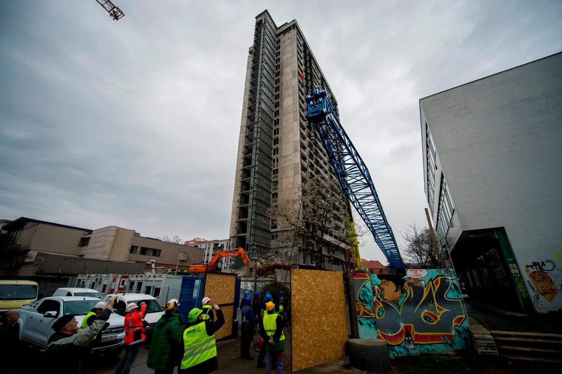 Megindult a 25 emeletes pécsi magasház bontása, mely 20 ezer tonnányi vasbetonból épült, és mintegy 1500 vagonnyi törmelék lesz belőle. A 70-es években megépített toronyház a vázszerkezetének korróziója miatt életveszélyessé vált, a területén park létesül.
