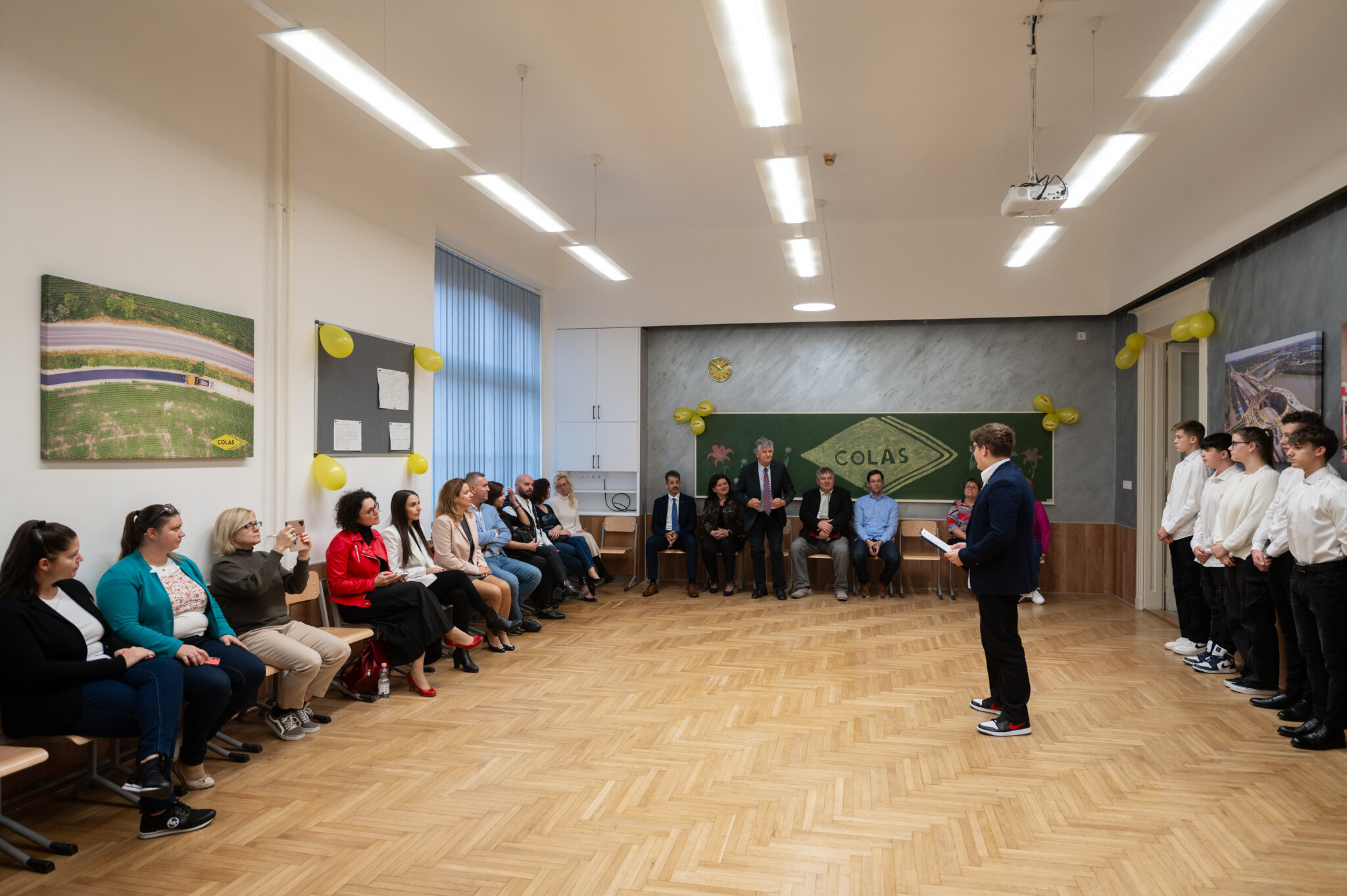 A Colas-terem ünnepélyes átadóján Varga András, a technikum igazgatója kiemelte a kivitelező cég családias jellegét, melyet a tanintézményen belül is fontosnak tartanak.