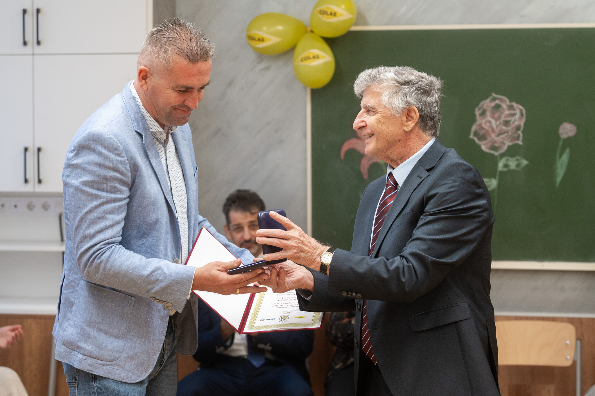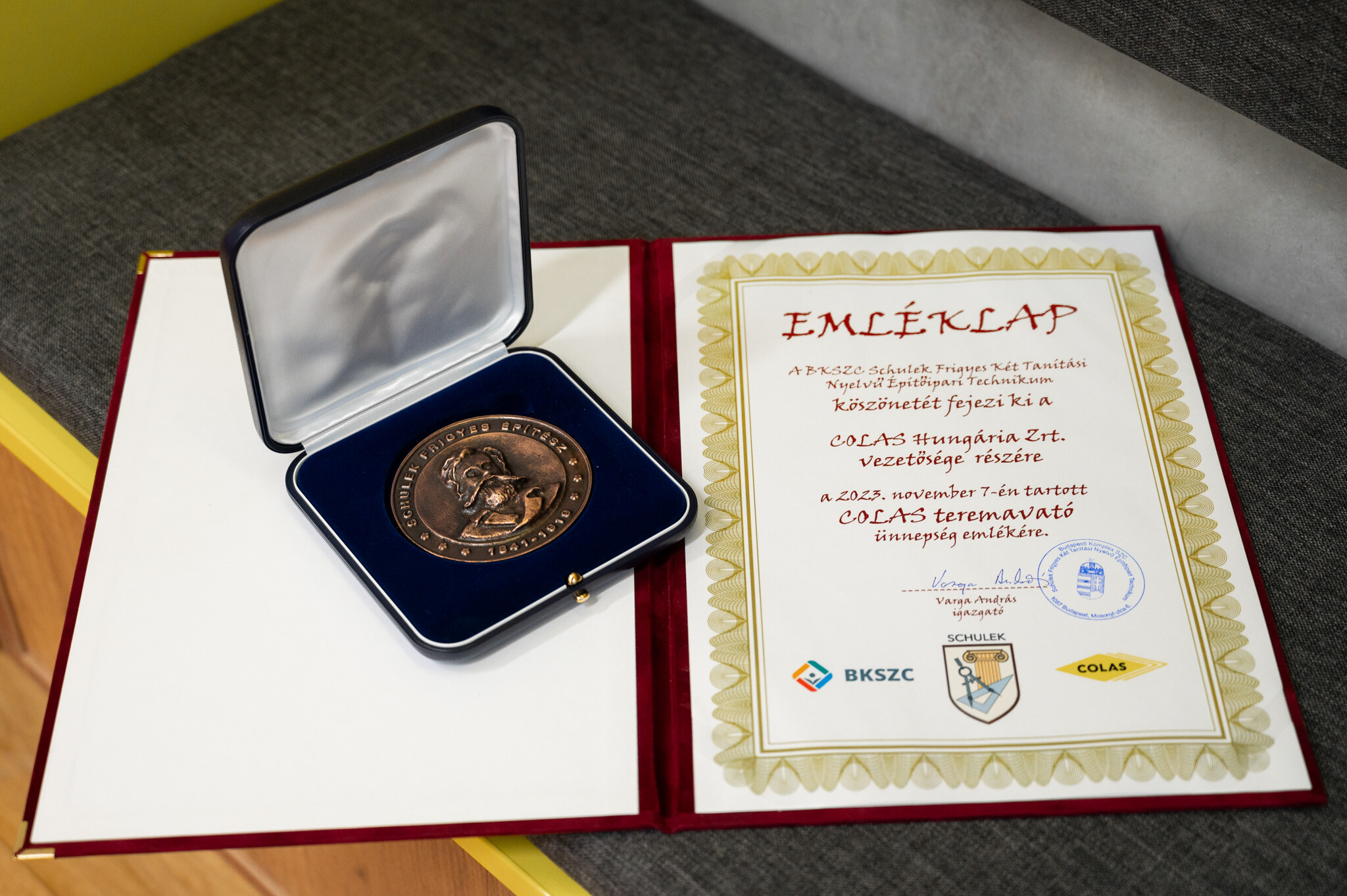Az ünnepségen a technikum igazgatója emlékplakettet adott át a Colas vezérigazgatójának és megköszönte a cég munkáját.