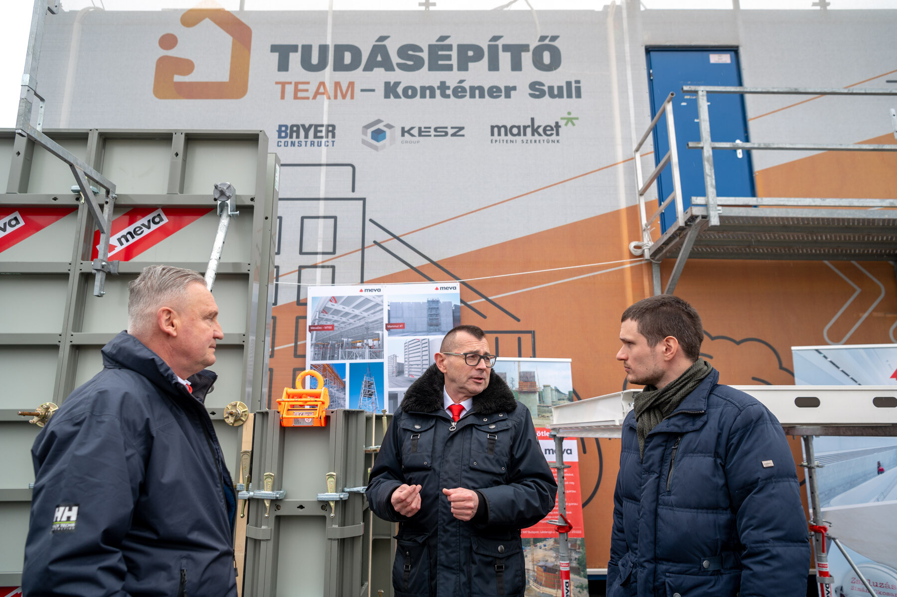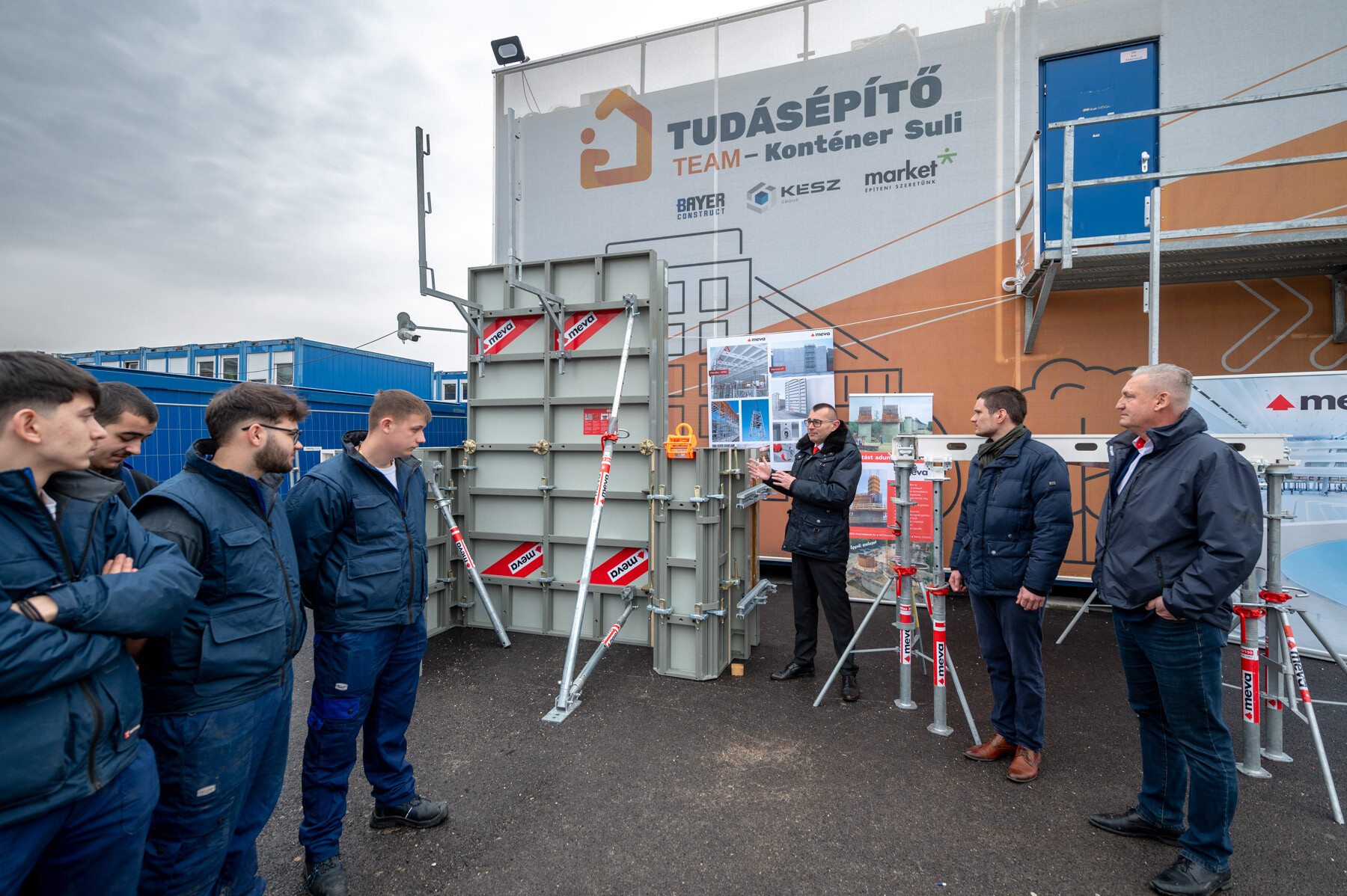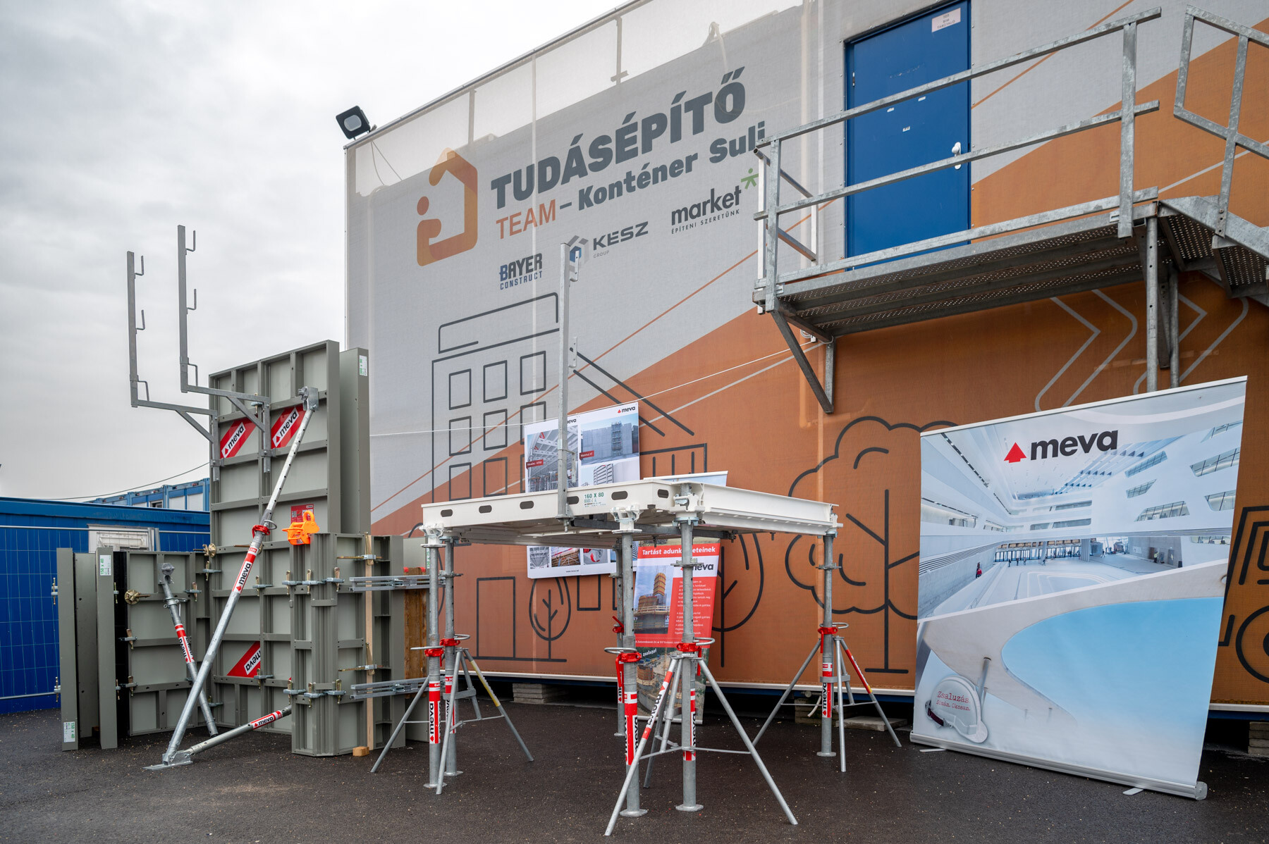 Hazánk új építőipari szakképzési központja, a Tudásépítő Team létrehozásával nem vállalt kevesebbet a Market, a KÉSZ Csoport és a Bayer Construct, mint megoldási lehetőséget nyújtani a szakemberhiány problémáira, egyben a gyors ütemben változó technológiák fiatalokkal való megismertetésére. Ennek támogatását tűzte ki célul a MEVA Zsalurendszerek Zrt. is, amikor oktatási célra felajánlotta legmodernebb zsalu-megoldásait, oktatási kapacitását.