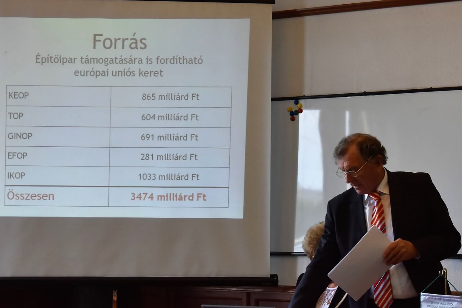 Az államtitkár előadásában bemutatta a Magyarország által lehívható uniós források sarokszámait, melyek építőipari beruházásokra is fordíthatóak. A KEOP, a TOP, a GINOP, az EFOP és az IKOP kerete együttesen 3474 milliárd forintot tesz ki a mostani uniós költségvetési ciklusban.