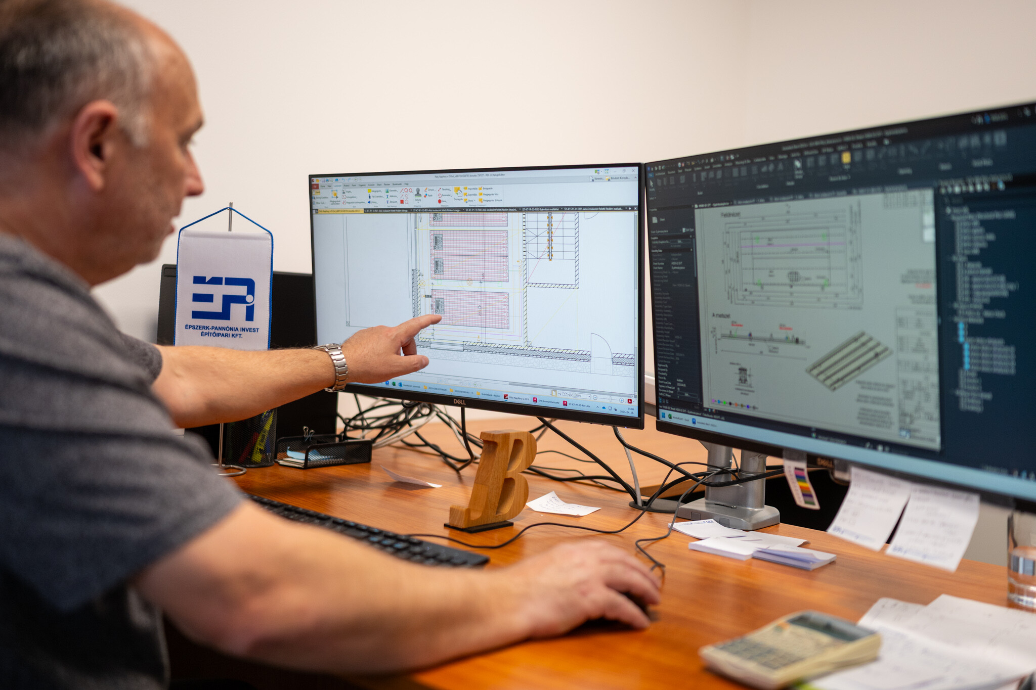 Rónai Roland, az ÉPI vasbetonelem-előregyártási üzemvezetője segített megismerni a vállalat fejlesztéseit, köztük legfontosabbként a termikusan aktív épületszerkezetek létrehozását lehetővé tevő hűtő-fűtő zsalupanelt.