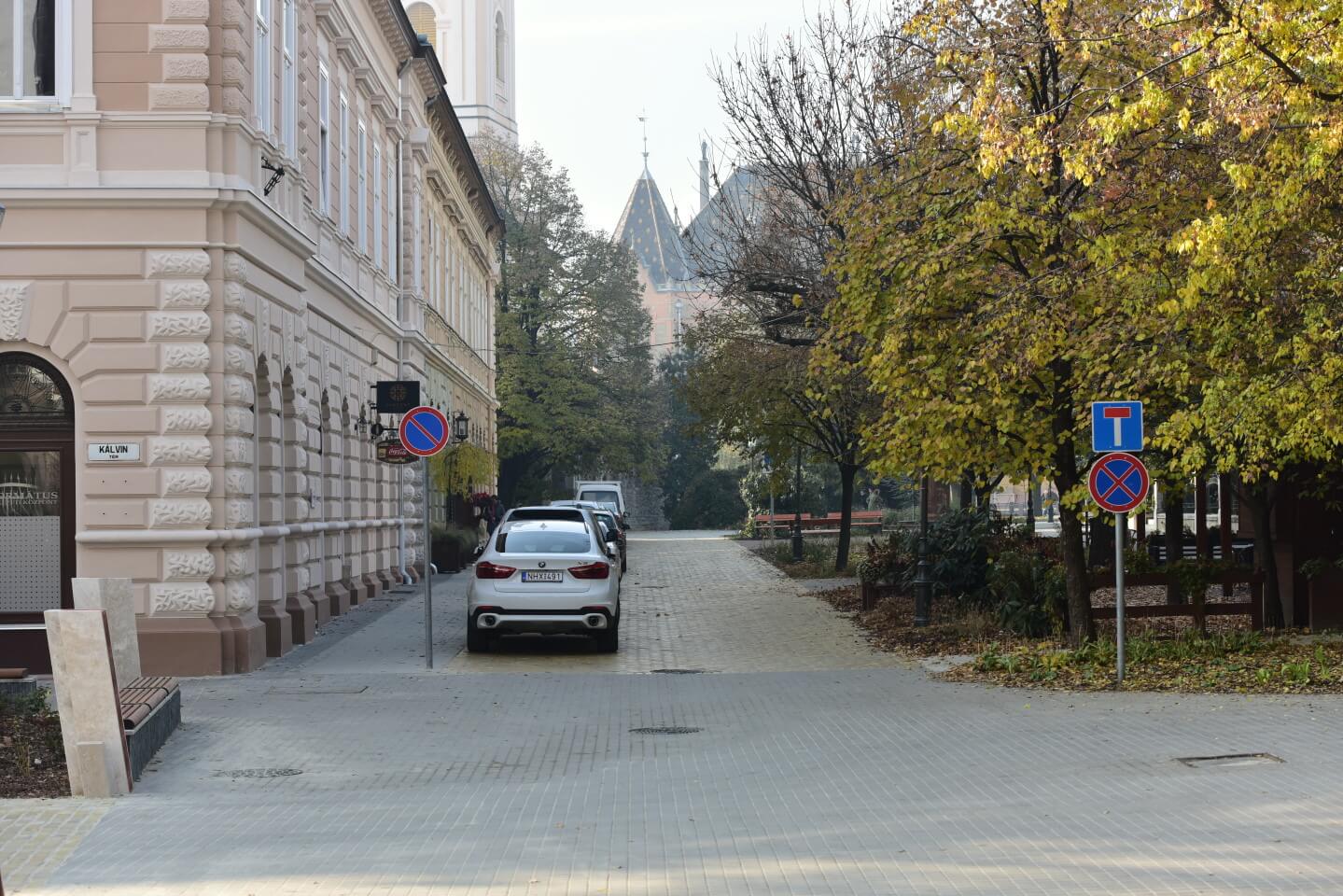 Ezen a belvárosi területen kiemelt igény mutatkozott megfelelő minőségű és számú parkolóhely iránt is, amelyet a város a Kálvin téren és a Szabadság tér északi, észak-nyugati részében biztosított. Mivel a keramit burkolattal ellátott parkolók műszaki színvonala leromlott, így felújításuk halaszthatatlan volt.