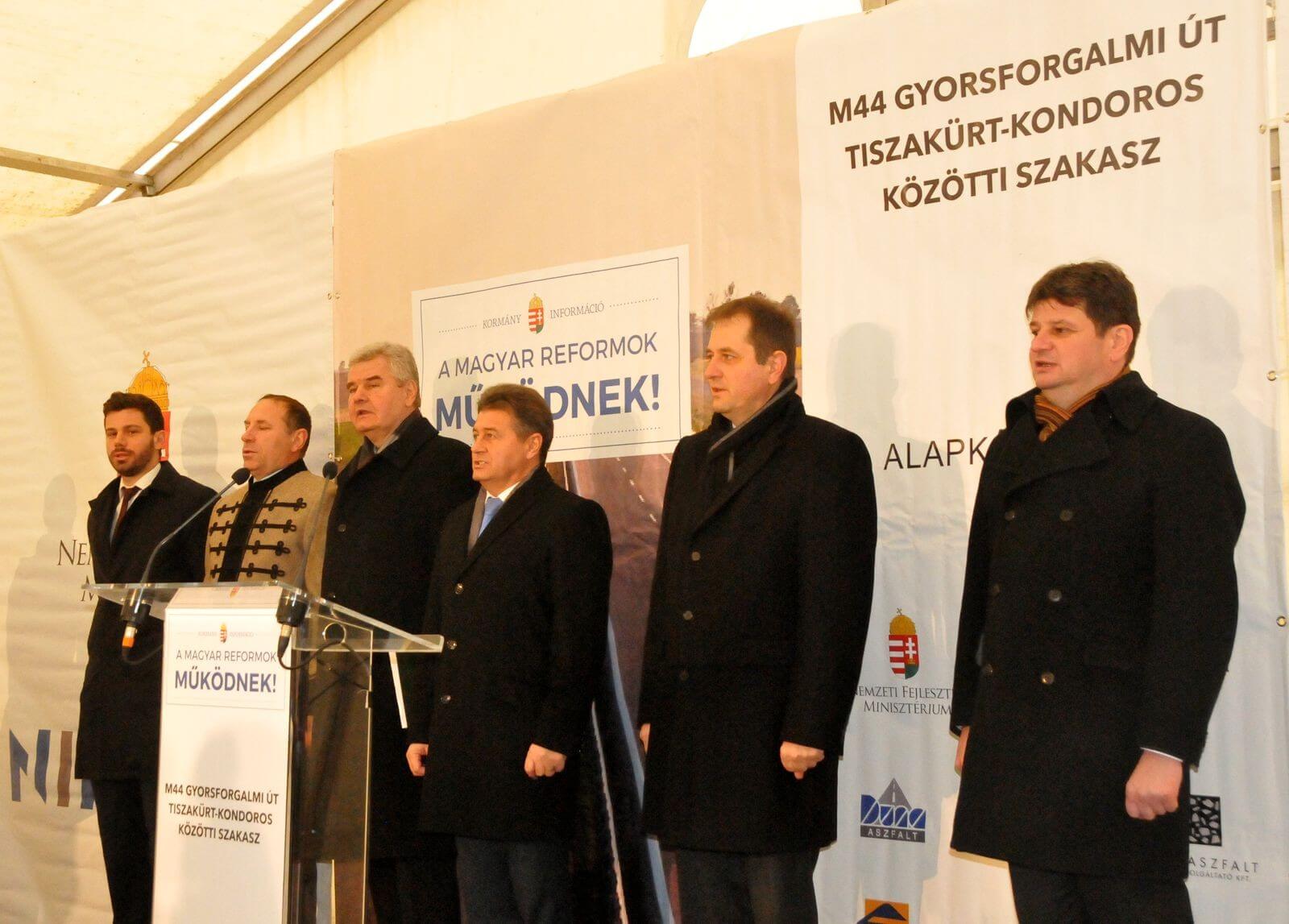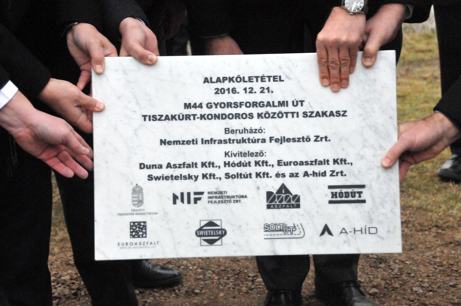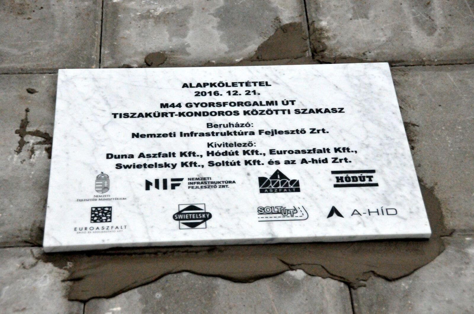 Szerdán a Békés megyei Kondoroson Tasó László közlekedéspolitikáért felelős államtitkár jelenlétében letették a Békéscsaba gyorsforgalmi elérhetőségét biztosító M44-es út Tiszakürt és Kondoros közötti szakaszának alapkövét. A 62 km hosszú, 2x2 sávos gyorsforgalmi útszakaszt a Duna Aszfalt Kft. és a Hódút Kft. konzorciuma, valamint az EuroAszfalt Kft., Swietelsky Magyarország Kft., Soltút Kft., A-Híd Zrt. alkotta konzorcium kivitelezi. Az eredményt novemberben közölte a Nemzeti Infrastruktúra Fejlesztő Zrt., most az egyes szakaszok részleteire is fény derült.
