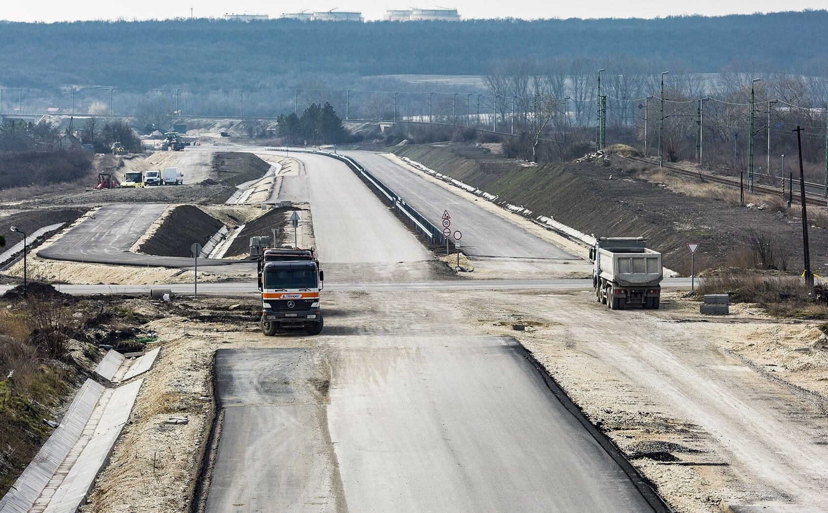 A várpalotai elkerülő keleti szakaszán már az aszfaltozást végzik, a második ütemben kivitelezett nyugati szakaszon hídépítés és töltésalapozás zajlik.