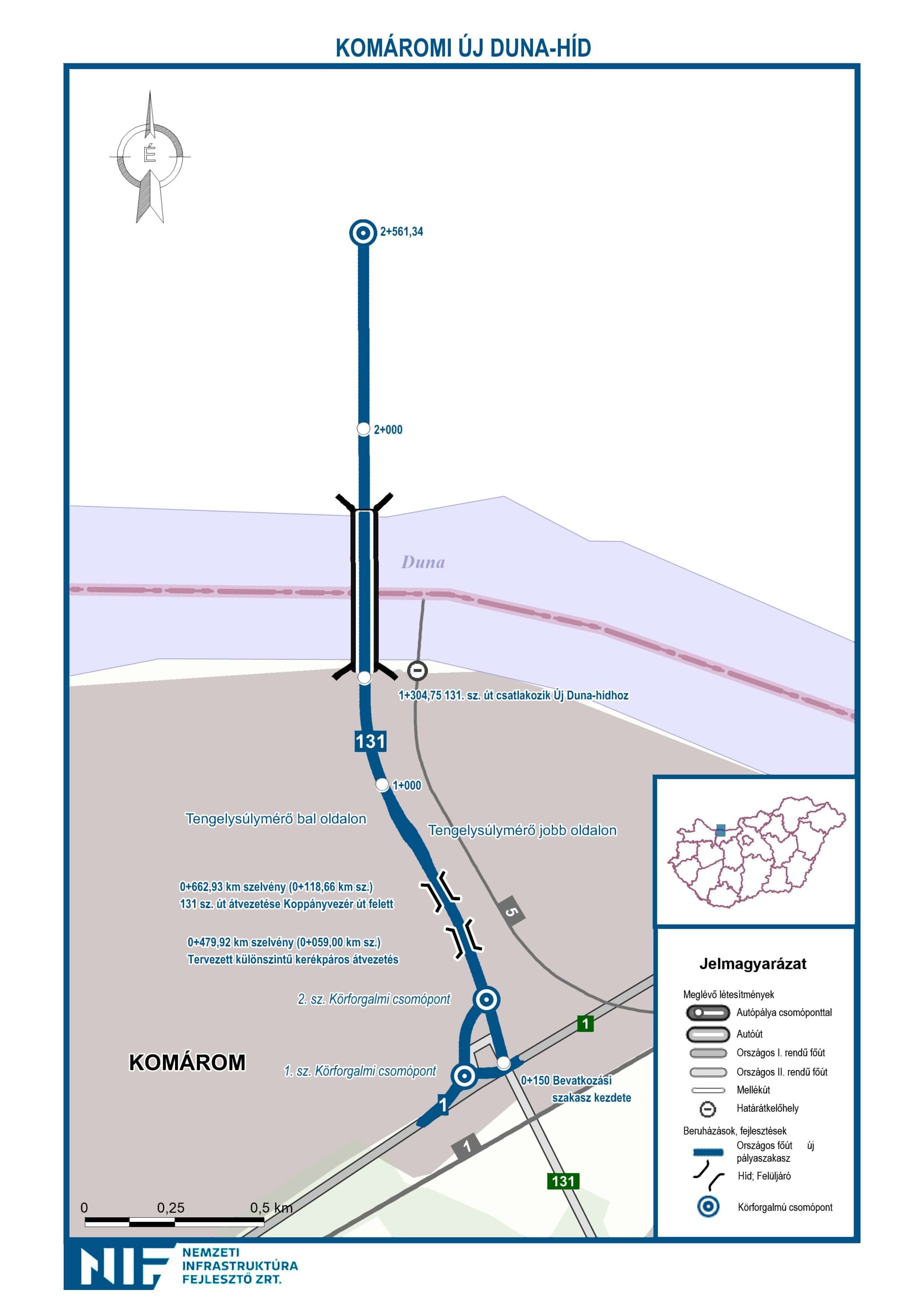 A kerékpárúttal, gyalogos átkelővel és közvilágítással létesülő új híd mintegy 100 kilométerrel rövidíti a teherforgalom útját Komárom térségében, miután a szlovák 64-as főút felől, Érsekújvár térségéből érkező teherautók csak Győr vagy Esztergom felé kerülve tudtak átkelni a Dunán. A komáromi vasúti híd mellett épülő híd másik jelentősége, hogy tehermentesíti a meglévő komáromi hidat, ami a két település belvárosait köti össze (20 tonnás súlykorlátozással).