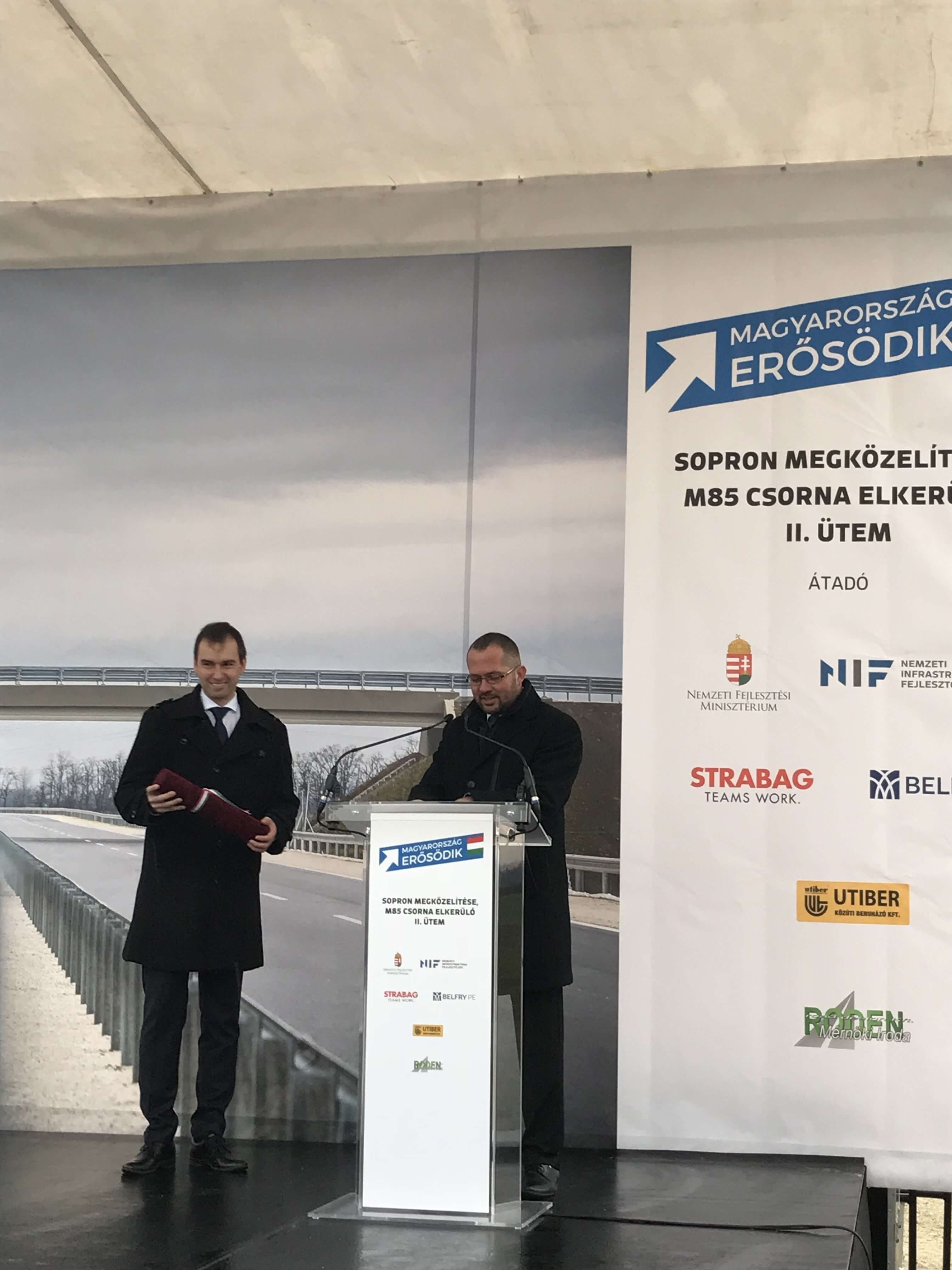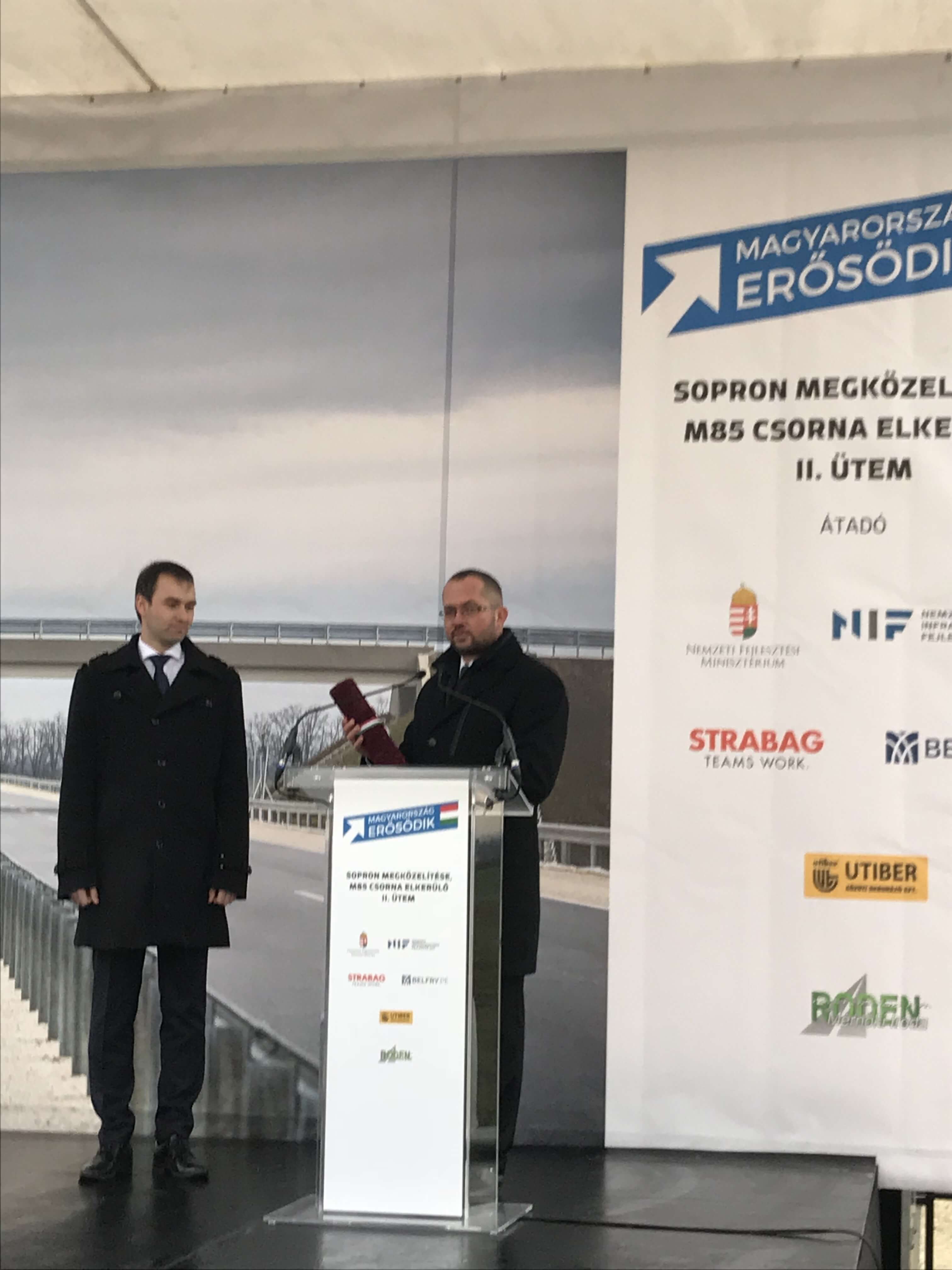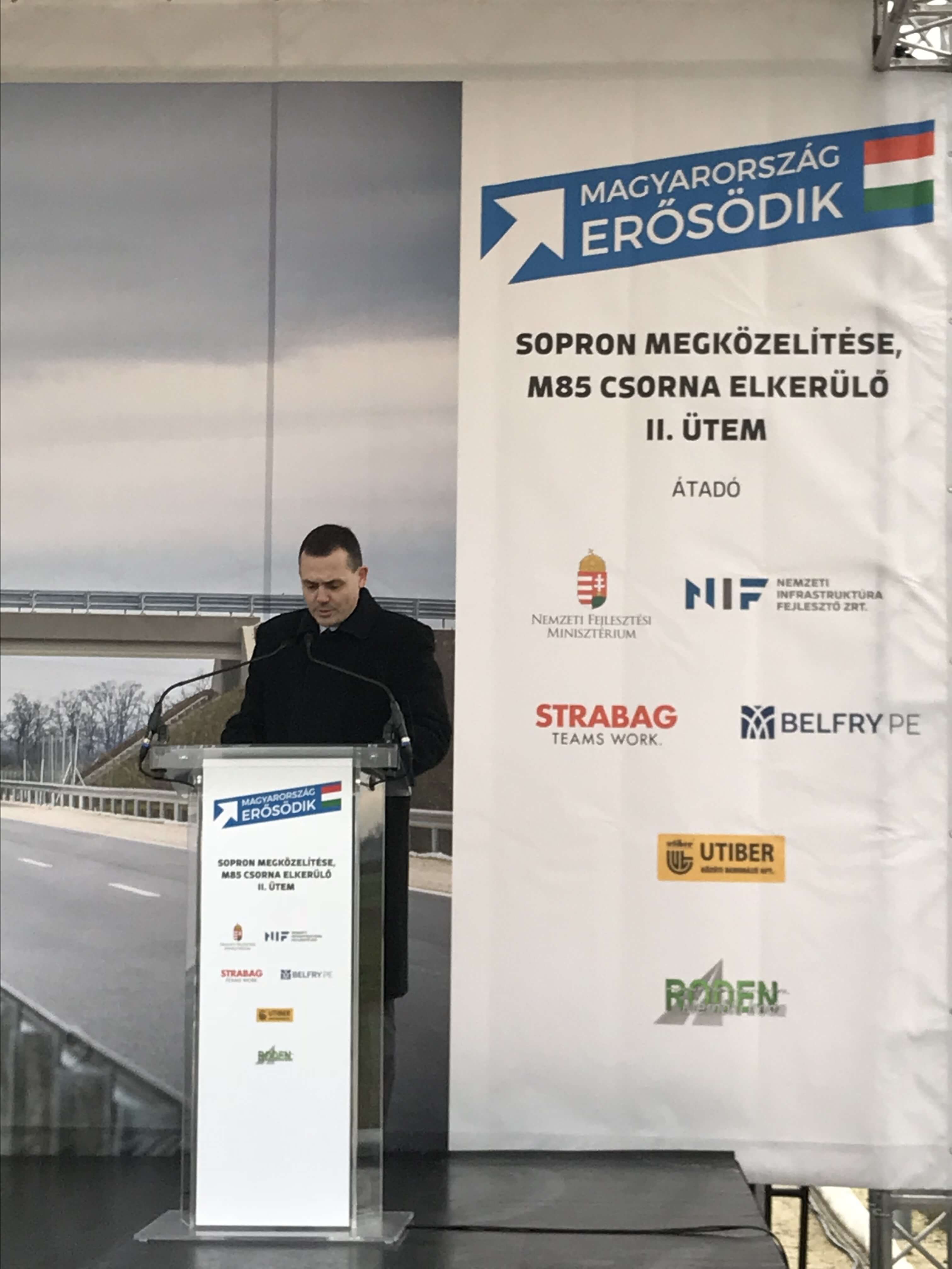 Elmondta, jövőre kezdődik meg M85-ös építkezése a fertőrákosi csomópontig, illetve az M15-ös 2x2-sávos autóúttá fejlesztése is, amivel a szlovák határig az M1-es autópályáról szintén gyorsforgalmi úton lehet eljutni 2019 végére. A főigazgató emellett megköszönte a projektet kivitelező szakemberek által elvégzett munkát is.