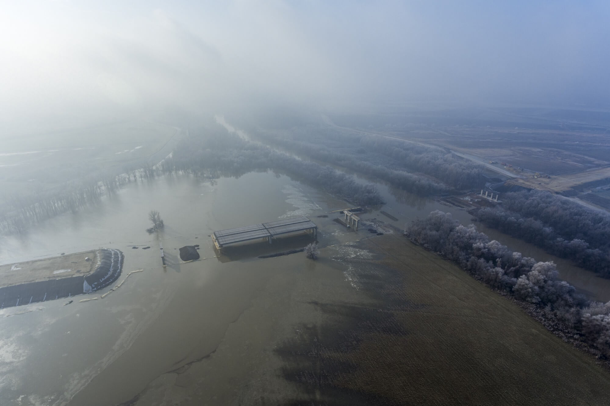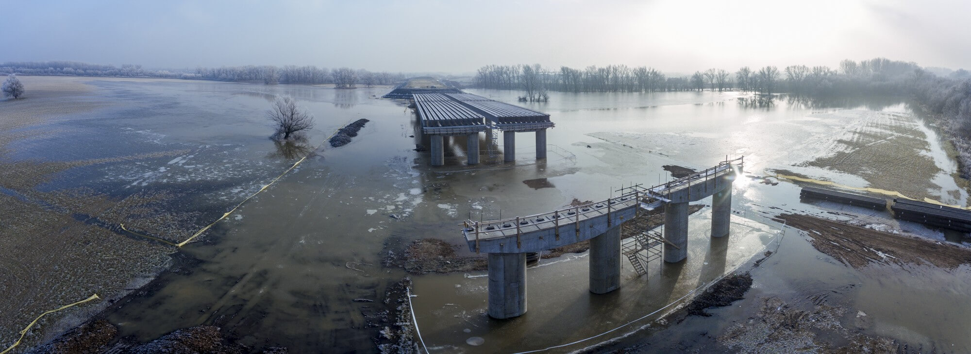 A Békéscsaba gyorsforgalmi elérhetőségét célzó beruházásban a Körösön épülő hídnál már megtörtént a hídgerendák beemelése.