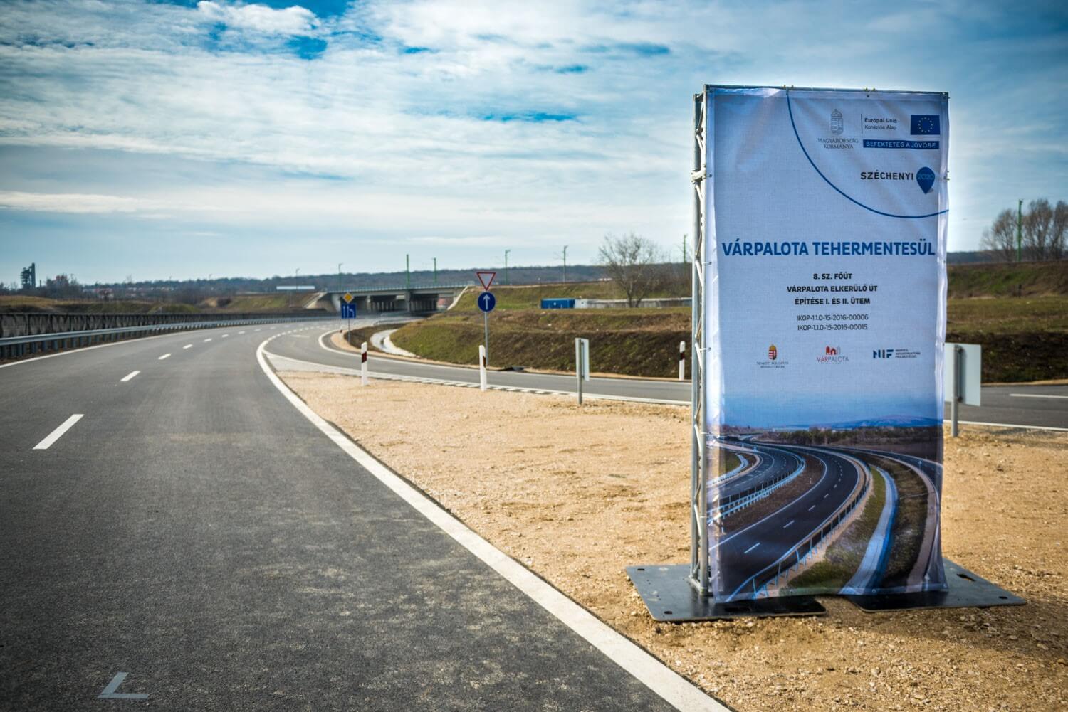 Újra egyesült Várpalota két része, melyet korábban szétválasztott a 8-as út, miután átadták a Veszprém megyei város 2x2 sávos, közel 10 kilométeres elkerülőútját. A nehéz, vizes terepen, jelentős részben cellamatracos technológiával elkészült utat a leányfalui Dömper Kft. a cseh tulajdonú Subterra-Raab Kft. és szlovák hátterű Pannon-Dobrastav Kft. konzorciuma kivitelezte.