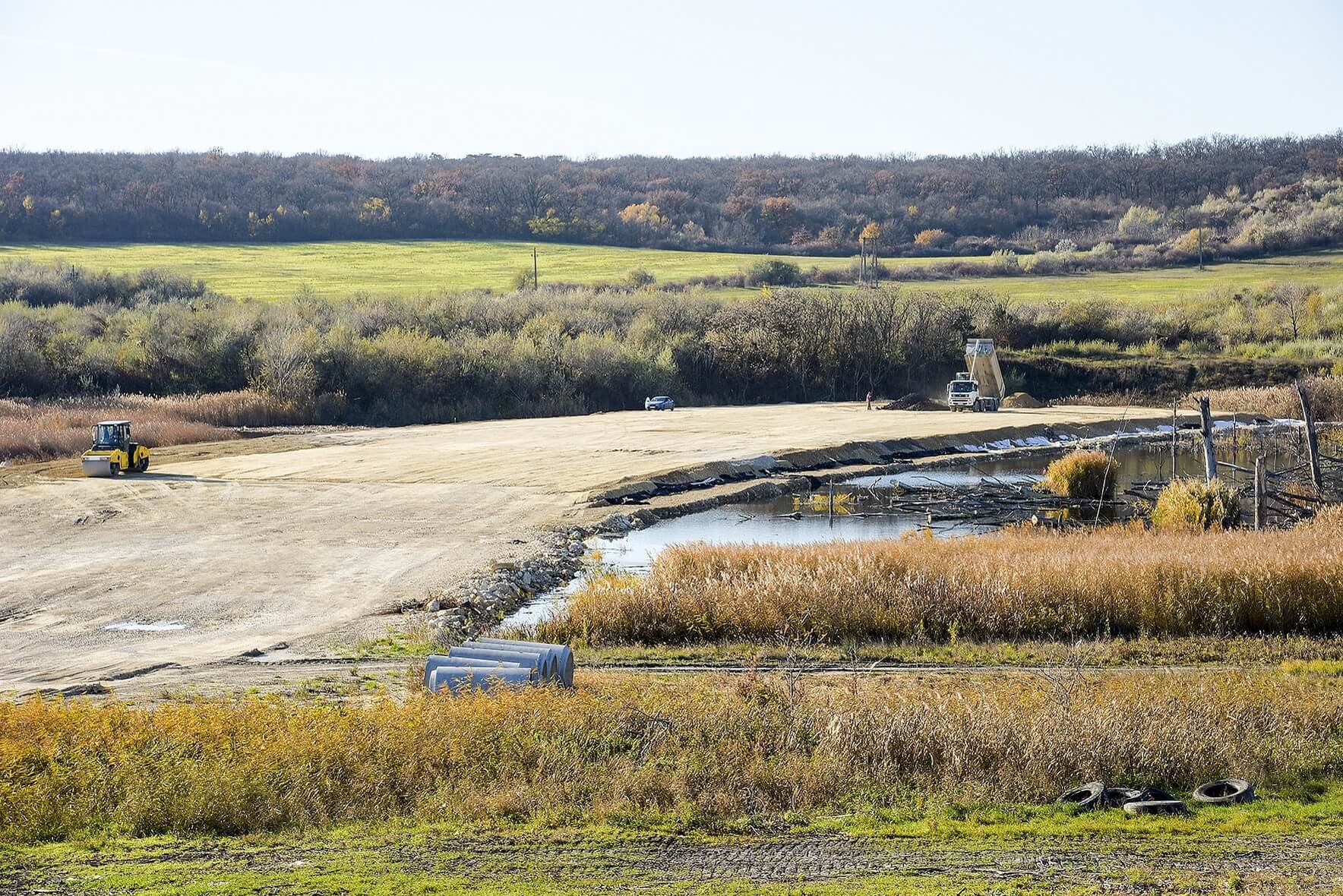 „5-6 méter mélységben kitermeltük az inert hulladékot és vízépítési kövekkel feltöltöttük a területet, amíg a talajvíz fölé nem értük. Ezt a réteget egy bentonitos lemezzel lezártuk, hogy teljesen el tudjuk választani az útépítés földmunkáit is a tárolótól. Majd a megfelelő leterhelő töltés hatására a számított konszolidációt is elértük” – fejtette ki Kerékgyártó Attila. Végső soron jelentős terület rekultivációjára került sor, a környéket újjáélesztették. „Aki most elhalad az úton jobbra és balra is egy füvesített, tájba illő területet lát.”