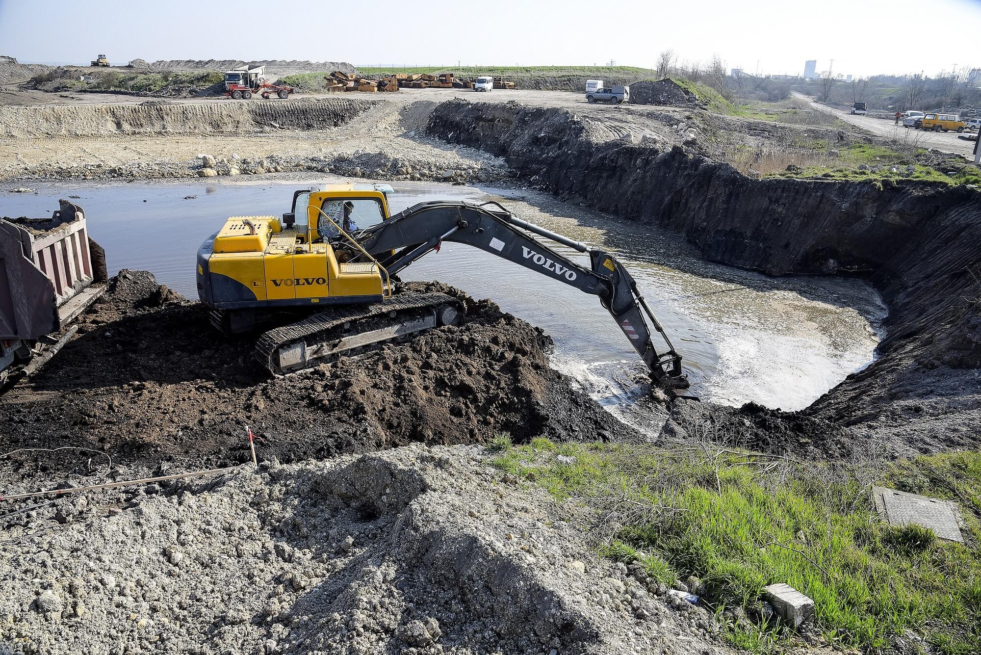 több méterrel a pályaszint alatt gravitációs csatornákkal vezettük el a talajvizet.