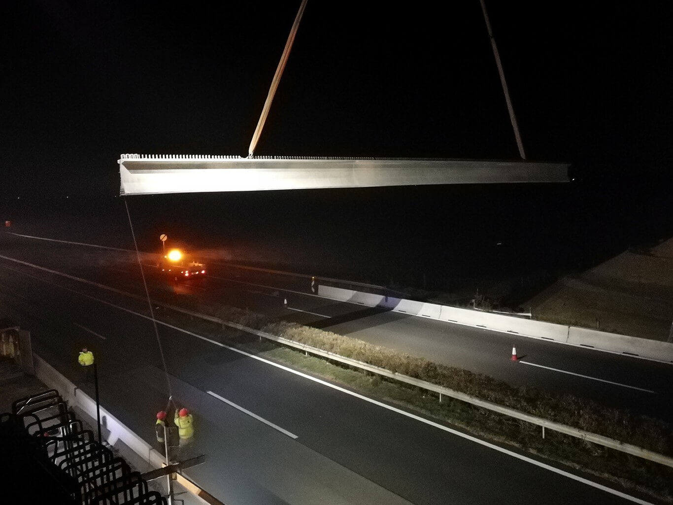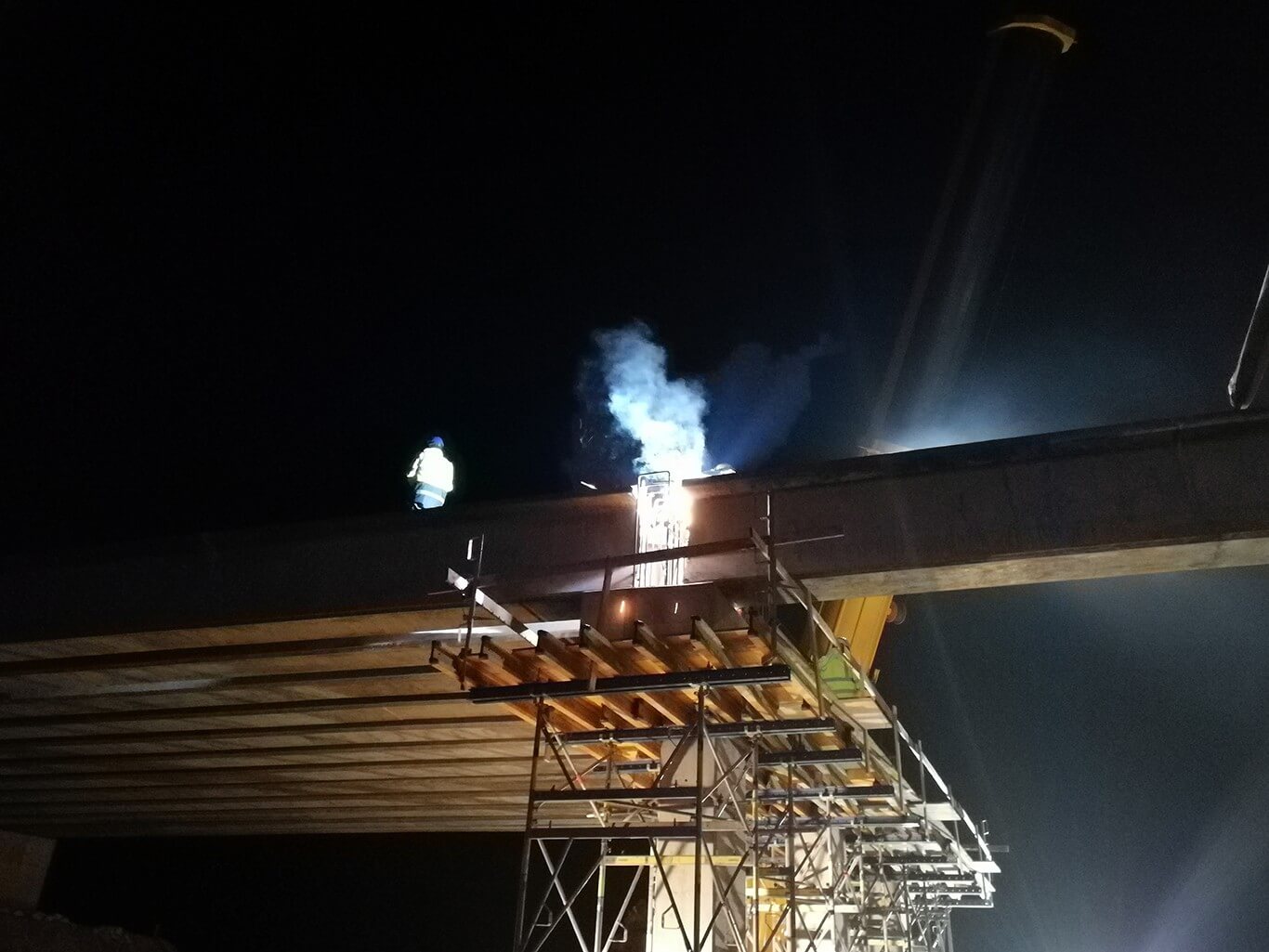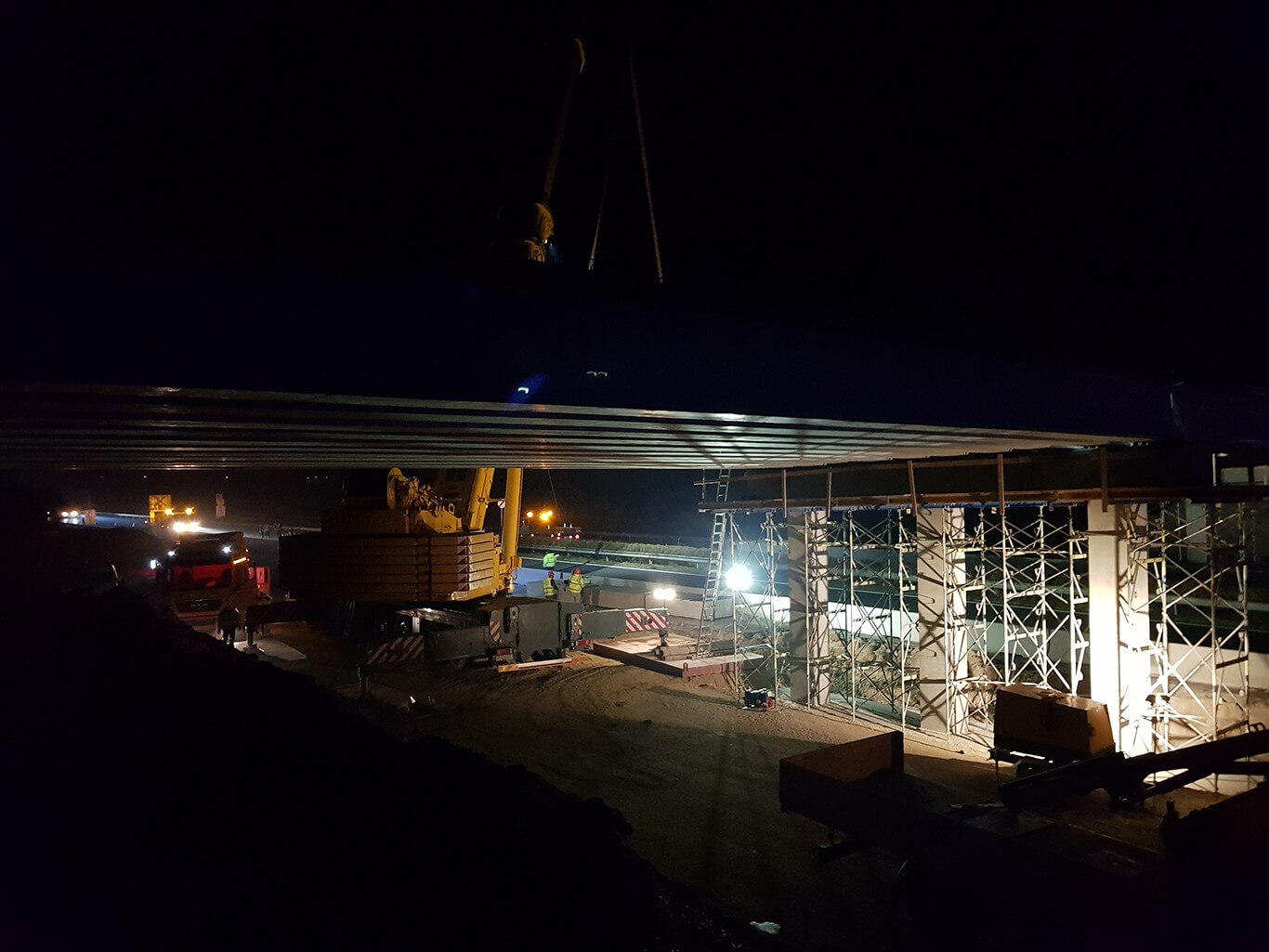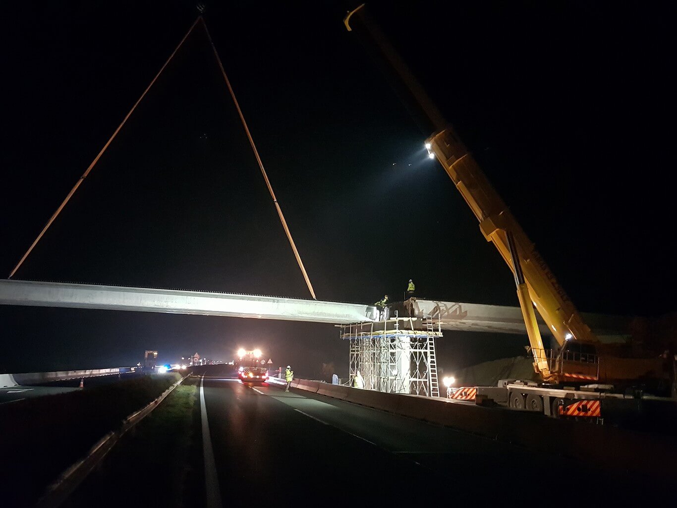 A szerkezetre november 11-én szombaton este 10 és vasárnap hajnali 4 óra között helyezték fel a hídgerendákat.