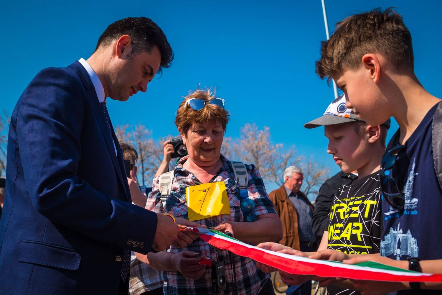 A vasárnapi átadó délelőttjén a még lezárt úton 300 méteres biciklis gyorsulási versenyt rendeztek, valamint pikniket szerveztek – derült ki a delmagyar.hu cikkéből. Az útavatón Márki-Zay Péter polgármester köszönetet mondott Lázár János országgyűlési képviselőnek, Magyarország kormányának és mindenkinek, aki közreműködött a források megteremtésében, valamint az út kivitelezésében.