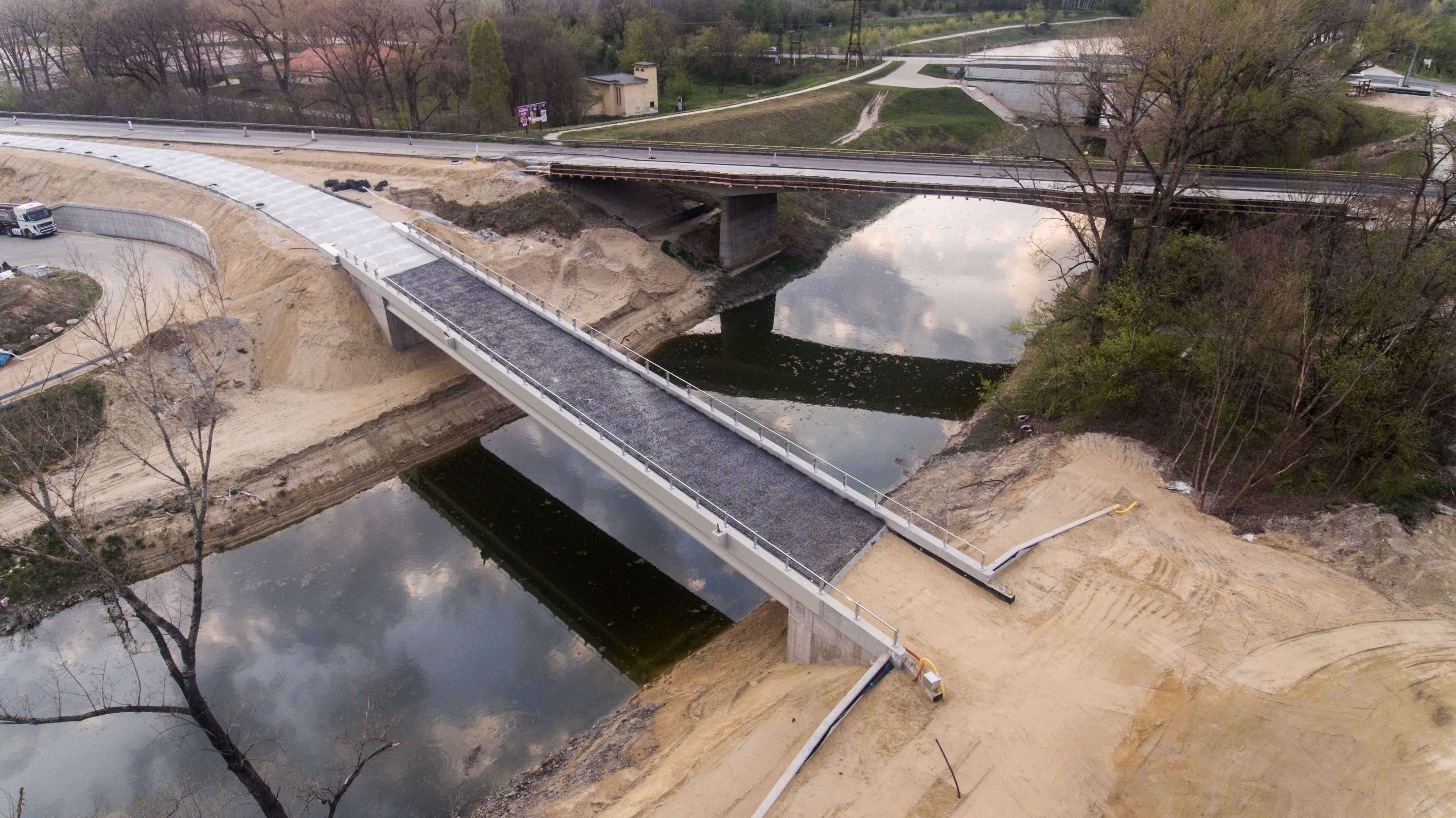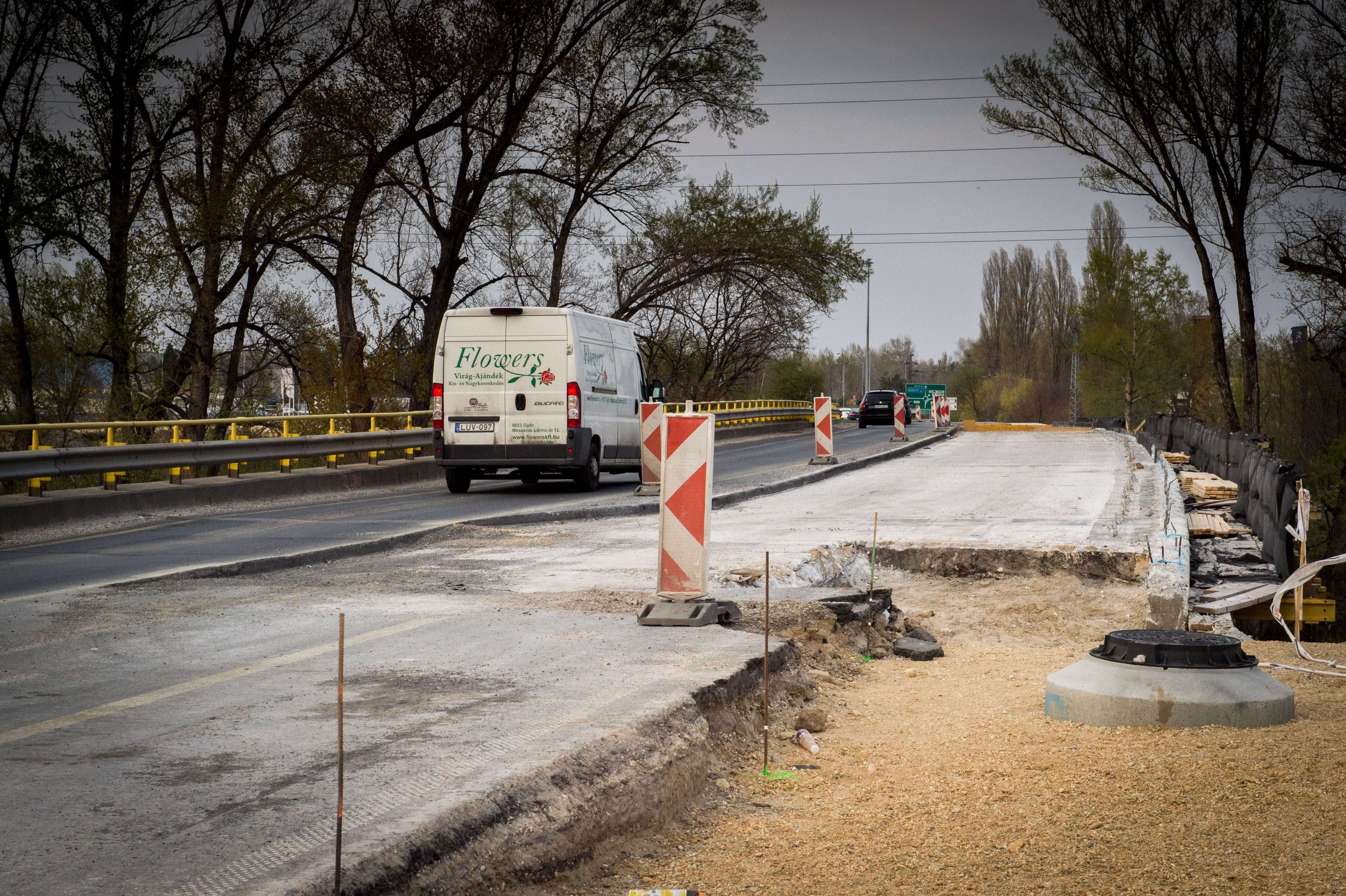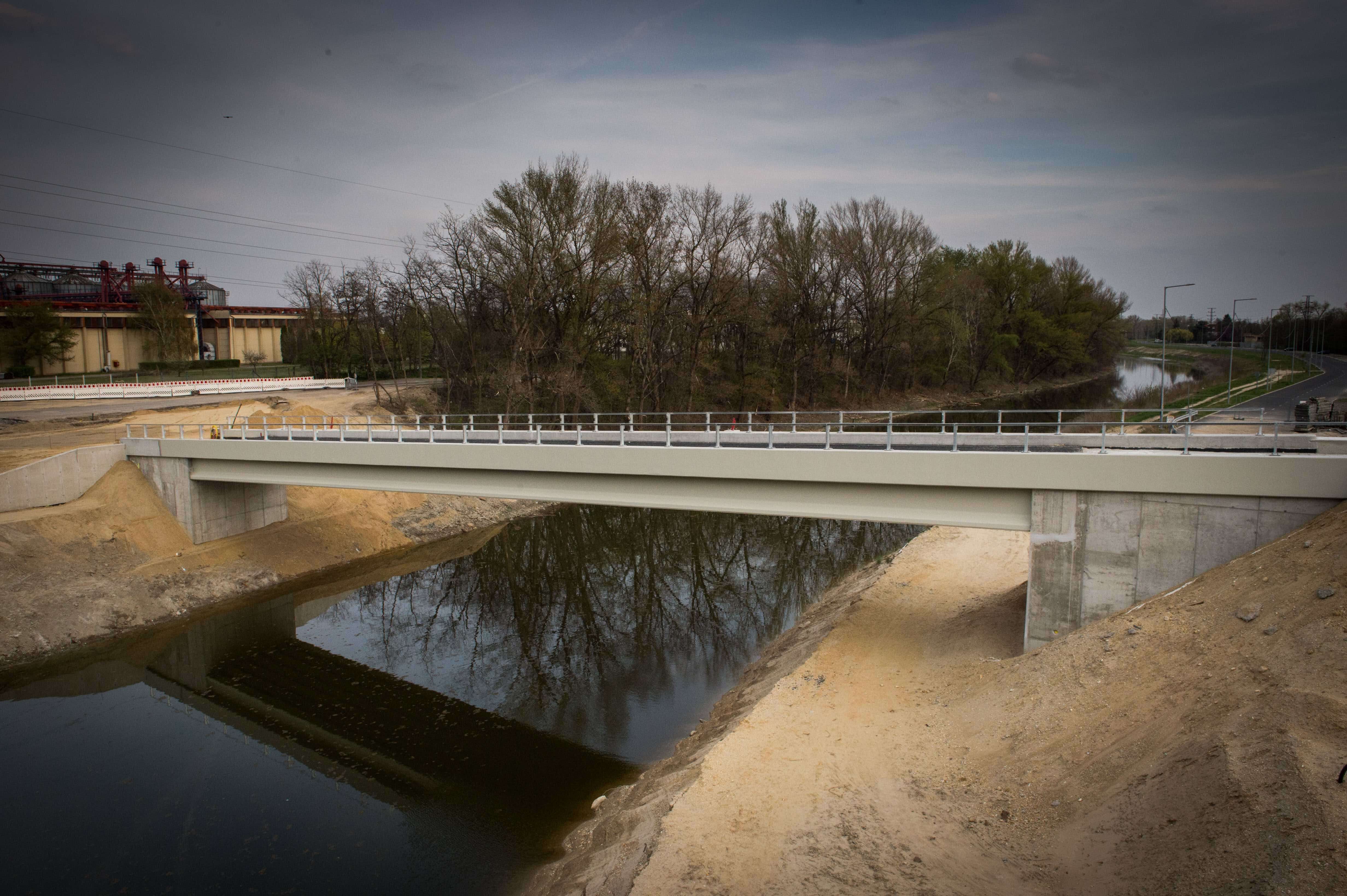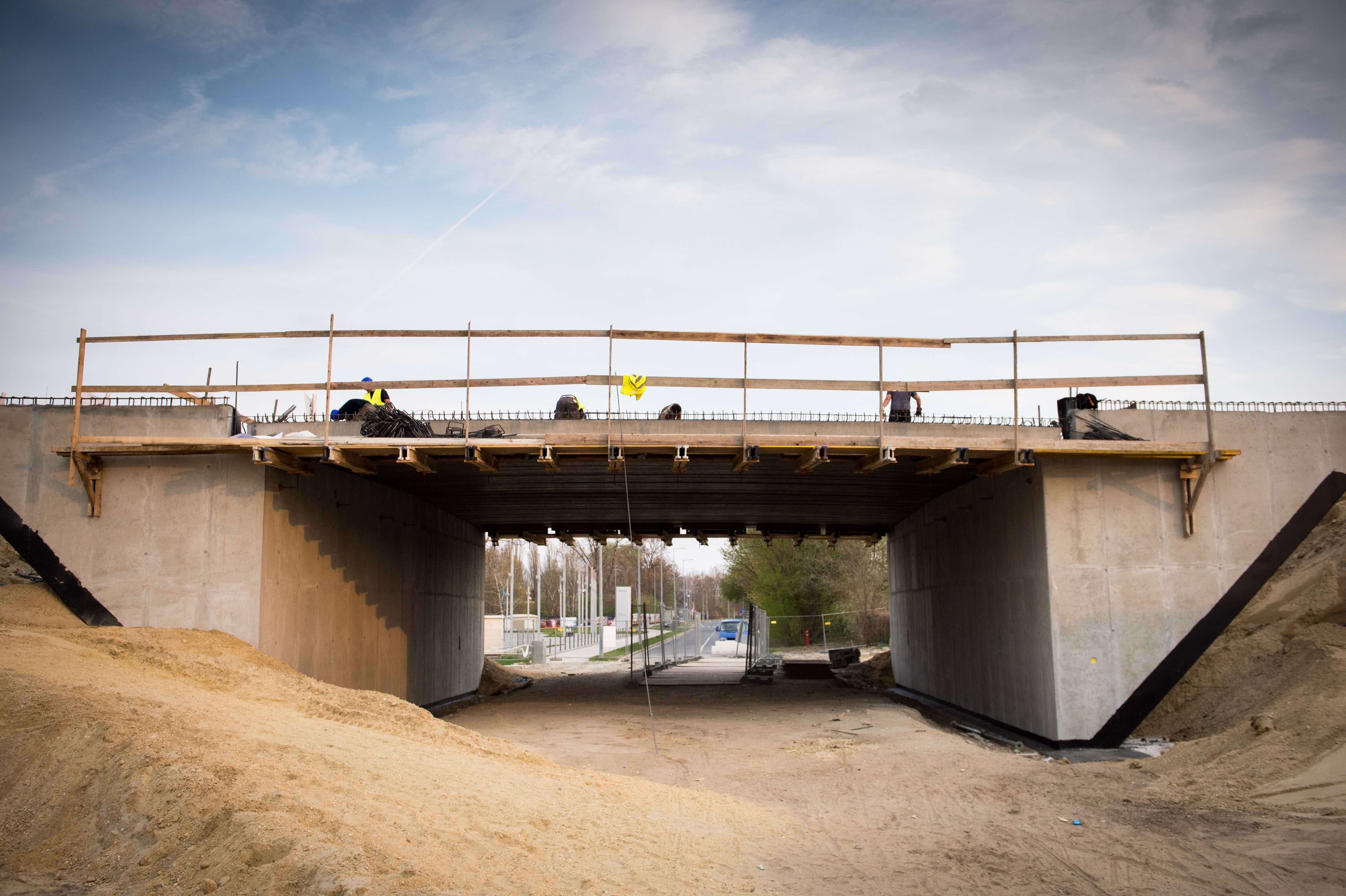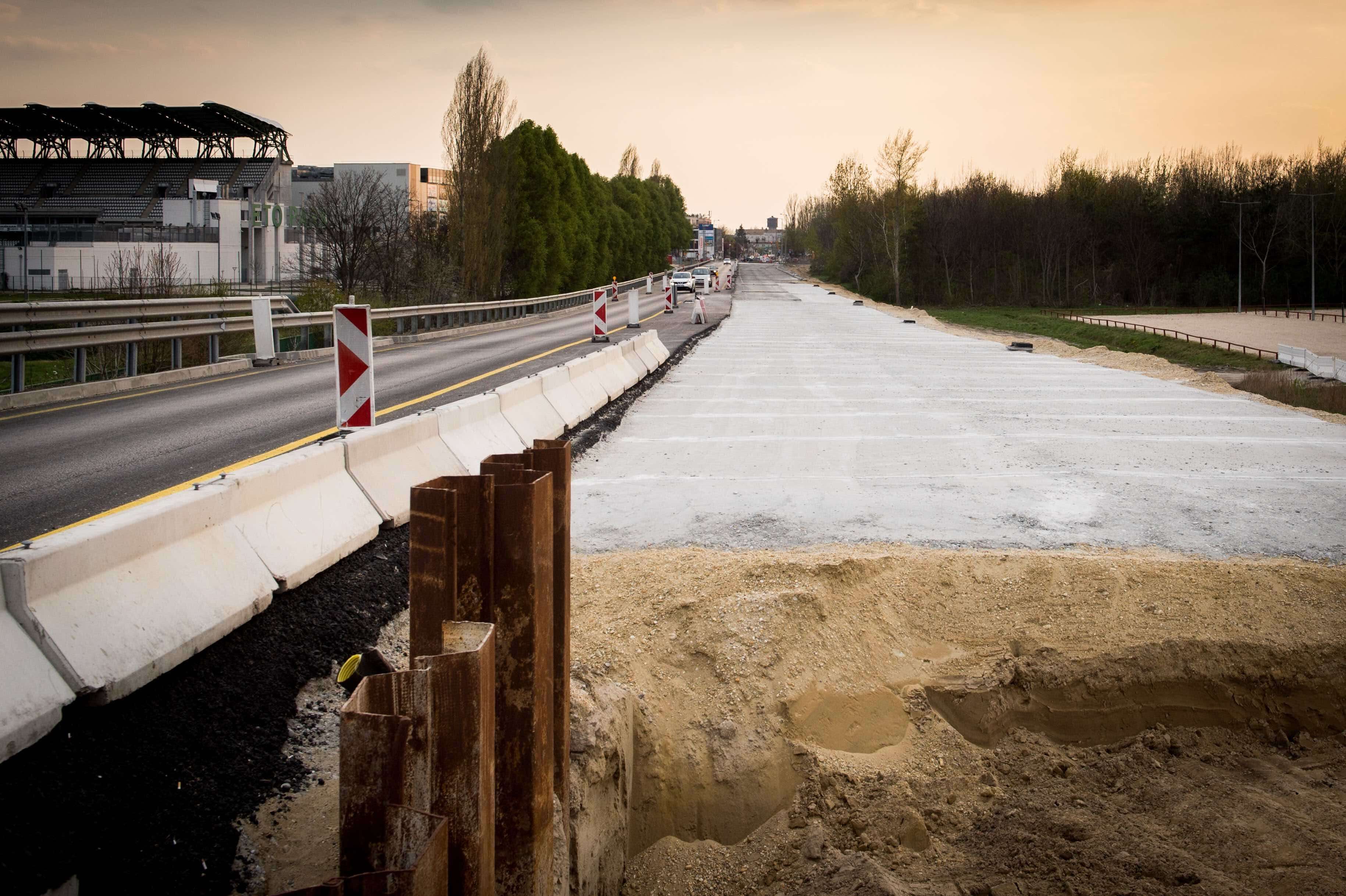 Eközben a város felől a Dohány utca irányába az Iparcsatorna felett kiépülő útszakaszon a beton alapréteg elkészült, most a pályaszerkezet kialakítása következhet majd. Készen van a csatorna feletti új híd is, itt csak a befejező munkák vannak hátra.